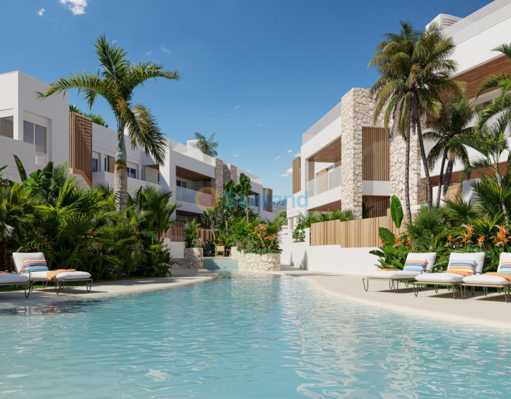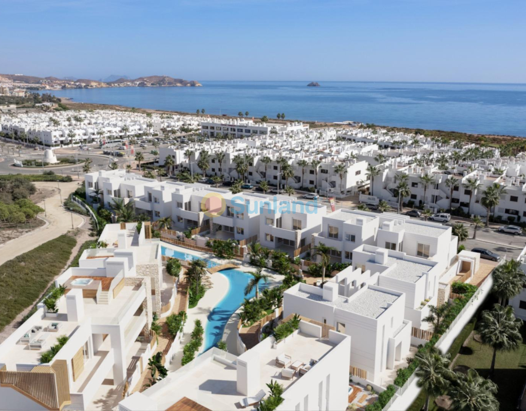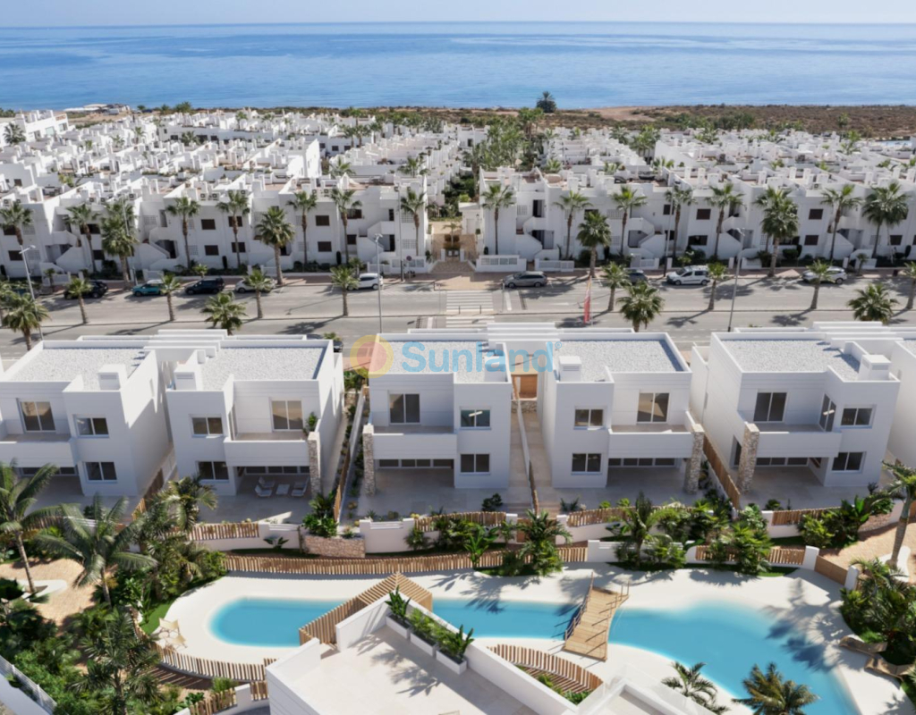 Villas y bungalows de nueva construcción a solo 250 metros de la playa en Mar de Pulpí Exclusivo proyecto residencial con villas y bungalows cerca del mar Descubra una excepcional promoción nueva situada a solo 250 metros de la playa de La Entrevista, en Mar de Pulpí, Almería. Este exclusivo complejo residencial ofrece dos opciones de vivienda diferenciadas: 10 villas independientes y 8 bungalows, cada uno de ellos diseñado para ofrecer amplios interiores y zonas exteriores de gran calidad. Situado en una de las zonas más tranquilas y pintorescas de la Costa de Almería, este proyecto es ideal para quienes buscan una vivienda moderna y confortable cerca del mar, rodeada de belleza natural y con todos los servicios esenciales. Villas de lujo con garajes subterráneos y terrazas privadas Las villas cuentan con tres amplios dormitorios, cada uno con su propio cuarto de baño en suite. En la planta baja se encuentra un generoso dormitorio, mientras que la planta superior incluye dos dormitorios más con acceso a terrazas privadas. El garaje subterráneo, conectado directamente a la villa, ofrece espacio para al menos dos vehículos y bicicletas, con iluminación y ventilación naturales, además de un generoso espacio de almacenamiento. Elegante bungalows con jardines privados o soláriums Elija entre bungalows en planta baja con jardines privados u opciones en la planta superior con soláriums privados. Cada bungalow incluye dos dormitorios, dos baños y una piscina privada o jacuzzi. También cuentan con ascensores, lo que mejora la accesibilidad y el confort. Los dormitorios principales incluyen vestidores y amplios armarios empotrados, mientras que las amplias terrazas con zona de bar hacen que el entretenimiento y el relax sean un placer. Confort, estilo y características premium Todas las viviendas de la promoción están equipadas con: Ventanas de doble acristalamiento con protección solar y rotura de puente térmico Calefacción eléctrica por suelo radiante en todos los baños Aire acondicionado (frío y calor) Persianas motorizadas Baños modernos con muebles suspendidos, espejos y mamparas de ducha Producción de agua caliente con sistemas aerotérmicos de bajo consumo La comunidad residencial también cuenta con una piscina comunitaria de varios niveles, que ofrece un espacio compartido para el descanso y el disfrute. Ubicación privilegiada en la Costa de Almería Situado a solo 250 m de la playa de arena y a solo 3 km de San Juan de los Terreros, los residentes pueden disfrutar de una amplia gama de servicios, como supermercados, restaurantes, tiendas y servicios esenciales. Distancias a puntos de interés: Playas de La Entrevista: 0,25 km San Juan de los Terreros: 3 km Campo de golf El Aguilón: 7 km Centro de Águilas y puerto deportivo: 12 km Aeropuerto de Murcia-Corvera: 95 km Aeropuerto de Almería: 115 km Asegúrese la casa de sus sueños junto al mar Tanto si elige una villa como un bungalow, esta urbanización ofrece una combinación perfecta de calidad, ubicación y estilo de vida. Póngase en contacto con nosotros hoy mismo para obtener más información o concertar una visita: su casa ideal en la costa le espera en Mar de Pulpí.