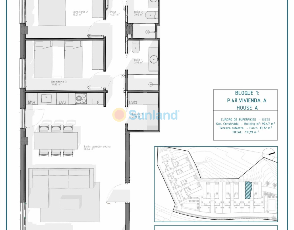 Apartamentos de nueva construcción en Vera Playa, Almería: viviendas modernas cerca del mar Vida contemporánea en Pueblo Salinas, a solo 2 km de la playa Presentamos una impresionante nueva promoción residencial situada en la codiciada zona de Vera Playa, dentro de la exclusiva urbanización Pueblo Salinas. Este moderno complejo ofrece un estilo de vida privilegiado a solo 2 km de las playas de Vera (Almería), con espectaculares vistas al mar y un tranquilo entorno mediterráneo ideal para vivir todo el año o disfrutar de las vacaciones. Viviendas elegantes con comodidad y estilo modernos Esta nueva promoción consta de 60 apartamentos de alta calidad distribuidos en 5 bloques de baja densidad, con solo dos viviendas por planta. Elija entre distribuciones de 2 o 3 dormitorios diseñadas pensando en la funcionalidad, el confort y el estilo. Las opciones incluyen: Plantas bajas con jardines privados Viviendas en plantas intermedias con amplias terrazas Áticos en la última planta con grandes soláriums que incluyen cocina de verano y pérgola con paneles solares. Todas las viviendas cuentan con: Cocinas abiertas totalmente equipadas con frigorífico integrado, lavavajillas, placa de inducción, horno, microondas y campana extractora Espacios diáfanos y luminosos con iluminación LED en toda la vivienda (excepto en los dormitorios) Persianas motorizadas de aluminio en los dormitorios Baños con acabados modernos, incluyendo calefactores para toallas, platos de ducha con mamparas de cristal y muebles empotrados Preinstalación de aire acondicionado por conductos Sistema aerotérmico para una producción eficiente de agua caliente Puerta de entrada de seguridad Excepcionales servicios comunitarios Los residentes disfrutarán de acceso a una amplia gama de servicios diseñados para mejorar el confort y el ocio, entre los que se incluyen: Dos piscinas al aire libre perfectas para los meses de verano Una piscina cubierta climatizada para uso durante todo el año Plaza de aparcamiento privada y trastero incluidos con cada propiedad Preinstalación para la recarga de vehículos eléctricos en las zonas de aparcamiento Ubicación privilegiada con excelentes conexiones Vera Playa es un popular destino costero conocido por sus amplias playas de arena y su estilo de vida relajado. La ubicación de la urbanización ofrece fácil acceso a los servicios y atracciones esenciales: Playa: 2 km Desert Springs Golf Resort: 8 km Centro de Vera: 5 km Puerto deportivo y restaurantes de Garrucha: 6 km Parque Comercial Mojácar: 10 km Aeropuerto de Almería: 85 km (1 hora en coche) Haga de Vera Playa su nuevo hogar Tanto si busca una residencia permanente, un refugio para las vacaciones o una inversión inteligente, estos apartamentos de nueva construcción ofrecen un valor inigualable en una de las zonas más deseadas de la Costa de Almería. Póngase en contacto con nosotros hoy mismo para obtener más información y programar su visita.