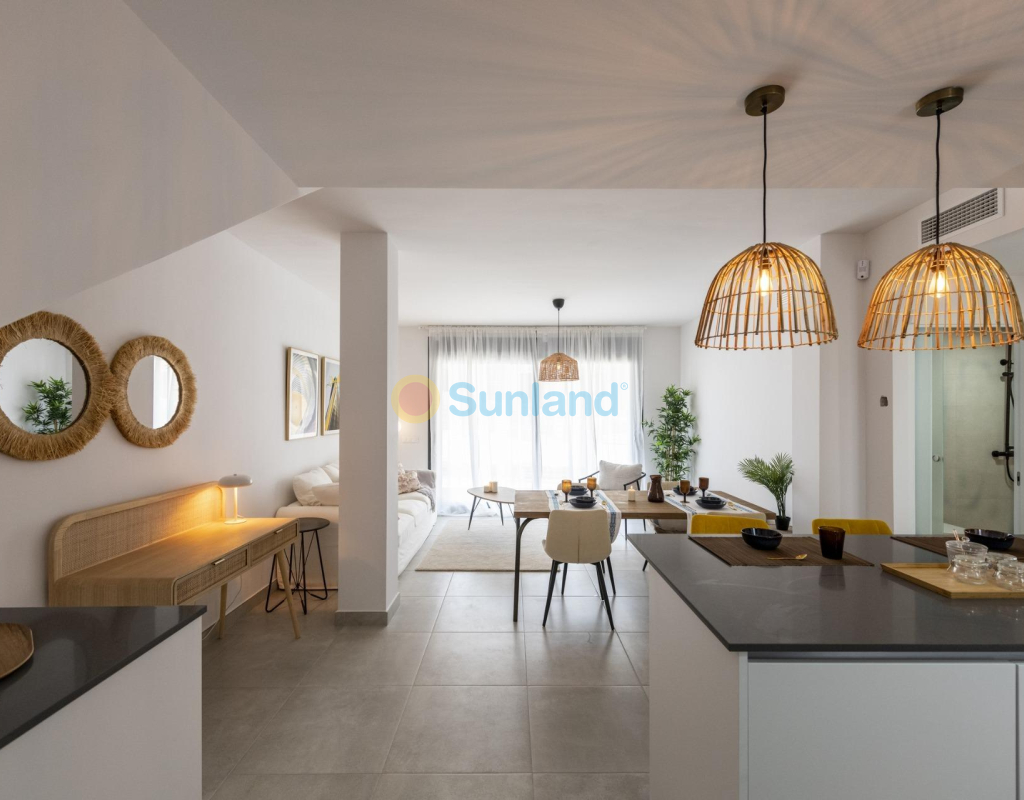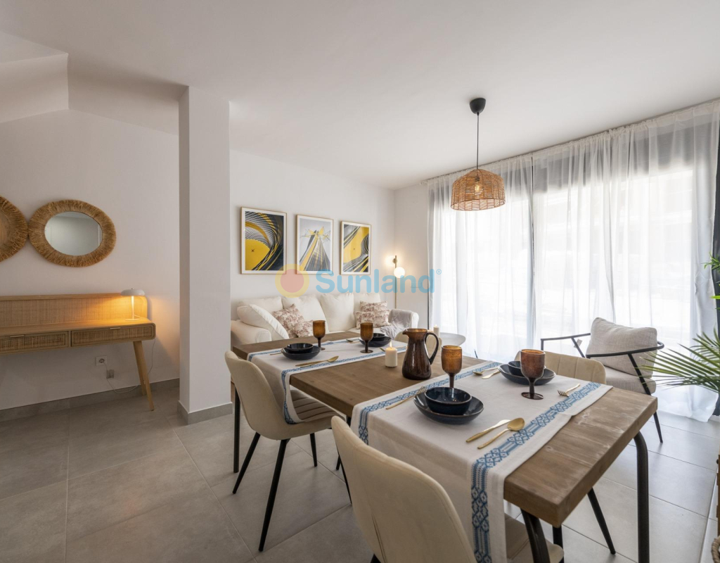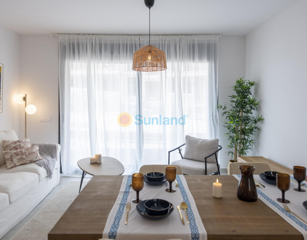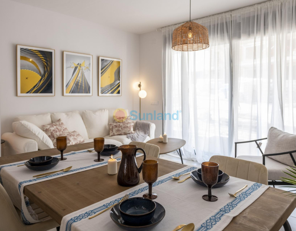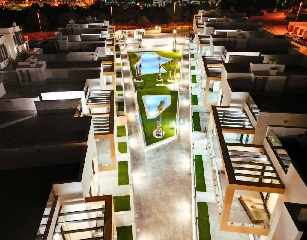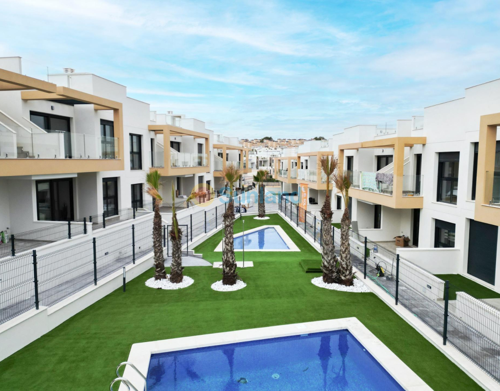 COMPLEJO RESIDENCIAL DE OBRA NUEVA EN ORIHUELA COSTA Urbanización vallada de 40 apartamentos de 2 y 3 dormitorios, planta baja con jardín privado, planta alta con solárium privado, todos con acceso directo a la gran piscina y jardines comunitarios para que usted y su familia disfruten. Todos los apartamentos cuentan con parking . Diseño moderno y calidades de primera. Complejo situado junto a la playa de Punta Prima para que pueda disfrutar del sol español todo el año en la Costa Blanca. A sólo 5 minutos del campo de golf Villa Martín y del centro comercial La Zenia Boulevard. Complejo situado a 40 minutos del aeropuerto de Alicante y a 1 hora del aeropuerto de Murcia - Corvera.