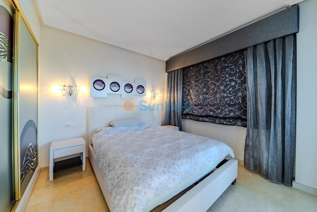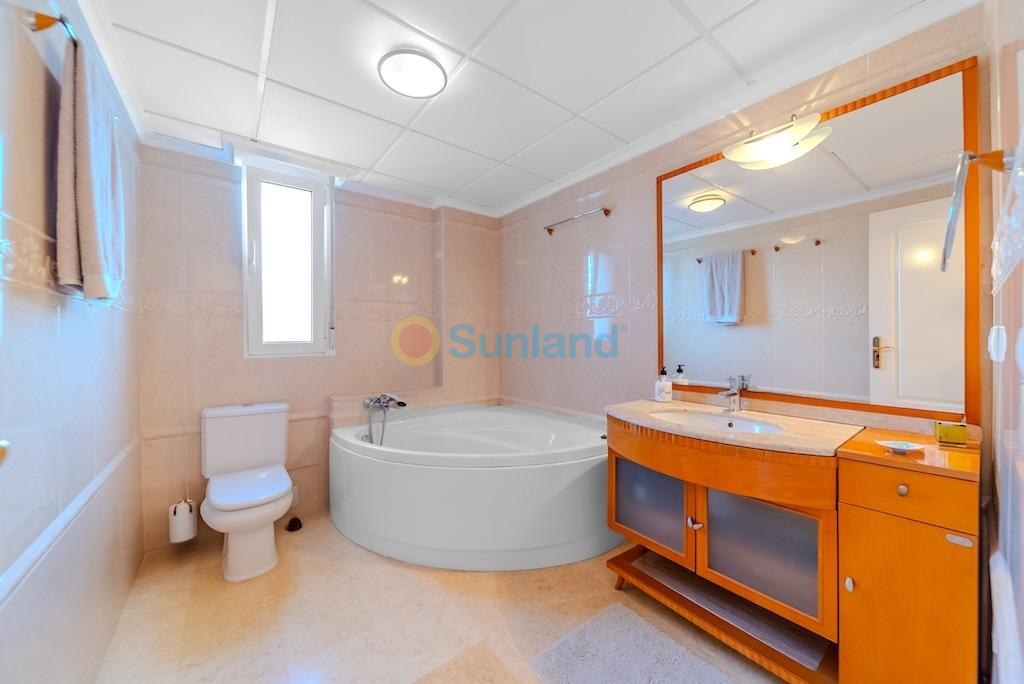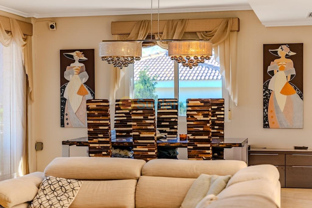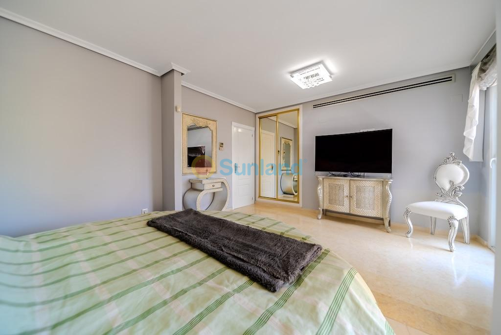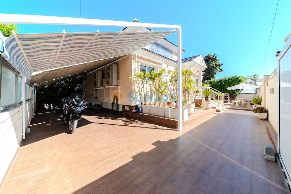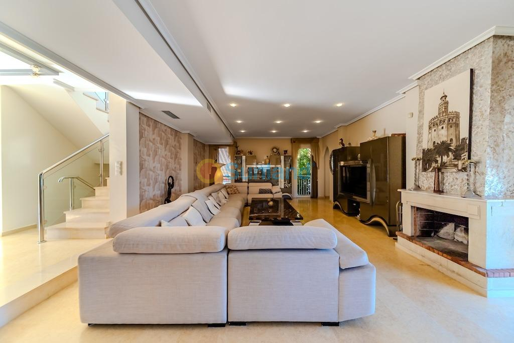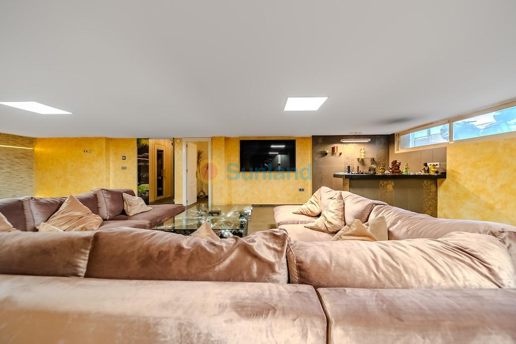 Villa independiente de lujo a 300 metros del mar en La Mata – Molino Blanco.. . Presentamos esta espectacular villa de lujo ubicada en una de las zonas más exclusivas de Torrevieja: Molino Blanco, a solo 300 metros de la playa de La Mata. Rodeada de elegantes villas unifamiliares y en un entorno tranquilo, esta propiedad combina a la perfección diseño, confort y ubicación privilegiada.. . Construida sobre una generosa parcela de 790 m², la vivienda ofrece una superficie total construida de 438 m² distribuida en varios niveles. Cuenta con 5 amplios dormitorios dobles y 4 elegantes baños, cada uno decorado con estilo propio y equipado con todo lo necesario para el máximo confort. Desde la planta superior se disfrutan preciosas vistas al mar.. . El amplio salón-comedor en la planta principal conecta con una cocina independiente totalmente equipada. En el sótano, además de una segunda sala de estar ideal para celebraciones o tiempo en familia, encontramos una moderna sala de cine y una zona de bienestar con sauna finlandesa y baño turco. También dispone de calefacción por suelo radiante en esta planta, y las saunas cuentan con temporizador para mayor comodidad.. . El jardín privado está impecablemente cuidado y cuenta con una piscina climatizada, zona de relax, barbacoa y aparcamiento dentro de la parcela con capacidad para hasta tres vehículos. La vivienda se vende completamente amueblada y equipada, con sistema de aire acondicionado frío/calor y control de climatización independiente en los niveles de dormitorios.. . La ubicación es inmejorable: a escasos minutos andando de la playa, con restaurantes, tiendas, bares y el paseo marítimo de La Mata muy cerca. Además, está excelentemente comunicada con la carretera N-332 y se encuentra a solo 30 minutos en coche del Aeropuerto Internacional de Alicante. Para los amantes del golf, en un radio de pocos kilómetros se encuentran prestigiosos campos como Villamartín Golf, La Marquesa Golf o Las Colinas Golf & Country Club.. . Una villa excepcional para quienes buscan calidad de vida, privacidad y cercanía al mar en una de las zonas más cotizadas de la Costa Blanca.