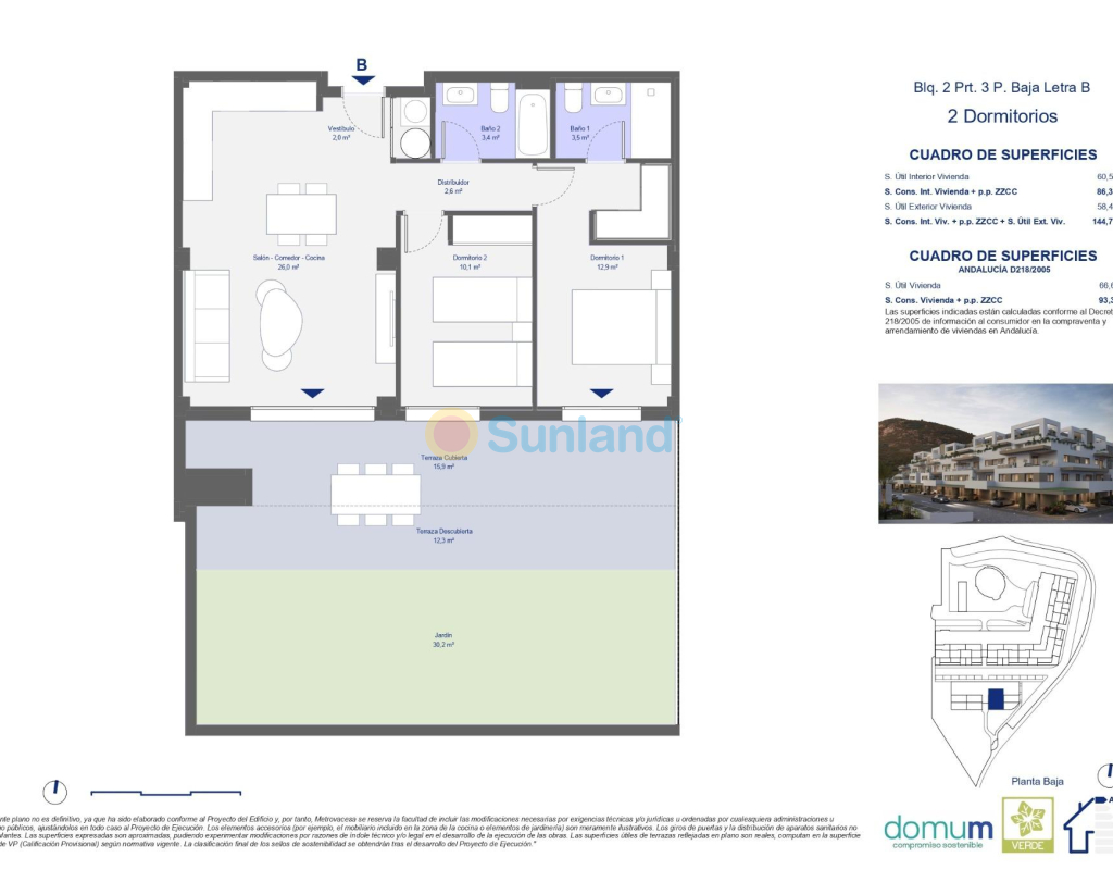 Apartamentos de nueva construcción con vistas al mar y al golf en Pulpí, Almería Ubicación privilegiada entre el mar y la montaña Esta exclusiva urbanización de nueva construcción se encuentra en Pulpí, Almería, junto al impresionante campo de golf Mundo Aguilón, y ofrece un equilibrio perfecto entre naturaleza, comodidad y estilo de vida mediterráneo. Situada en una zona tranquila entre el mar y la montaña, esta ubicación le invita a disfrutar de un estilo de vida activo y relajado durante todo el año. A solo 4 km de algunas de las mejores playas vírgenes de la costa mediterránea, la urbanización está rodeada de naturaleza, golf y un entorno consolidado, ideal tanto para vivir todo el año como para escapadas vacacionales. Viviendas contemporáneas con amplias terrazas y vistas panorámicas El complejo consta de 54 apartamentos de nueva construcción de 1, 2 y 3 dormitorios, cada uno con plaza de aparcamiento privado y trastero incluidos. Las viviendas están diseñadas con una distribución moderna y funcional, aprovechando al máximo la luz natural y ofreciendo amplias terrazas con impresionantes vistas al campo de golf y al mar. Los acabados de alta calidad incluyen: Ventanas de doble acristalamiento con rotura de puente térmico Puertas de entrada de seguridad reforzadas Instalación de aire acondicionado por conductos Eficiencia energética A Estas características garantizan un confort óptimo, aislamiento acústico y control de la temperatura durante todo el año. Zonas comunes excepcionales para todos los estilos de vida El complejo residencial está diseñado para mejorar su calidad de vida con servicios para toda la familia, entre los que se incluyen: Una gran piscina comunitaria perfecta para los días soleados Un espacio dedicado al fitness para mantenerse en forma sin salir de la urbanización Una casa club o zona social, ideal para la interacción con la comunidad y el ocio Estos espacios comunes, combinados con el entorno tranquilo, hacen de esta promoción una opción ideal para familias, parejas, jubilados o inversores que buscan un estilo de vida costero de alta calidad. Cerca de golf, playas y servicios clave Situada en Mundo Aguilón Golf, uno de los campos de golf más bonitos y desafiantes de Almería, esta promoción es ideal para los amantes del golf. También está convenientemente situada cerca de: Puerto deportivo de Villaricos: 13 km Centros comerciales en Águilas: 15 km Desert Springs Golf Resort: 18 km Aeropuerto Internacional de Almería: 95 km Aeropuerto de Murcia-Corvera: 115 km Invierta en calidad de vida en la costa de Almería Tanto si busca una residencia principal, una segunda vivienda junto al mar o una inversión rentable para alquilar durante las vacaciones, esta nueva promoción en Pulpí ofrece comodidad, vistas y estilo de vida en una de las zonas más prometedoras de la Costa de Almería. Póngase en contacto con nosotros ahora para obtener más información o reservar una visita y descubrir su nuevo hogar rodeado de mar, golf y sol.