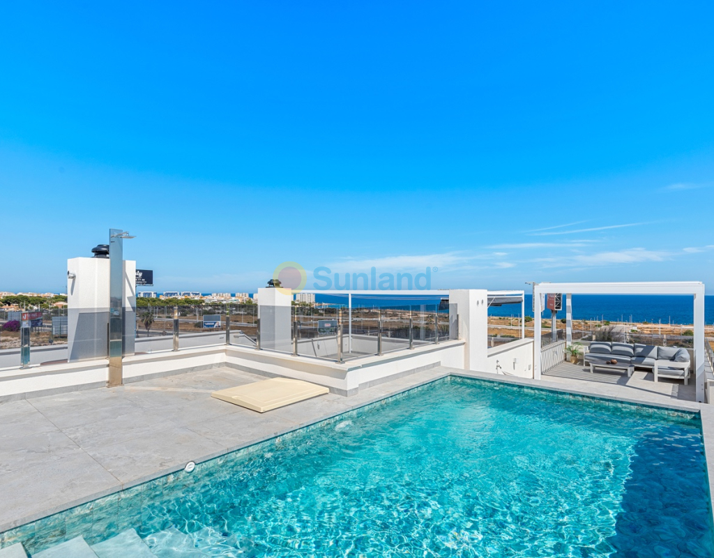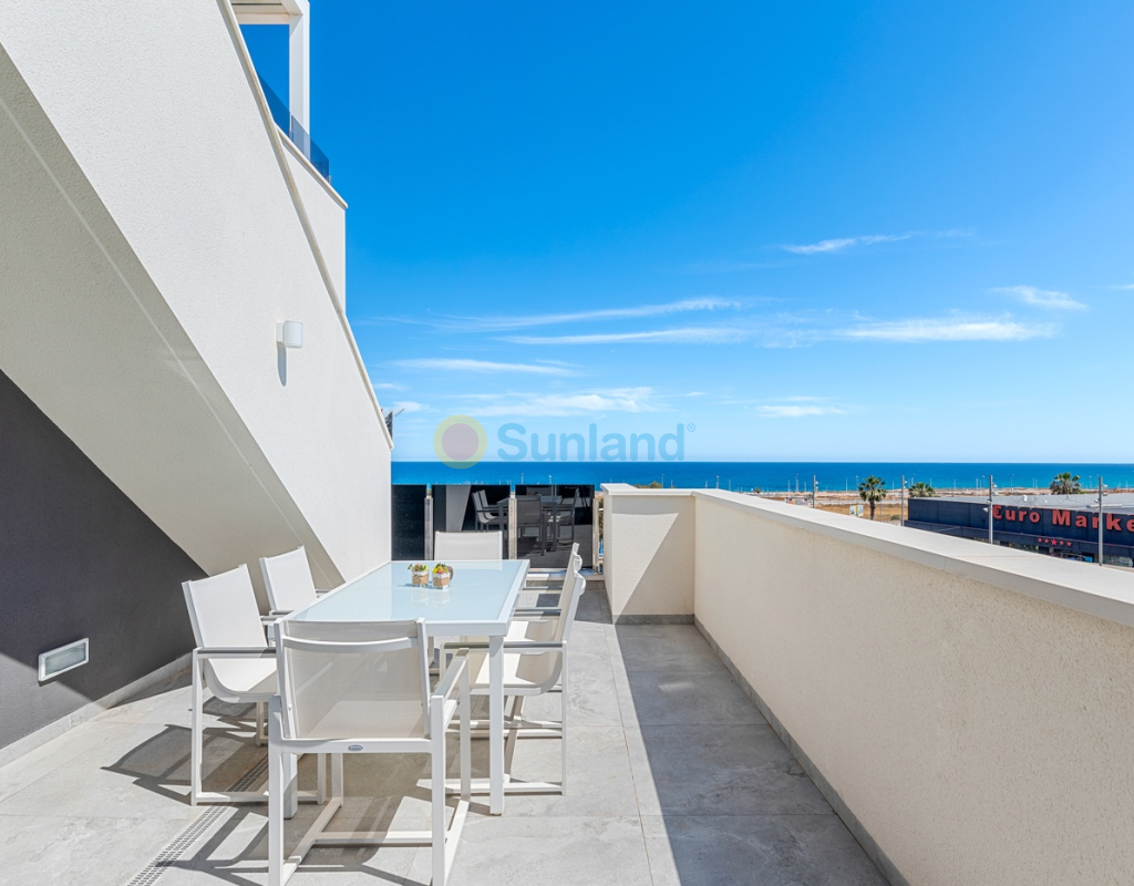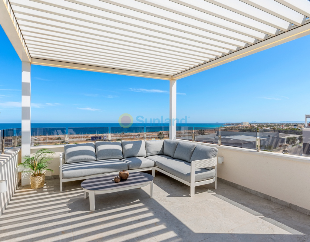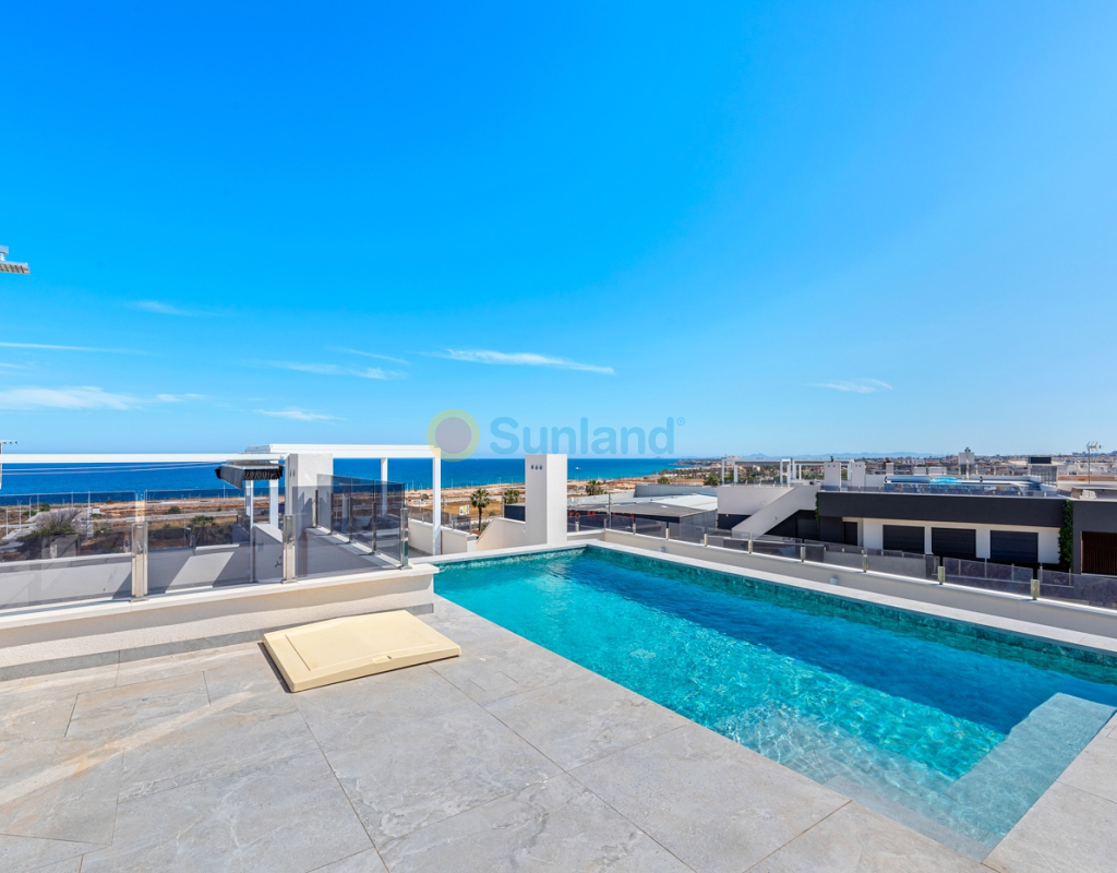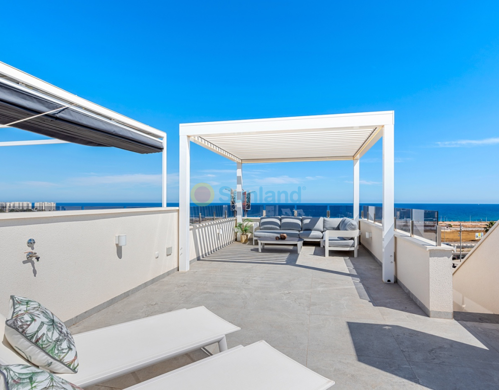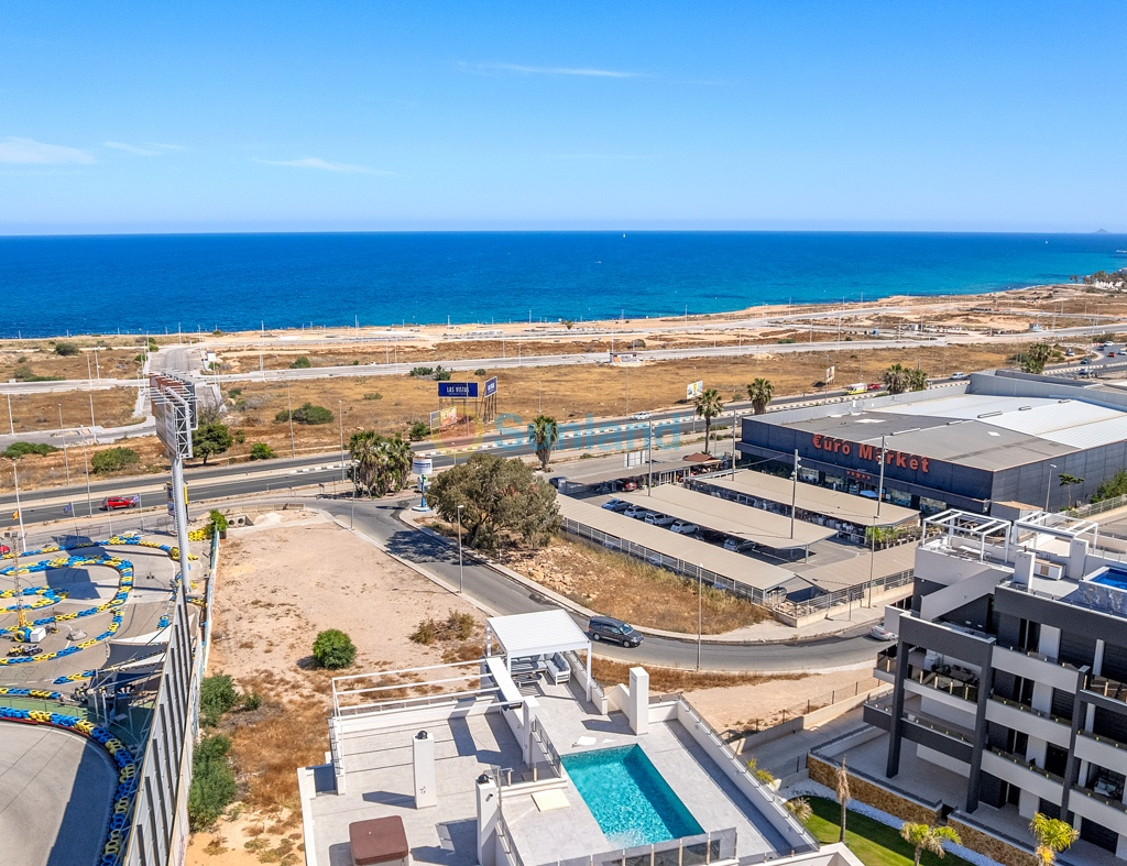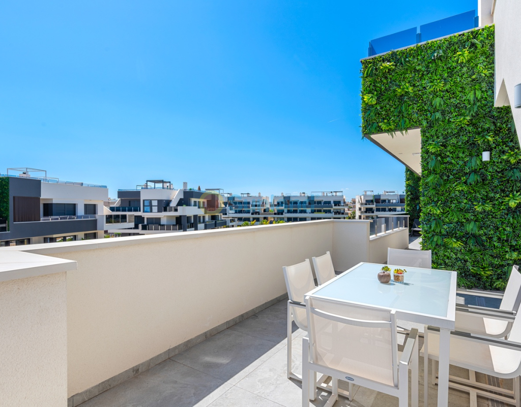Ubicado en el exclusivo residencial Amanecer Deluxe, este apartamento de dos plantas ofrece una excelente combinación de ubicación, comodidad y vistas al mar. Situado en Orihuela Costa, a pocos pasos del Mediterráneo y cerca de todos los servicios, es una opción ideal como residencia o inversión vacacional. La vivienda cuenta con tres dormitorios, dos baños (uno en suite), cocina independiente y un amplio salón-comedor. Todas las estancias, incluida la cocina, tienen acceso directo a un balcón corrido con vistas al mar y espacio para disfrutar al aire libre. Se entrega totalmente amueblado y equipado con materiales de alta calidad: ventanas de PVC con persianas eléctricas, suelo radiante en baños y acabados modernos. En la planta superior se encuentra un solárium privado con piscina, ideal para el ocio y el descanso con total privacidad. La propiedad incluye además una plaza de parking cerrada y amplia dentro del residencial. El complejo ofrece zonas comunes ajardinadas, piscina comunitaria y parque infantil, todo en un entorno tranquilo y bien cuidado.