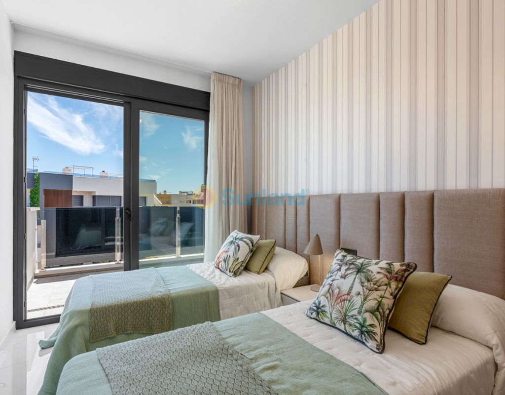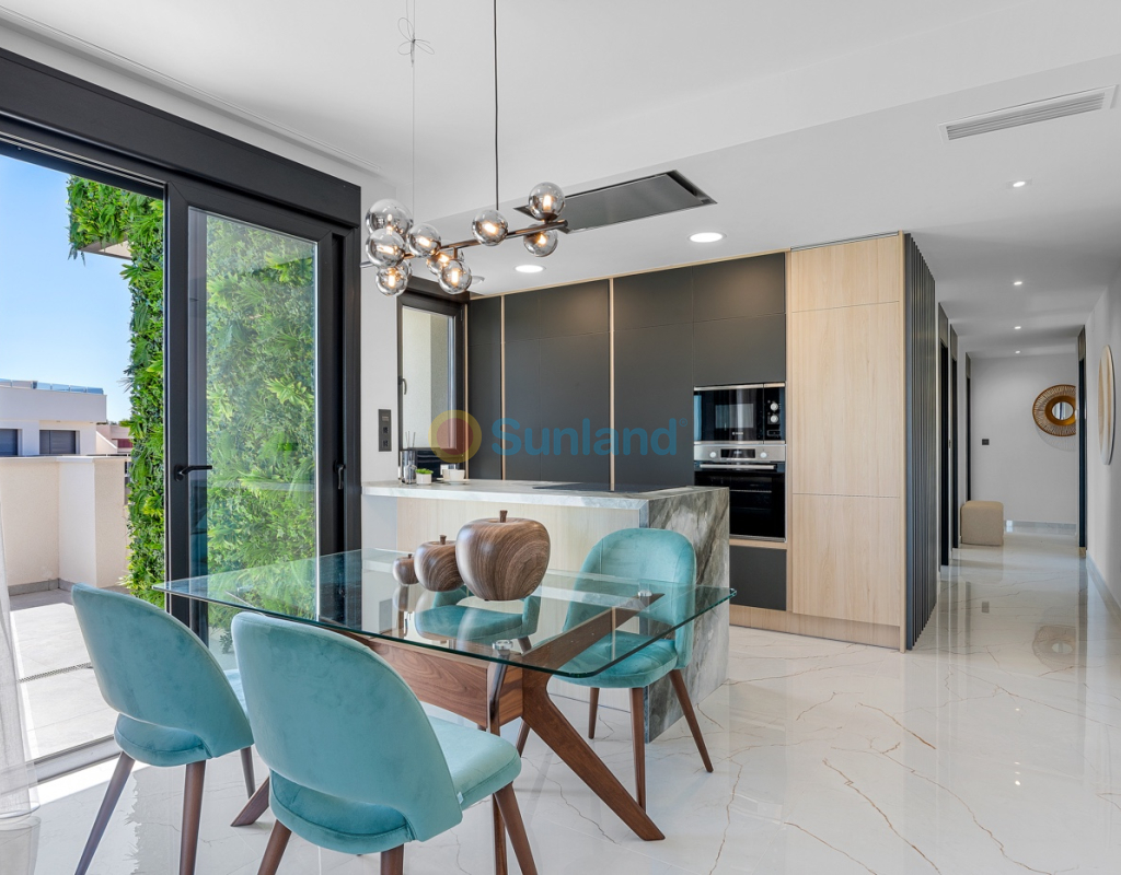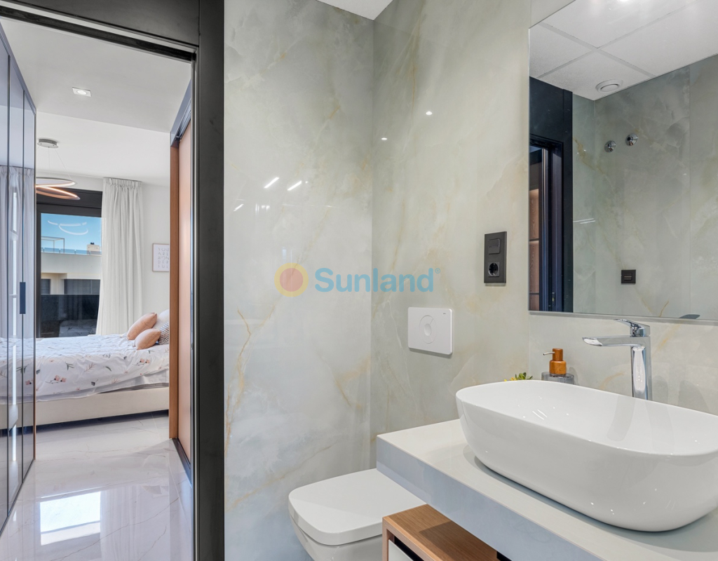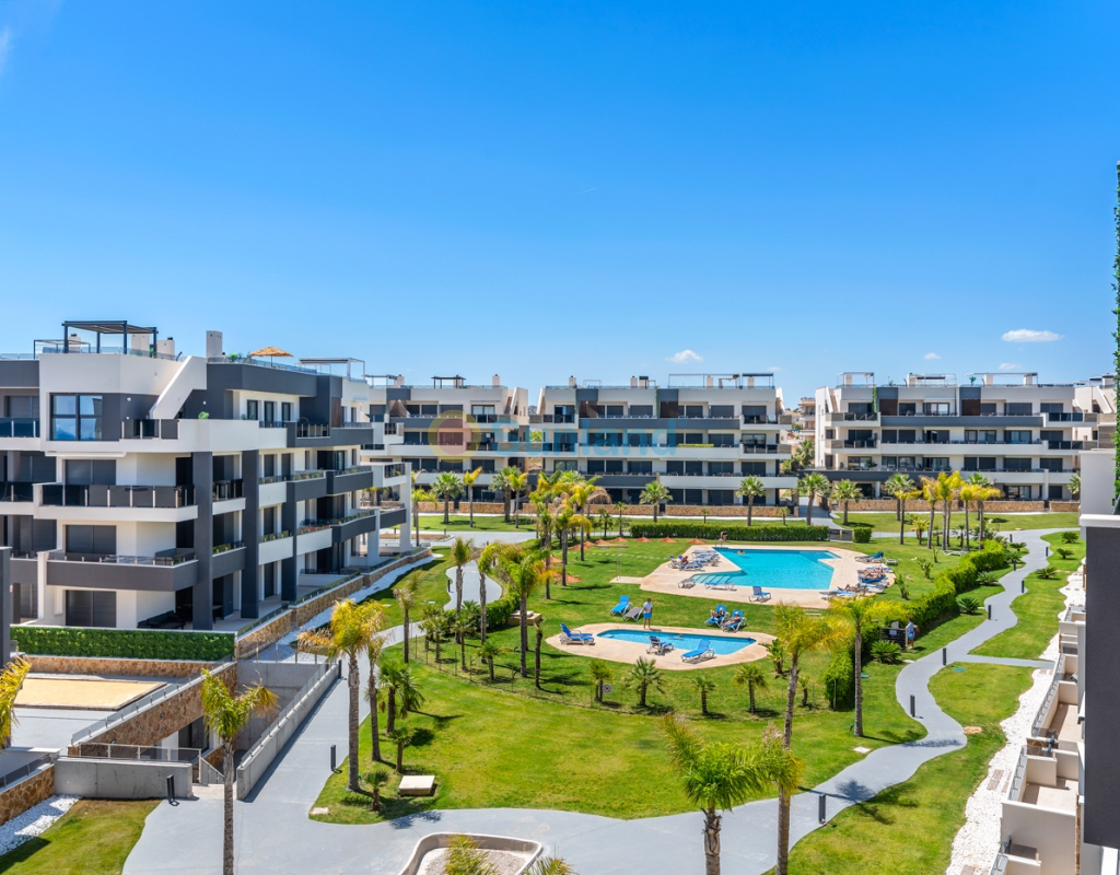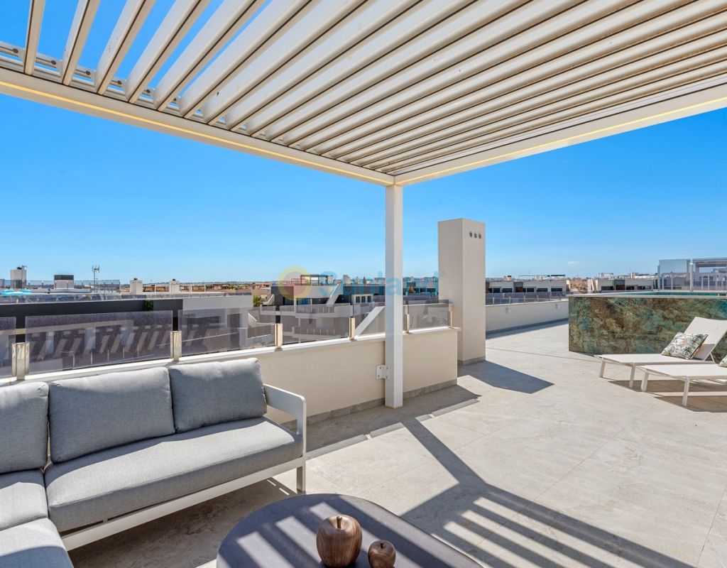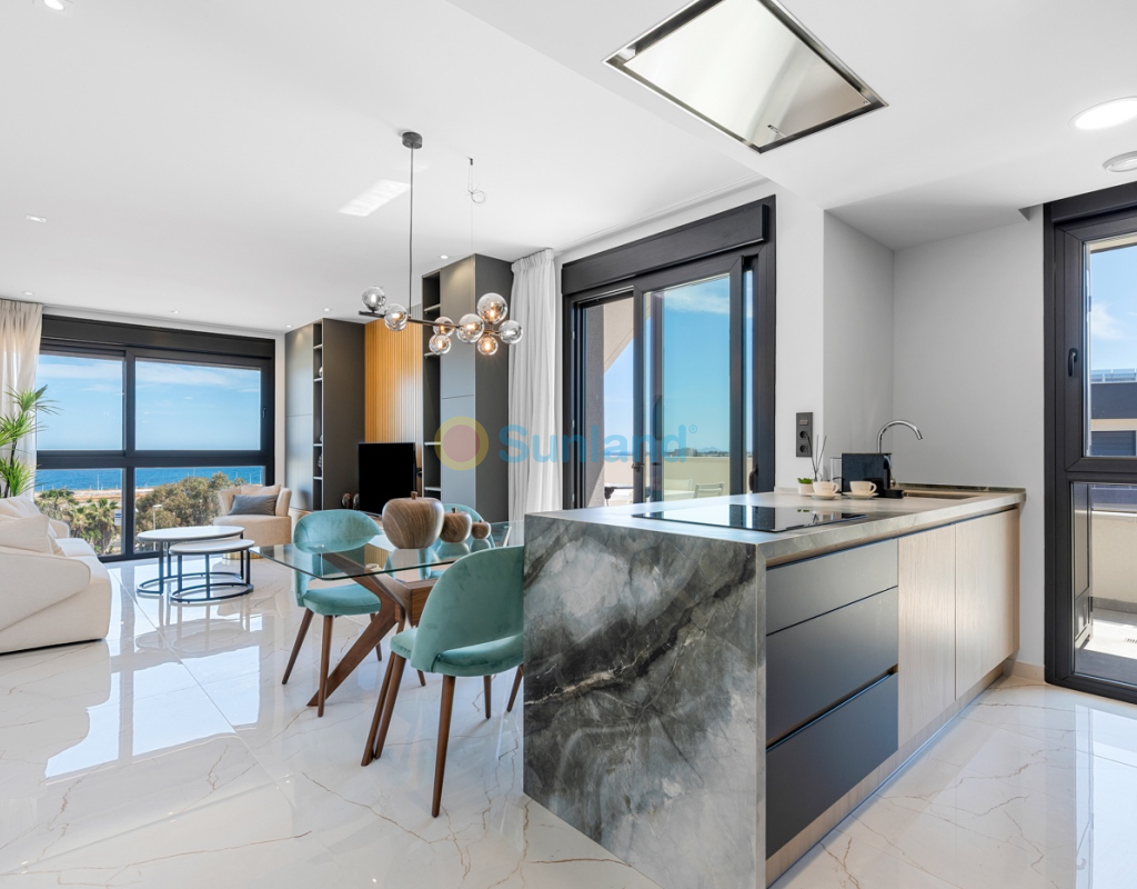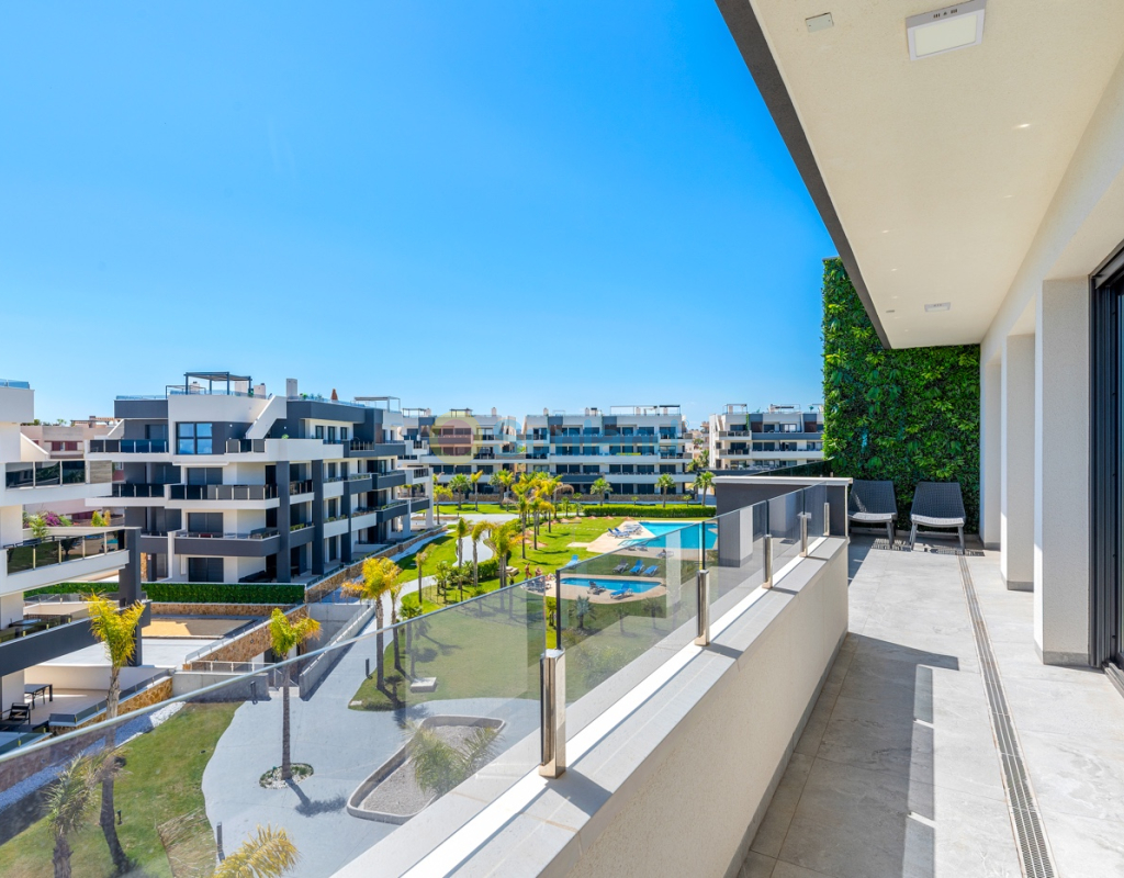 Ubicado en el exclusivo residencial Amanecer Deluxe, este apartamento de dos plantas ofrece una excelente combinación de ubicación, comodidad y vistas al mar. Situado en Orihuela Costa, a pocos pasos del Mediterráneo y cerca de todos los servicios, es una opción ideal como residencia o inversión vacacional. La vivienda cuenta con tres dormitorios, dos baños (uno en suite), cocina independiente y un amplio salón-comedor. Todas las estancias, incluida la cocina, tienen acceso directo a un balcón corrido con vistas al mar y espacio para disfrutar al aire libre. Se entrega totalmente amueblado y equipado con materiales de alta calidad: ventanas de PVC con persianas eléctricas, suelo radiante en baños y acabados modernos. En la planta superior se encuentra un solárium privado con piscina, ideal para el ocio y el descanso con total privacidad. La propiedad incluye además una plaza de parking cerrada y amplia dentro del residencial. El complejo ofrece zonas comunes ajardinadas, piscina comunitaria y parque infantil, todo en un entorno tranquilo y bien cuidado.