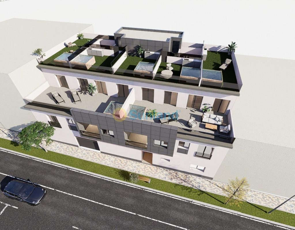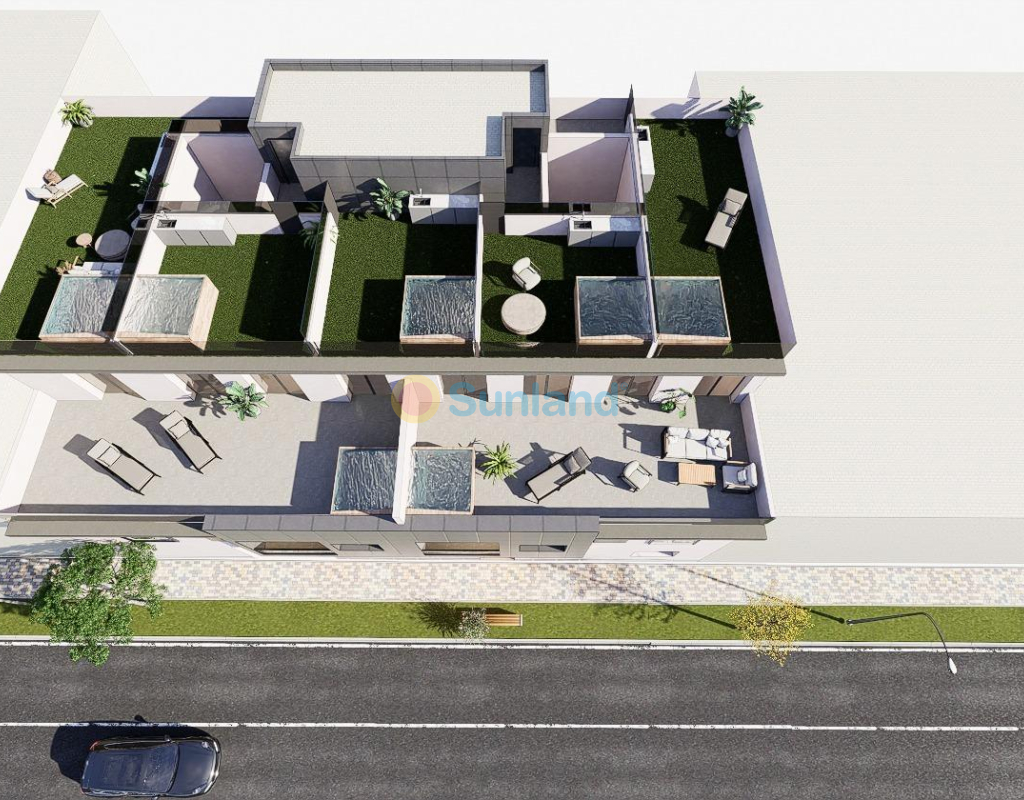 Apartamentos de obra nueva en Pilar de la Horadada con jacuzzi privado Ubicación privilegiada en el corazón de Pilar de la Horadada Situada en el vibrante centro de Pilar de la Horadada, Alicante, esta exclusiva promoción de obra nueva ofrece una inmejorable combinación de vida moderna y encanto mediterráneo. Pilar de la Horadada es una pintoresca ciudad española situada en el extremo sur de la Costa Blanca, conocida por su acogedora comunidad, sus encantadoras plazas y su proximidad a impresionantes playas. Opciones y características de los apartamentos El complejo residencial consta de siete apartamentos meticulosamente diseñados, que ofrecen una gama de diseños para adaptarse a diversas necesidades: Planta baja: Un espacioso apartamento de 3 dormitorios que incluye un solarium privado en la azotea. Primera planta: Cuatro apartamentos de 1 ó 2 dormitorios, cada uno con solárium individual. Áticos: Dos exclusivos apartamentos de 3 dormitorios con amplias terrazas privadas. Todos los apartamentos cuentan con acabados de alta gama, incluyendo: Cocinas totalmente equipadas con modernos electrodomésticos. Preinstalación de aire acondicionado por conductos para su comodidad. Carpintería exterior de aluminio con rotura de puente térmico para un mayor aislamiento. Doble acristalamiento (4+14+4 Climalit o similar) para una mayor eficiencia energética. Elegantes cuartos de baño con inodoro suspendido (Roca Gap o similar), duchas efecto lluvia y espejos y mamparas incluidos. Jacuzzis privados para cada casa, perfectos para relajarse. Servicios adicionales para una vida elevada La urbanización ofrece: Una plaza de aparcamiento para cada apartamento situada en la planta baja. Un ascensor que da acceso desde la planta baja a la planta solarium. Una cocina de verano en cada solarium, ideal para el entretenimiento al aire libre. Cómodo acceso a los principales puntos de interés Esta ubicación proporciona fácil acceso a los servicios y atracciones esenciales: Playas: Las playas de Torre de la Horadada y Mil Palmeras están a sólo 3 km, a 5 minutos en coche o en bicicleta. Campos de Golf: El campo de golf más cercano está a 8 km, perfecto para los amantes del golf. Centros Comerciales: Zenia Boulevard, uno de los mayores centros comerciales de la zona, está a 12 km. Aeropuertos: El aeropuerto de Corvera (Murcia) está a 40 minutos (40 km), y el aeropuerto de Alicante a 55 minutos (55 km) en coche. Descubra el estilo de vida mediterráneo Pilar de la Horadada combina la tranquilidad de un pueblo costero con la comodidad de la vida moderna, ofreciendo supermercados, restaurantes, bares y plazas vibrantes a poca distancia. Programe su visita hoy mismo No pierda la oportunidad de ser propietario de la casa de sus sueños en esta codiciada zona de la Costa Blanca. Póngase en contacto con nosotros para concertar una visita o para obtener más información.