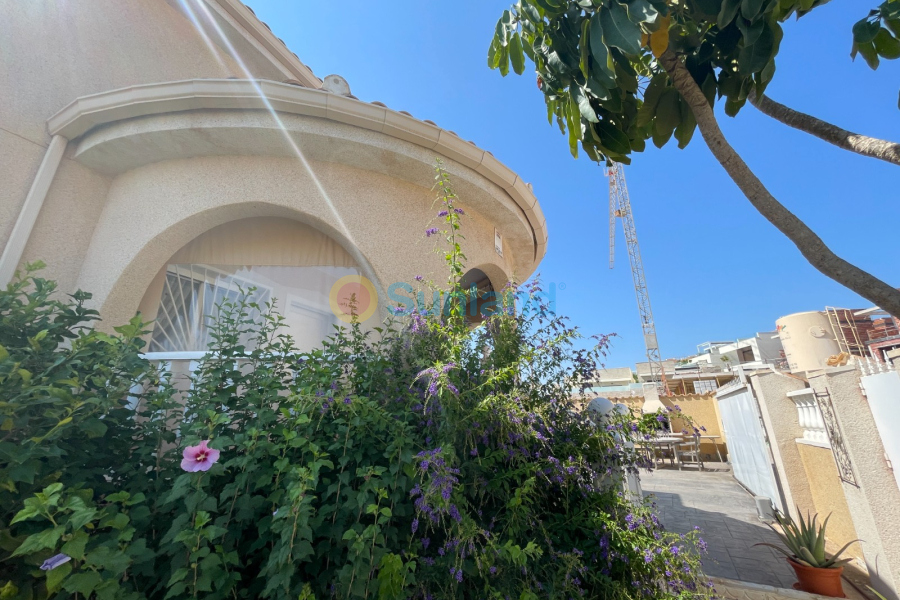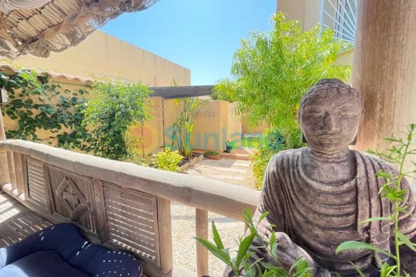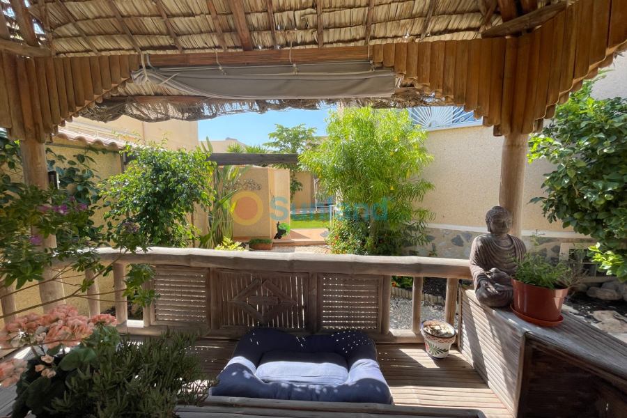 En una ubicación de esquina y rodeada de vegetación, esta propiedad destaca por su cuidado jardín y su acogedor cenador de bambú. El terreno ofrece espacio suficiente para estacionar una autocaravana, caravana o remolque junto a un coche familiar… o, si lo prefieres, para instalar tu propia piscina privada.