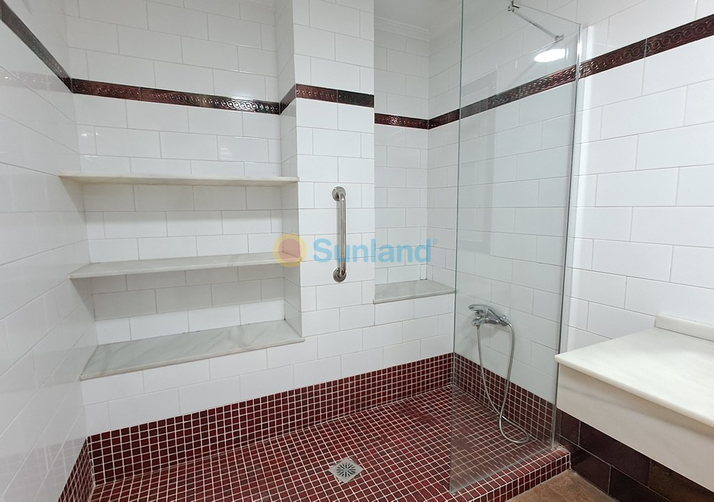 Enorme y espectacular apartamento ubicado en el centro de Torrevieja. Compuesto por 5 dormitorios y 2 baños, este apartamento tiene un buen potencial. Puede encontrar alrededor de la propiedad muchas tiendas, bares y está a poca distancia andando de la playa. Hay un gran salón con chimenea y acceso a la terraza donde hay vistas urbanas y donde es posible ver el carnaval, las procesiones de Semana Santa y muchos eventos que transcurren en una de las calles más céntricas de la ciudad. En este apartamento podemos encontrar una gran cocina con un patio muy bonito con estilo andaluz. También hay una habitación para una despensa. Todos los dormitorios tienen armarios empotrados y el dormitorio principal tiene baño en suite.