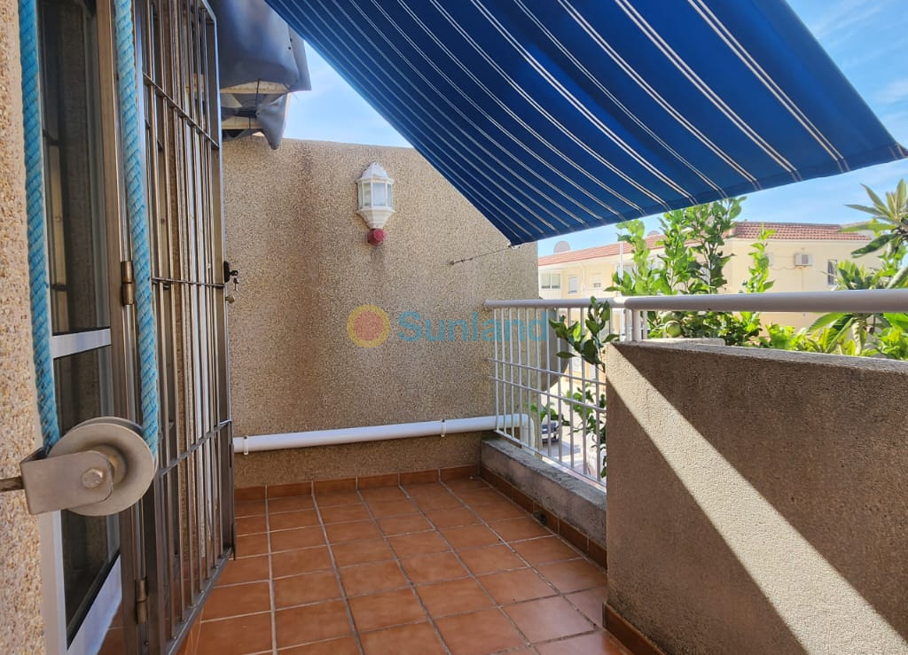Te presentamos esta magnífica propiedad tipo dúplex situada en una de las zonas más cotizadas de Torrevieja: Aguas Nuevas. Con una superficie construida de 85 m², este hogar ofrece comodidad, estilo y una ubicación privilegiada, ideal tanto para residencia permanente como para vacaciones. Distribución de la vivienda: 3 amplios dormitorios, luminosos y bien distribuidos, perfectos para familias o visitas. 2 baños completos, en excelente estado, con acabados modernos. Orientación Sur. Cocina completamente equipada, funcional y con acceso directo al patio trasero. Salón-comedor espacioso, decorado con gusto, con salida a la terraza delantera. 2 terrazas (una en planta baja y otra en planta alta), ideales para disfrutar del clima mediterráneo. Patio trasero privado, perfecto para comer al aire libre, zona de barbacoa o simplemente relajarse. Estado y equipamiento: Vivienda muy bien cuidada, lista para entrar a vivir. Se vende totalmente amueblada, con muebles de calidad y en perfecto estado. Aire acondicionado instalado en todas las habitaciones. Zonas comunes: Forma parte de una urbanización tranquila y segura, rodeada de zonas verdes. Dispone de una preciosa piscina comunitaria, perfecta para refrescarse en verano y socializar. Ubicación: Situado en Aguas Nuevas, una zona residencial muy demandada por su cercanía a todos los servicios: Supermercados, centros comerciales, farmacias y restaurantes a pocos minutos. Paradas de autobús y fácil acceso a la carretera nacional. A menos de 10 minutos en coche de las playas de La Mata y Los Locos. Este dúplex representa una oportunidad única para disfrutar de la vida mediterránea con todas las comodidades. Ya sea como residencia habitual, casa de vacaciones o inversión para alquiler, ¡esta propiedad lo tiene todo!