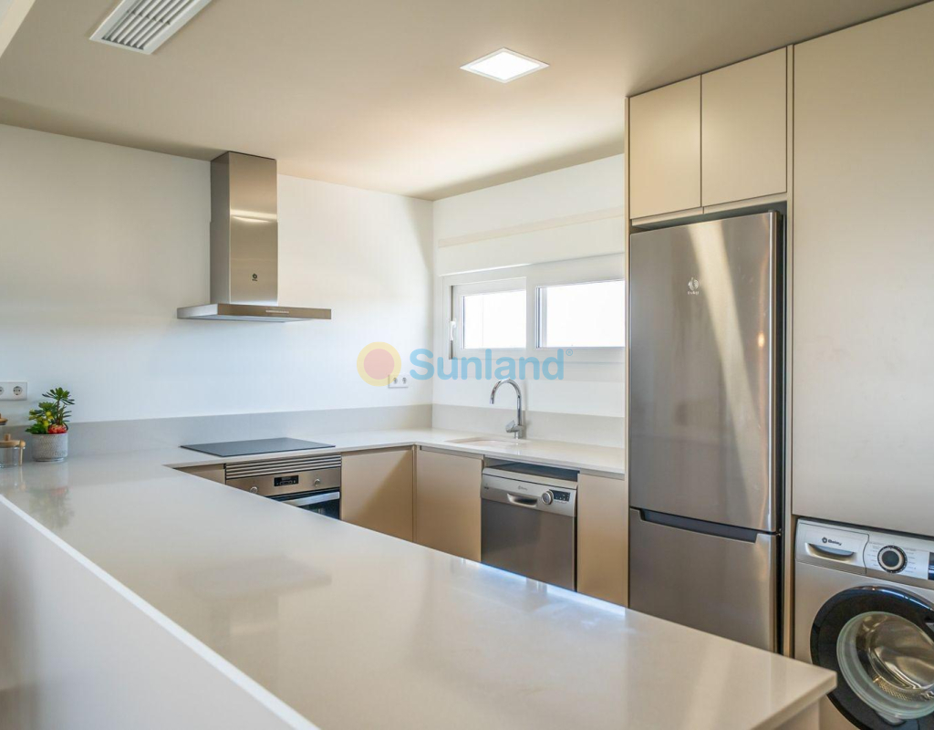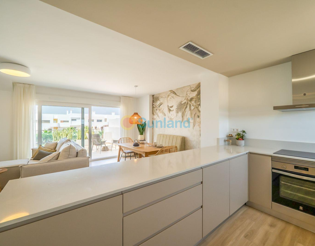 RESIDENCIAL DE OBRA NUEVA DE BUNGALOW EN VISTABELLA Residencial de obra nueva de bungalows de diseño moderno en Vistabella. Modernos bungalows de 2 y 3 dormitorios, cocina americana y salón, armarios empotrados, plaza de garaje. Los bungalows de planta baja disponen de jardín privado y los de planta alta de solarium privado. El residencial cuenta con jardines comunitarios muy bien diseñados con una preciosa piscina comunitaria. Estos preciosos y espaciosos apartamentos están siendo construidos con productos y materiales de primera calidad. En Vistabella Golf hay espacio para todos. El campo está diseñado para que cada jugador pueda disfrutarlo de principio a fin. Sus calles onduladas, bunkers estratégicos o lagos son algunas de las características que lo convierten en uno de los diseños más atractivos de la zona, donde cada golpe es un reto y un placer para los sentidos. Los 18 Hoyos de Vistabella Golf, par 72 y más de 6.000 metros de longitud han sido diseñados siguiendo las pautas de los campos modernos con 4 tees de gran amplitud en cada hoyo, calles anchas y bunkers elevados. La casa club y restaurante de Vistabella Golf y los bares y tiendas de la zona se encuentran a 5 minutos a pie. La animada ciudad de San Miguel de Salinas y Los Montesinos están a 5 minutos en coche y las hermosas playas de bandera azul en Guardamar están a sólo 15 minutos en coche. El aeropuerto de Alicante está a 35 minutos y el nuevo aeropuerto de Corvera Murcia está a 45 minutos.