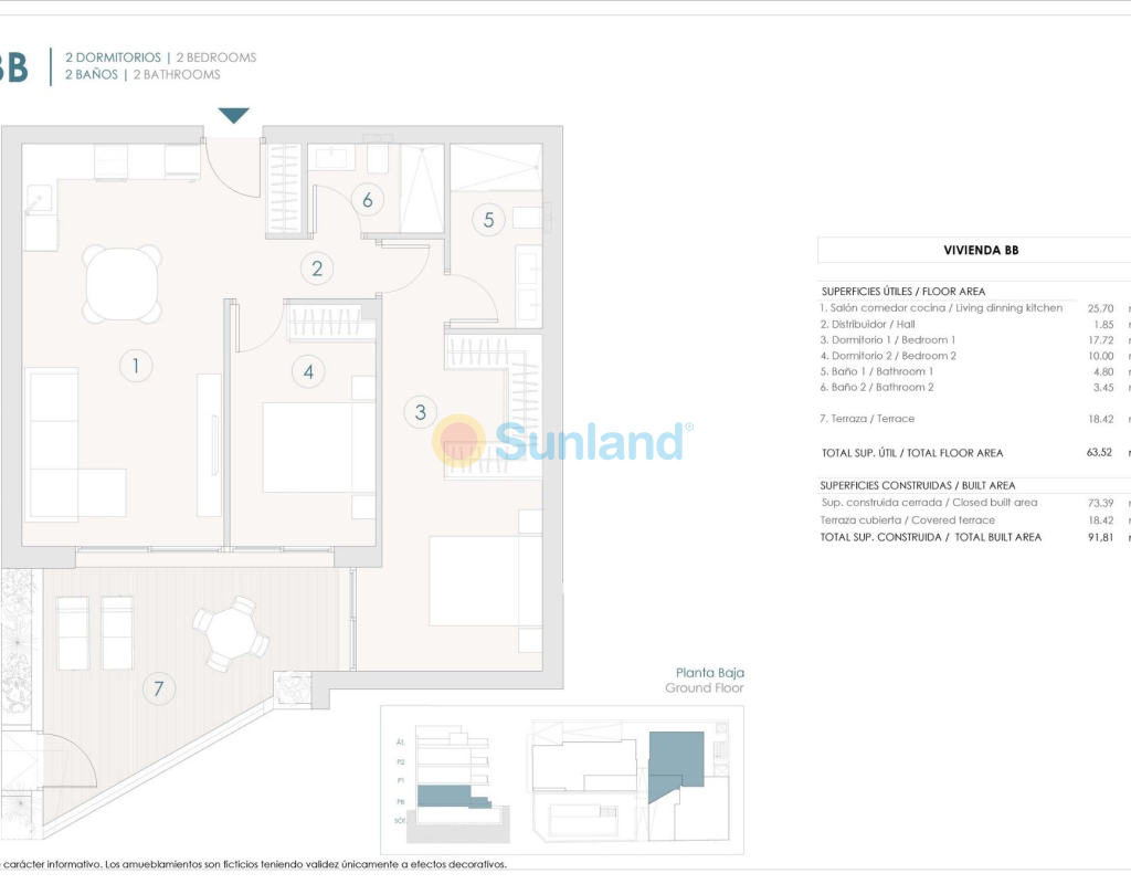 Apartamentos de nueva construcción en Benijófar con una ubicación céntrica Vida residencial contemporánea en Benijófar Esta exclusiva promoción nueva en Benijófar ofrece solo 11 viviendas modernas diseñadas para combinar arquitectura contemporánea, comodidad y materiales de alta calidad. El proyecto incluye apartamentos en planta baja y primera planta con amplias terrazas, así como áticos con terrazas y soláriums privados. Situada en una zona céntrica pero tranquila de Benijófar y frente a una gran zona verde, la urbanización disfruta de una excelente luz natural durante todo el día y de unas agradables vistas abiertas. Apartamentos modernos con características de primera calidad Cada propiedad ha sido cuidadosamente diseñada para cumplir con altos estándares de calidad y funcionalidad. Todas las viviendas incluyen una plaza de garaje privada y un trastero en el sótano, con cómodo acceso en ascensor. Los residentes también pueden disfrutar de una elegante piscina comunitaria rodeada de zonas comunes ajardinadas, ideal para relajarse y socializar. Los áticos destacan por sus amplios soláriums, que ofrecen la posibilidad de instalar una cocina al aire libre y cuentan con un jacuzzi, creando un espacio exterior único perfecto para entretenerse o relajarse bajo el sol del Mediterráneo. Acabados de alta calidad y eficiencia energética La residencia se ha construido prestando especial atención a la durabilidad, la eficiencia y la estética moderna. Las características incluyen: Preinstalación de aire acondicionado y calefacción por conductos Carpintería exterior con rotura de puente térmico y doble acristalamiento Sistema aerotérmico para agua caliente sanitaria Cocinas amuebladas con electrodomésticos incluidos Paquete de iluminación interior y exterior incluido Baños con tocadores, espejos y mamparas de ducha Jacuzzi incluido en los soláriums de los áticos Cada detalle ha sido seleccionado para garantizar un entorno de vida cómodo, eficiente y elegante. Estilo de vida y ubicación de Benijófar Benijófar es uno de los pueblos con más encanto de la Vega Baja, conocido por su ambiente relajado, su seguridad y su excelente calidad de vida. Todos los servicios cotidianos, como supermercados, colegios, centros médicos, restaurantes y zonas de ocio, se encuentran a menos de 5 minutos. El pueblo ofrece el equilibrio perfecto entre la vida tradicional española y las comodidades modernas. Distancias clave a puntos de interés Playas de Guardamar del Segura: 8 km Campos de golf La Finca y La Marquesa: 6 km Parque acuático de Rojales: 4 km Centro comercial Zenia Boulevard: 17 km Aeropuerto de Alicante: 35 km Su nuevo hogar en la Costa Blanca le espera Estos apartamentos de nueva construcción en Benijófar ofrecen una combinación excepcional de ubicación, calidad y diseño. Póngase en contacto con nosotros hoy mismo para concertar una visita y asegurarse su nuevo hogar en la Costa Blanca.