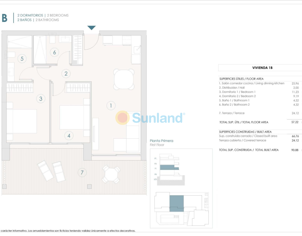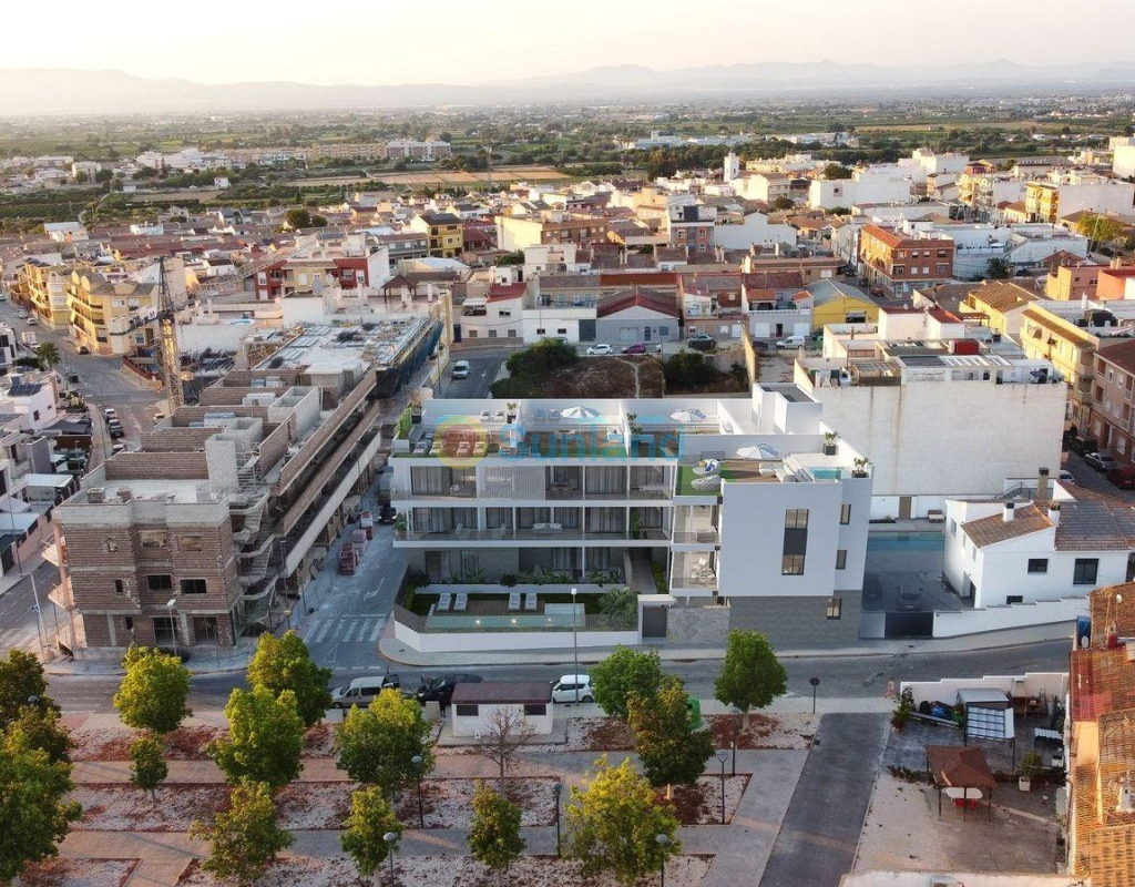 Apartamentos de nueva construcción en Benijófar con una ubicación céntrica Vida residencial contemporánea en Benijófar Esta exclusiva promoción nueva en Benijófar ofrece solo 11 viviendas modernas diseñadas para combinar arquitectura contemporánea, comodidad y materiales de alta calidad. El proyecto incluye apartamentos en planta baja y primera planta con amplias terrazas, así como áticos con terrazas y soláriums privados. Situada en una zona céntrica pero tranquila de Benijófar y frente a una gran zona verde, la urbanización disfruta de una excelente luz natural durante todo el día y de unas agradables vistas abiertas. Apartamentos modernos con características de primera calidad Cada propiedad ha sido cuidadosamente diseñada para cumplir con altos estándares de calidad y funcionalidad. Todas las viviendas incluyen una plaza de garaje privada y un trastero en el sótano, con cómodo acceso en ascensor. Los residentes también pueden disfrutar de una elegante piscina comunitaria rodeada de zonas comunes ajardinadas, ideal para relajarse y socializar. Los áticos destacan por sus amplios soláriums, que ofrecen la posibilidad de instalar una cocina al aire libre y cuentan con un jacuzzi, creando un espacio exterior único perfecto para entretenerse o relajarse bajo el sol del Mediterráneo. Acabados de alta calidad y eficiencia energética La residencia se ha construido prestando especial atención a la durabilidad, la eficiencia y la estética moderna. Las características incluyen: Preinstalación de aire acondicionado y calefacción por conductos Carpintería exterior con rotura de puente térmico y doble acristalamiento Sistema aerotérmico para agua caliente sanitaria Cocinas amuebladas con electrodomésticos incluidos Paquete de iluminación interior y exterior incluido Baños con tocadores, espejos y mamparas de ducha Jacuzzi incluido en los soláriums de los áticos Cada detalle ha sido seleccionado para garantizar un entorno de vida cómodo, eficiente y elegante. Estilo de vida y ubicación de Benijófar Benijófar es uno de los pueblos con más encanto de la Vega Baja, conocido por su ambiente relajado, su seguridad y su excelente calidad de vida. Todos los servicios cotidianos, como supermercados, colegios, centros médicos, restaurantes y zonas de ocio, se encuentran a menos de 5 minutos. El pueblo ofrece el equilibrio perfecto entre la vida tradicional española y las comodidades modernas. Distancias clave a puntos de interés Playas de Guardamar del Segura: 8 km Campos de golf La Finca y La Marquesa: 6 km Parque acuático de Rojales: 4 km Centro comercial Zenia Boulevard: 17 km Aeropuerto de Alicante: 35 km Su nuevo hogar en la Costa Blanca le espera Estos apartamentos de nueva construcción en Benijófar ofrecen una combinación excepcional de ubicación, calidad y diseño. Póngase en contacto con nosotros hoy mismo para concertar una visita y asegurarse su nuevo hogar en la Costa Blanca.