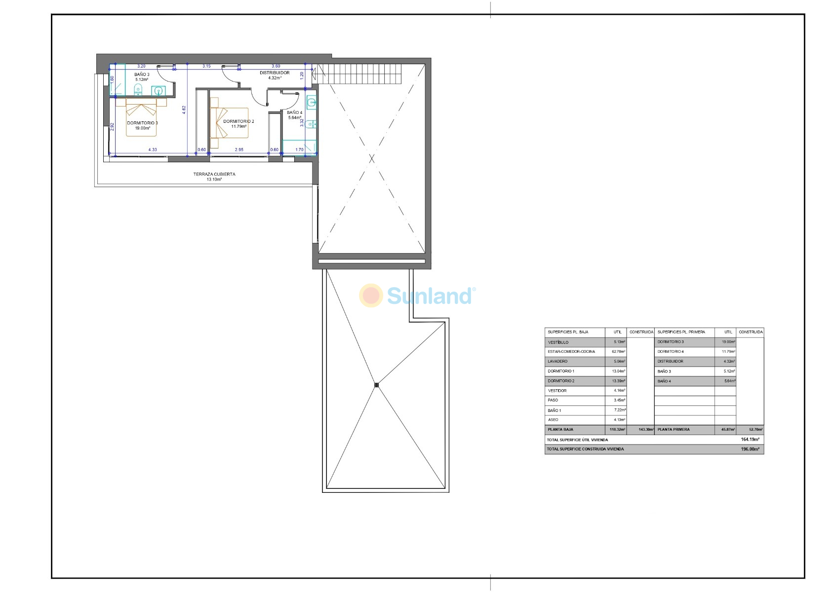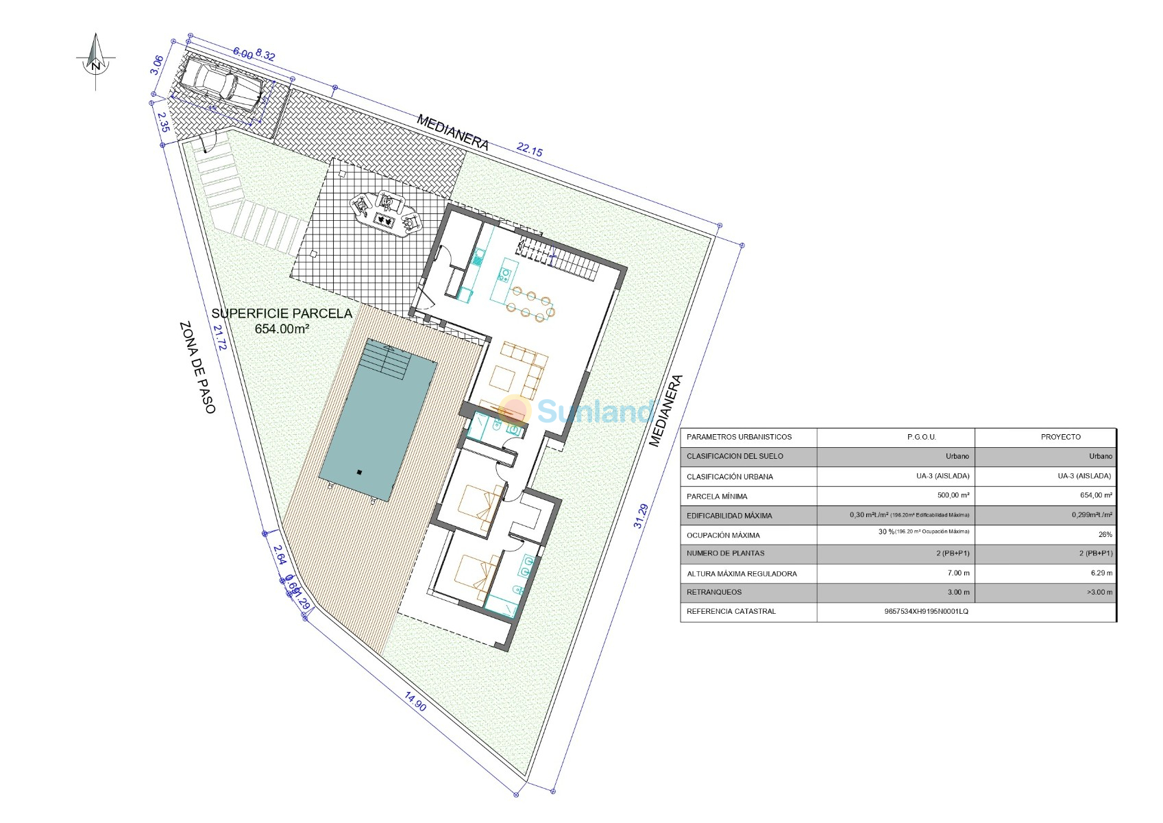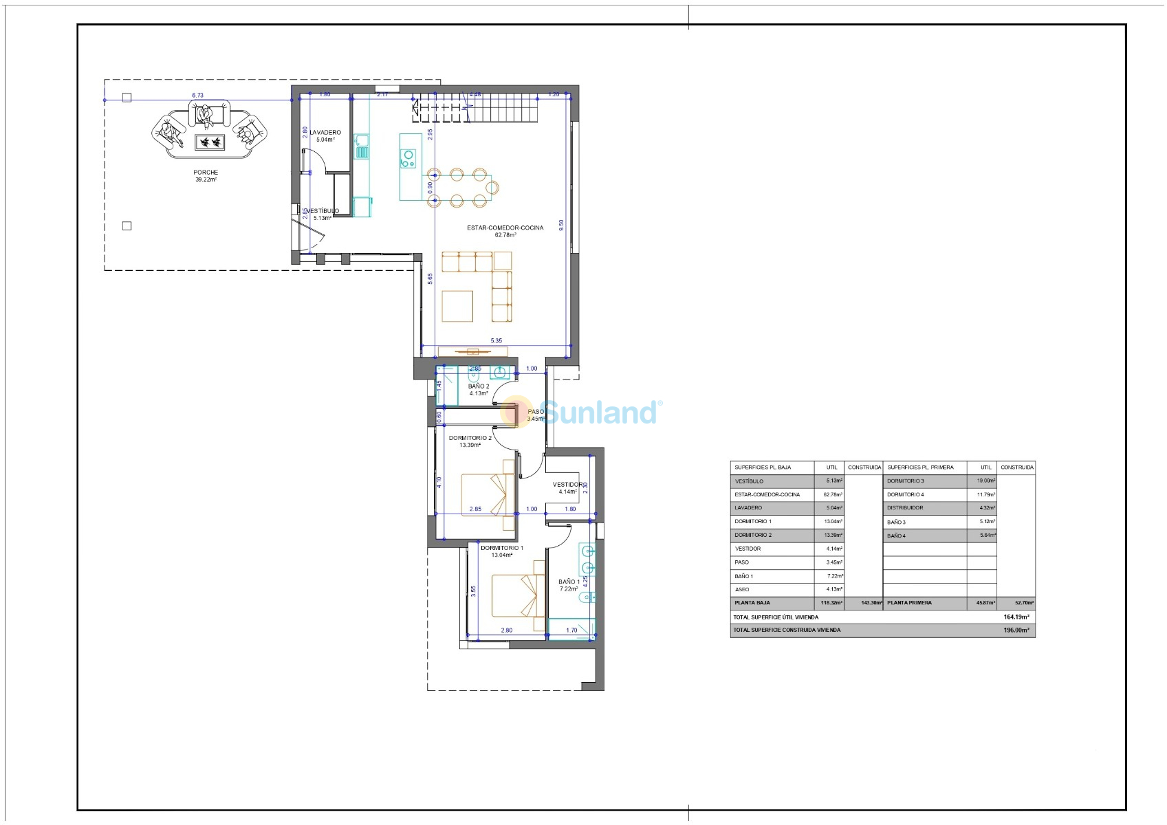 Superficie total construida 220m2. Utiles 196m2. Superficie parcela 654m2.