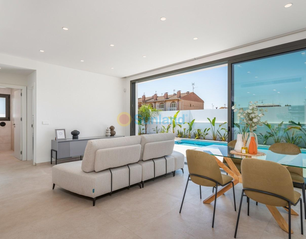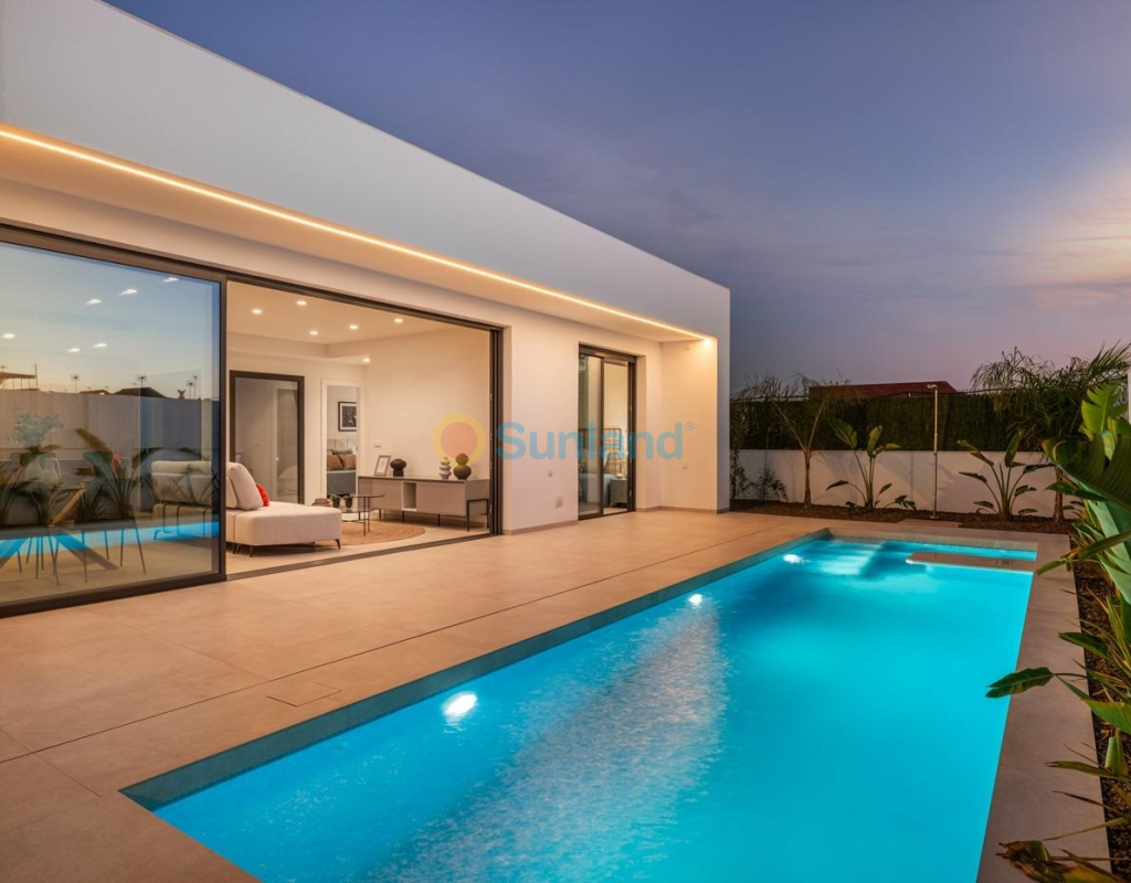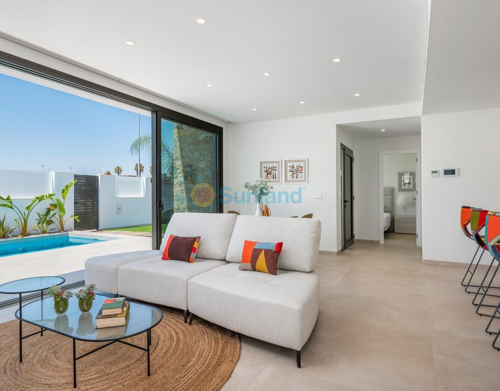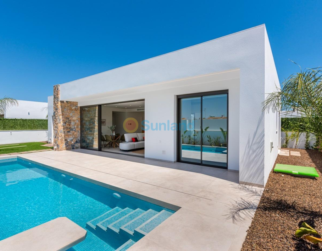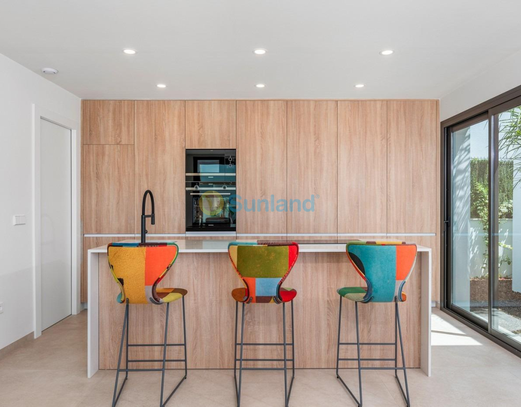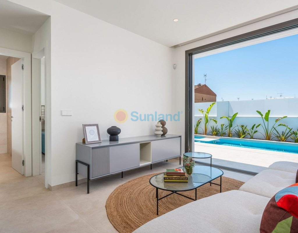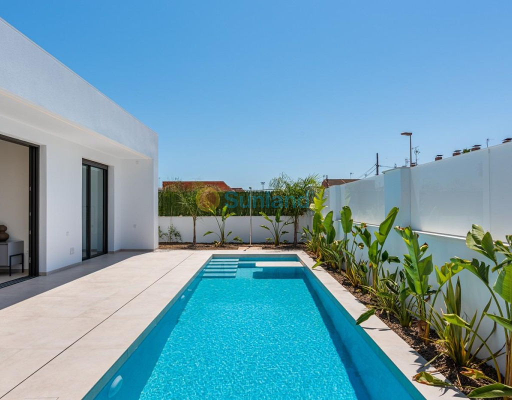 VILLAS DE OBRA NUEVA EN SAN JAVIER Residencial de obra nueva de villas en San Javier. Villas construidas en 1 planta y consta de 3 dormitorios, 2 baños, cocina americana, el salón con vistas abiertas a la terraza, jardín privado con la piscina. Cocina totalmente amueblada en color blanco brillo o madera incluye Placa de inducción con extractor integrado, horno, microondas, lavadora, frigorífico integrado y lavavajillas integrado. Instalación completa de Aire Acondicionado por conductos. La piscina tiene preinstalación para bomba de calor. San Javier está cerca de todos los servicios con fácil acceso a la playa, deportes acuáticos, tiendas y la red de transporte. Aquí se puede disfrutar de todas las instalaciones que San Javier tiene para ofrecer, como las tiendas locales, bares y restaurantes, así como estar cerca de centros comerciales, el aeropuerto de Murcia y todos los hermosos lugares que se encuentran a lo largo del Mar Menor. El aeropuerto de Corvera/Murcia está a 30 minutos y el aeropuerto de Alicante a 45 minutos.