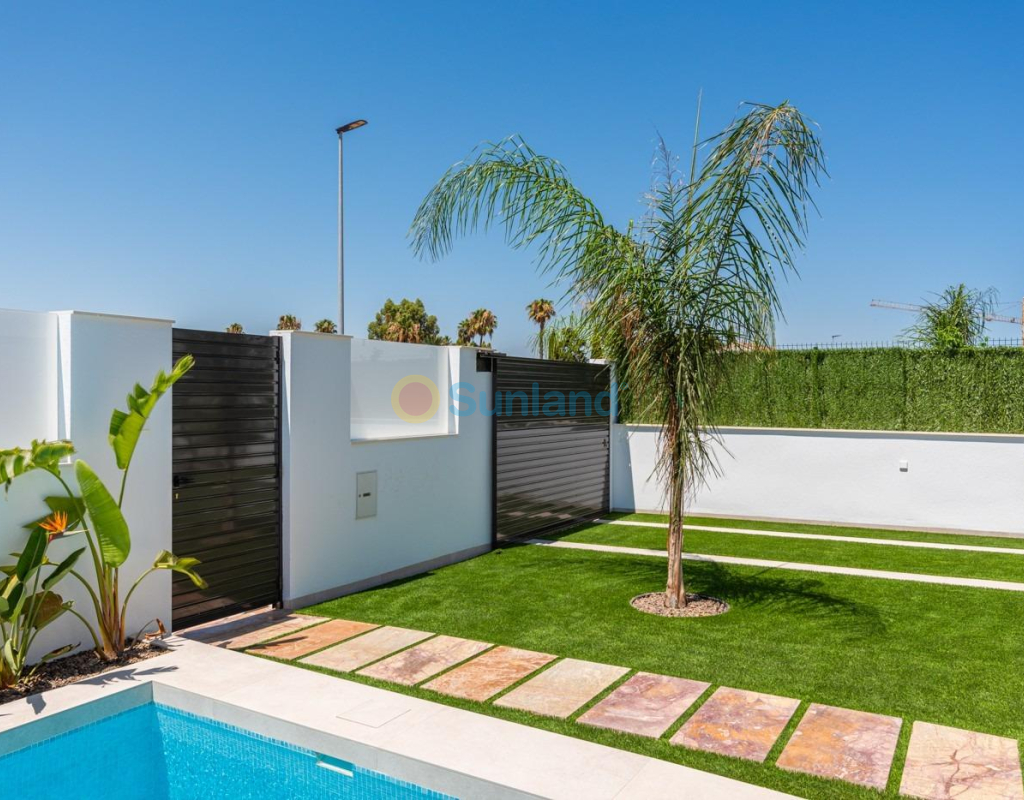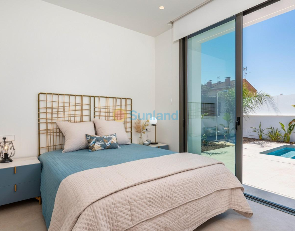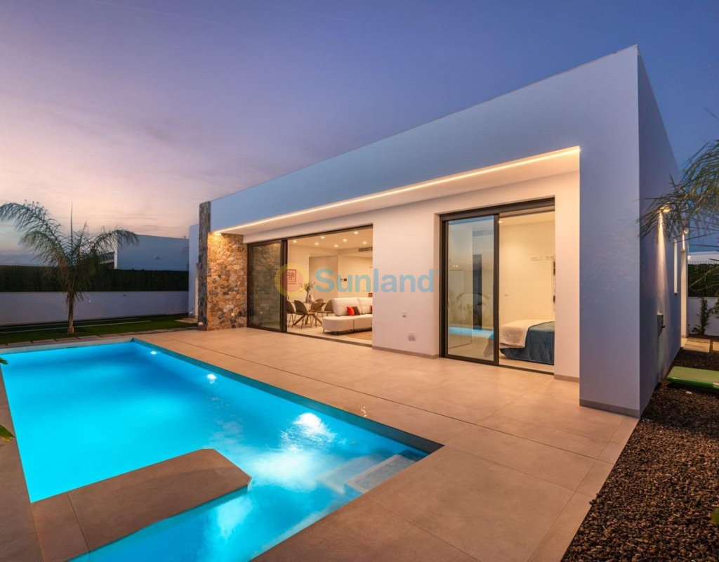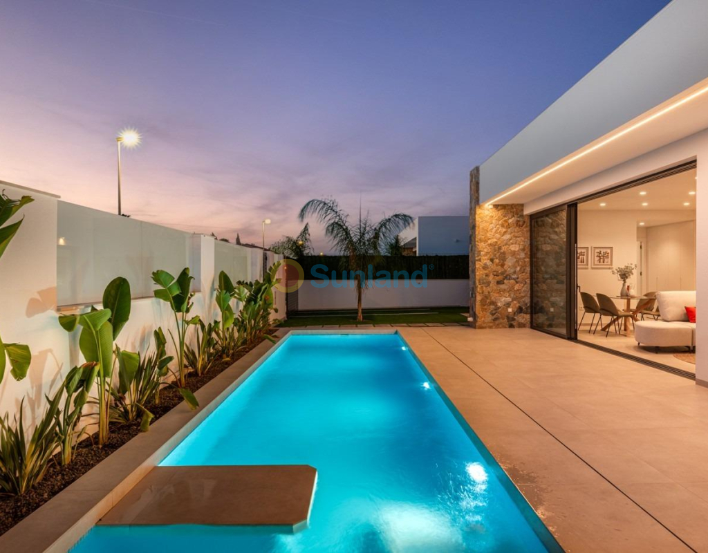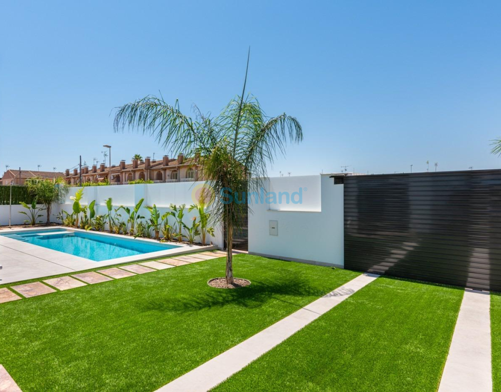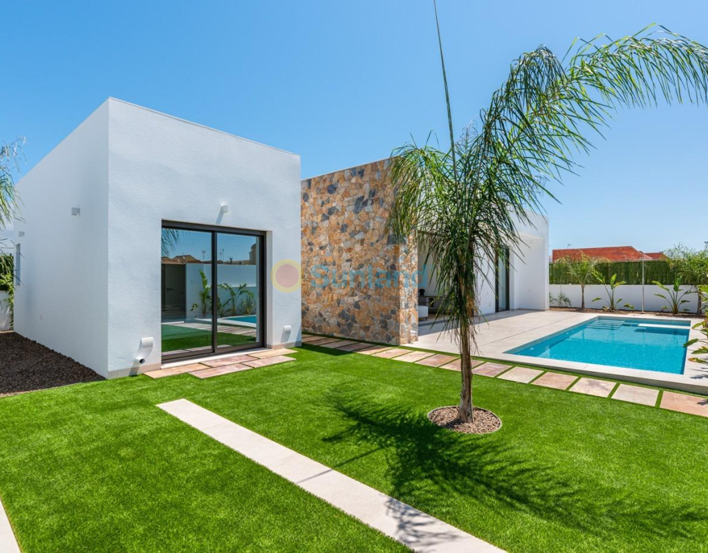 VILLAS DE OBRA NUEVA EN SAN JAVIER Residencial de obra nueva de villas en San Javier. Villas construidas en 1 planta y consta de 3 dormitorios, 2 baños, cocina americana, el salón con vistas abiertas a la terraza, jardín privado con la piscina. Cocina totalmente amueblada en color blanco brillo o madera incluye Placa de inducción con extractor integrado, horno, microondas, lavadora, frigorífico integrado y lavavajillas integrado. Instalación completa de Aire Acondicionado por conductos. La piscina tiene preinstalación para bomba de calor. San Javier está cerca de todos los servicios con fácil acceso a la playa, deportes acuáticos, tiendas y la red de transporte. Aquí se puede disfrutar de todas las instalaciones que San Javier tiene para ofrecer, como las tiendas locales, bares y restaurantes, así como estar cerca de centros comerciales, el aeropuerto de Murcia y todos los hermosos lugares que se encuentran a lo largo del Mar Menor. El aeropuerto de Corvera/Murcia está a 30 minutos y el aeropuerto de Alicante a 45 minutos.