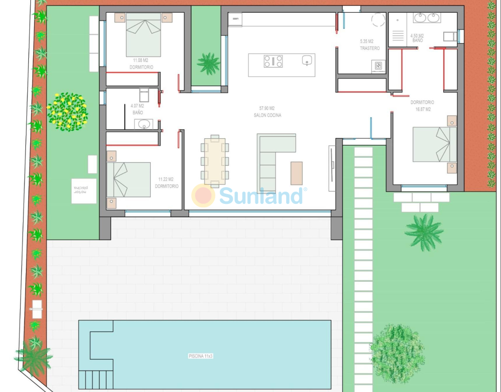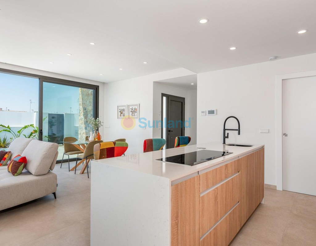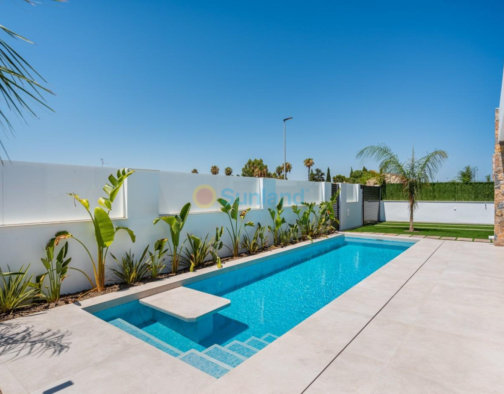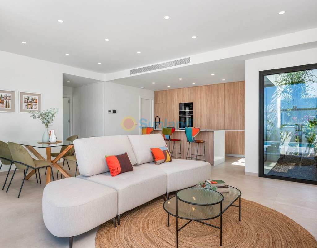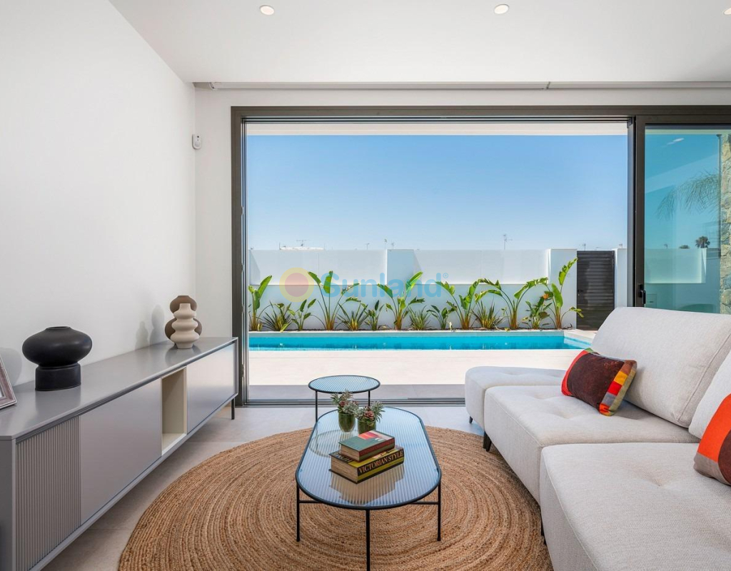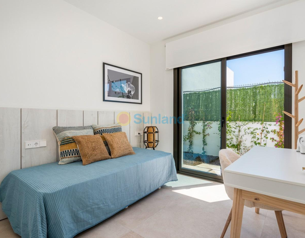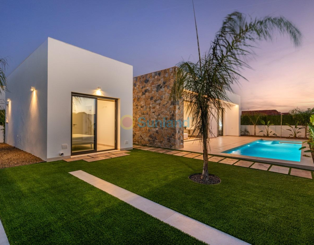 VILLAS DE OBRA NUEVA EN SAN JAVIER Residencial de obra nueva de villas en San Javier. Villas construidas en 1 planta y consta de 3 dormitorios, 2 baños, cocina americana, el salón con vistas abiertas a la terraza, jardín privado con la piscina. Cocina totalmente amueblada en color blanco brillo o madera incluye Placa de inducción con extractor integrado, horno, microondas, lavadora, frigorífico integrado y lavavajillas integrado. Instalación completa de Aire Acondicionado por conductos. La piscina tiene preinstalación para bomba de calor. San Javier está cerca de todos los servicios con fácil acceso a la playa, deportes acuáticos, tiendas y la red de transporte. Aquí se puede disfrutar de todas las instalaciones que San Javier tiene para ofrecer, como las tiendas locales, bares y restaurantes, así como estar cerca de centros comerciales, el aeropuerto de Murcia y todos los hermosos lugares que se encuentran a lo largo del Mar Menor. El aeropuerto de Corvera/Murcia está a 30 minutos y el aeropuerto de Alicante a 45 minutos.