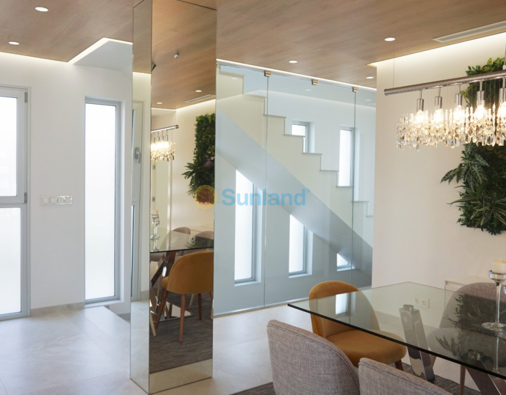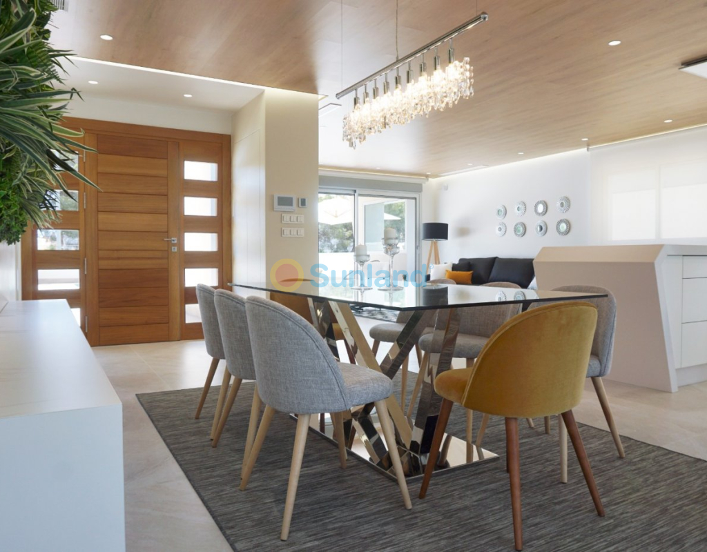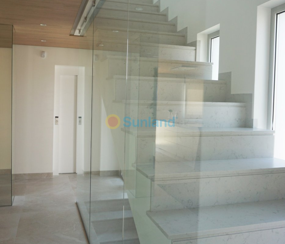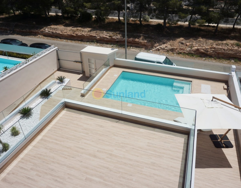 VILLAS DE LUJO DE OBRA NUEVA EN CAMPOAMOR Exclusiva promoción de obra nueva de sólo cinco villas independientes en Campoamor, Orihuela Costa. La villa tiene 4 dormitorios (uno en la planta baja y tres en la primera planta), 4 baños (dos en-suite, un baño familiar, uno en el sótano), dos aseos separados (uno en la planta baja y otro en el solarium de la azotea), un gran sótano y aparcamiento subterráneo. La villa de estilo moderno incluye una cocina totalmente equipada con barra de desayuno y un enorme salón/comedor de planta abierta, una zona exterior cubierta para comer/estar, un jardín y una piscina privada. El solarium de la azotea con acceso desde la primera planta incluye una cocina de verano. Campoamor está rodeado de muchas playas como La Glea, Aguamarina, Campoamor, La Zenia, Cabo Roig y Playa Flamenca. Hay tres excelentes campos de golf de 18 hoyos a menos de cinco kilómetros de la urbanización, incluyendo el Golf Villamartín, el Real Club de Golf de Campoamor y el Golf Las Ramblas de Campoamor. Usted puede beneficiarse de todas las instalaciones que esta zona tiene para ofrecer, incluyendo el centro comercial La Zenia Boulevard, restaurantes internacionales, centros deportivos, escuelas, centros de salud, hospital, servicio de autobús. Campoamor es un lugar muy bien comunicado, a 45 minutos del aeropuerto de Murcia Corvera y a 35 minutos del aeropuerto internacional de Alicante-Elche, con un rápido acceso desde la autopista.
