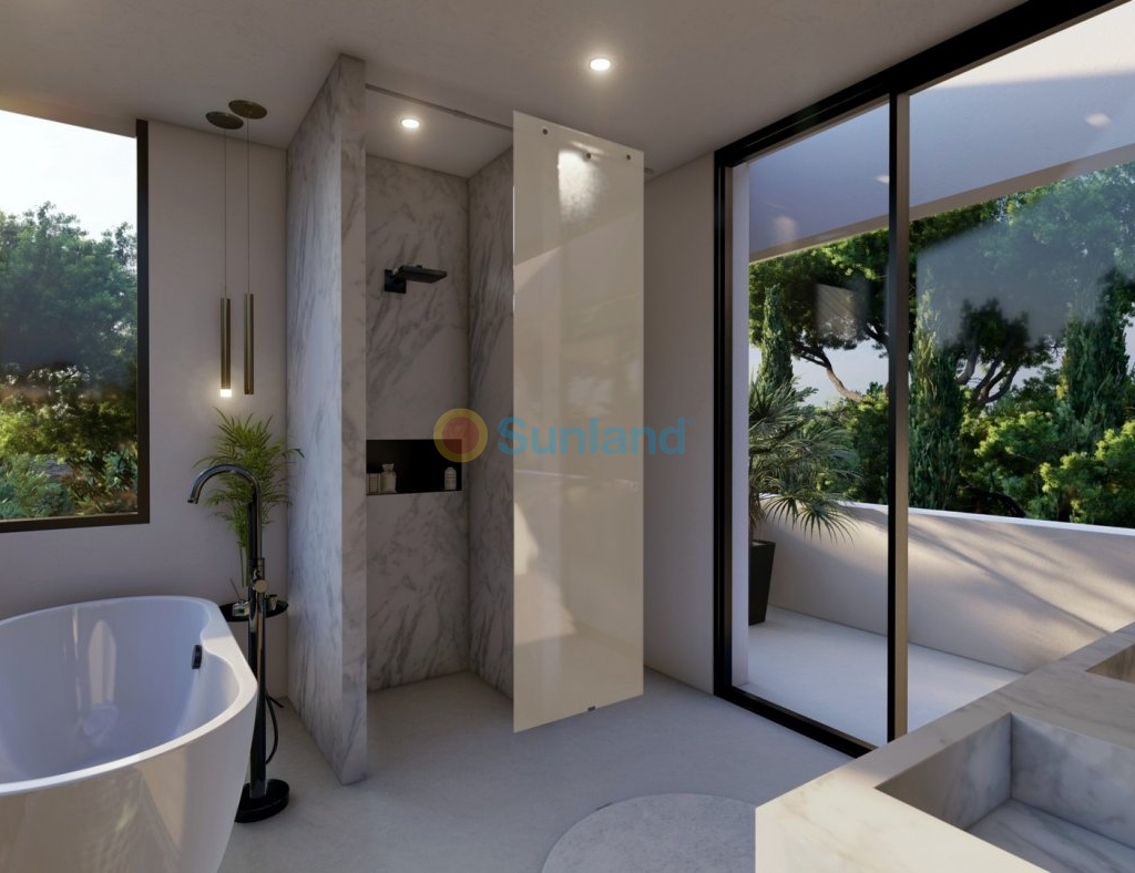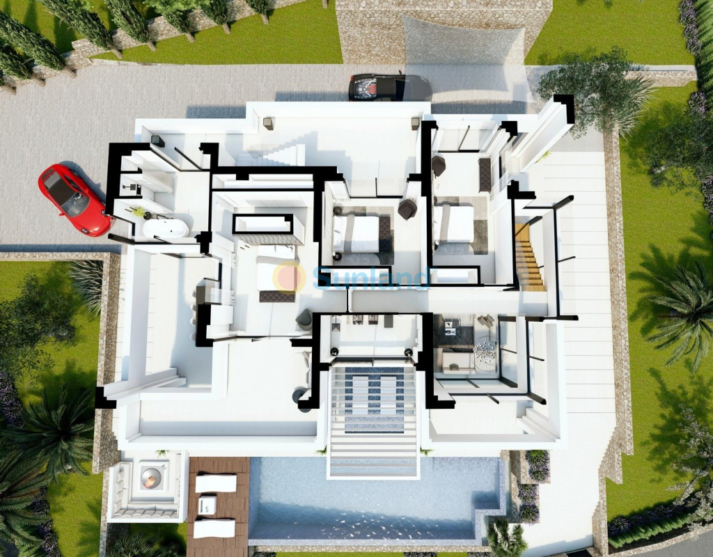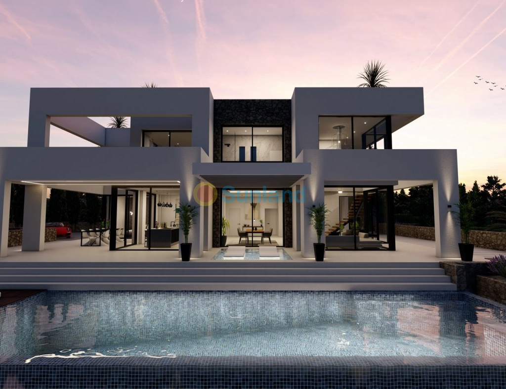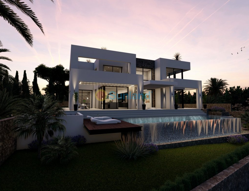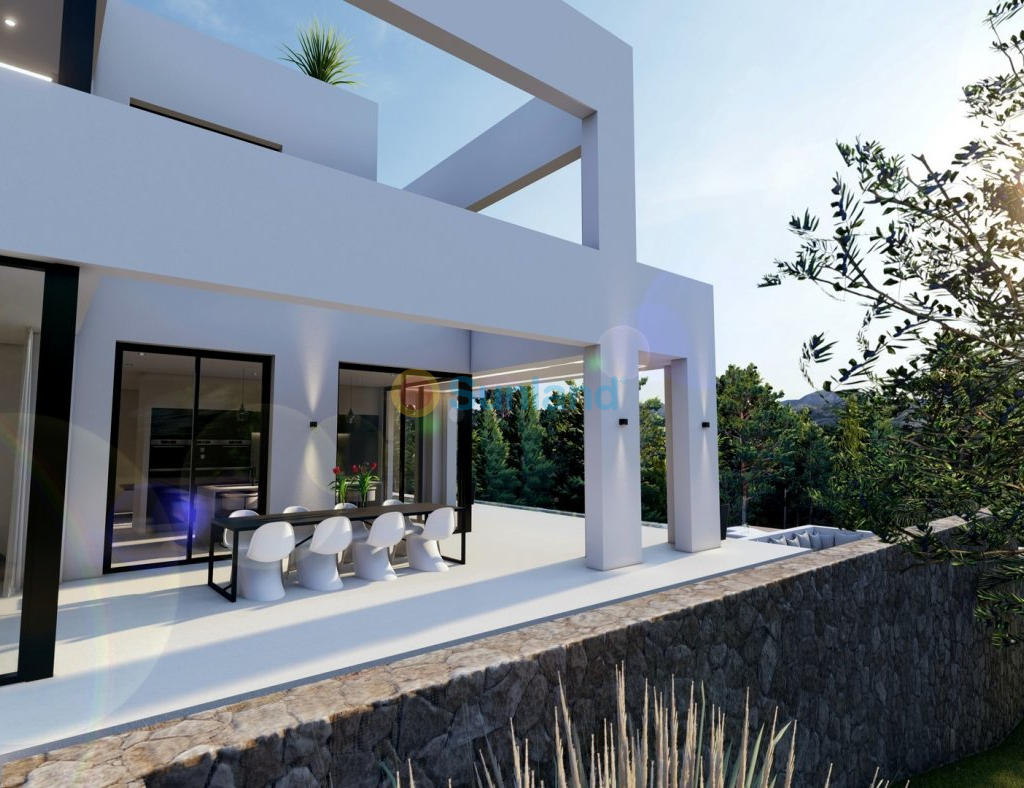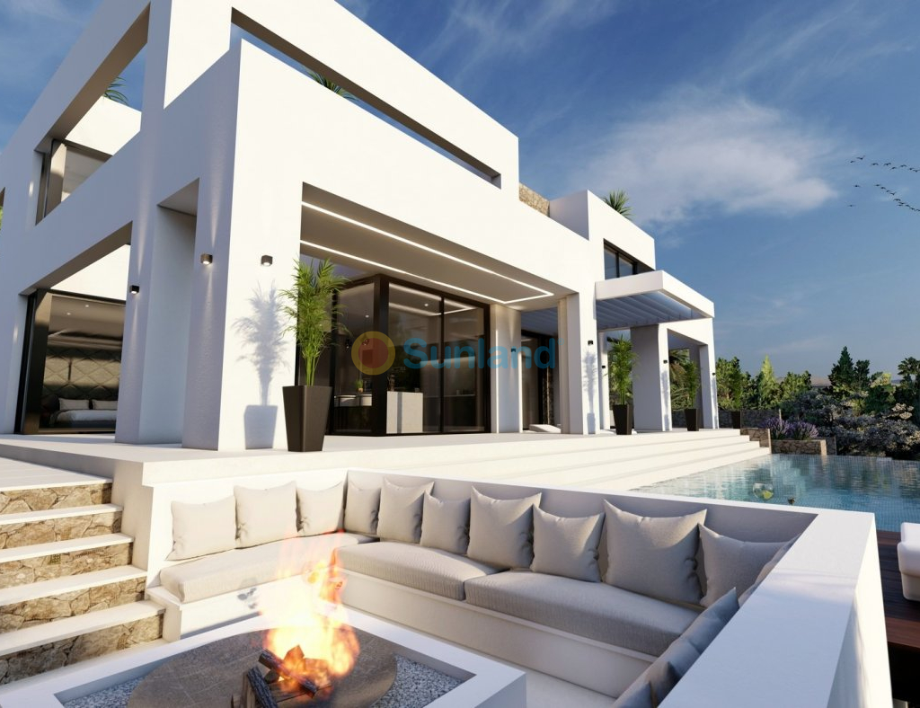 VILLA DE NUEVA CONSTRUCCIÓN EN BENNISA Villa de lujo de nueva construcción en venta en Benissa, Costa Blanca. Villa de lujo en Benissa, arquitectura moderna con piscina infinita 13x4,5m. Esta villa está construida en una gran parcela plana con vistas al mar. Tiene 4 dormitorios y 4 baños, solarium de 197m2, sótano de 205m2. También dispone de parking exterior para 2 vehículos, con pavimento de hormigón impreso, cubierto con un toldo de vela de diseño. Desde el parking se accede a la planta baja a través de una puerta de entrada a la vivienda con cristal lateral fijo de seguridad. De ahí pasamos al gran salón con doble altura en el que se encuentra la escalera de diseño de viga de acero, con peldaños de madera flotantes y barandilla de cristal que da acceso a la primera planta. En la planta baja hay un aseo de invitados, un gran lavadero con acceso a la terraza exterior, un dormitorio con armarios empotrados y baño en suite y una gran cocina cerrada. Toda la planta baja tiene ventanas de suelo a techo que dan mucha luz y acceso a grandes terrazas y a la piscina. En la primera planta hay 3 dormitorios y 2 baños, todos con acceso a terrazas, una de ellas con escalera exterior que lleva al solarium de 197m2. Todos los dormitorios tienen armarios empotrados. Desde todas las habitaciones de la primera planta se accede a una gran terraza y jardín con espectaculares vistas y piscina infinita, así como a una zona chill out con chimenea exterior en el jardín. El sótano tiene una gran zona diáfana donde se puede construir una sala de cine, gimnasio, etc. En el equipamiento de esta villa destacamos las últimas tecnologías instaladas en toda la casa. Como el sistema de domótica controlado por voz y desde la APP del móvil para el sistema de alarma. Instalación completa de conductos de aire acondicionado. Todos los mecanismos necesarios para la instalación de la climatización por zonas, generada por la tecnología del aire, en la planta baja y en la planta piso. Posibilidad de conectar Airzone con el sistema inteligente de la vivienda y con Alexa. Instalación de suelo radiante eléctrico en planta baja y primera. Sistema de ventilación mecánica en baños y cocina, renovación de aire y extracción de humos. Generación de agua caliente sanitaria mediante sistema de Aerotermia, en unidades compactas. Pavimento de gres porcelánico en todo el interior de la vivienda. En las zonas húmedas, como los suelos de las duchas, los mismos serán del tipo antideslizante. Asimismo, se colocarán baldosas antideslizantes en exteriores y solarium. En la cocina, isla y encimera acabadas en Silestone en tono gris, con panel de cristal en la zona frontal de la encimera en tonos a juego. Cocina totalmente equipada de primera marca Küchenhouse, Parcélanos o similar. Baños totalmente equipados con grifería de alta calidad. Video portero. Instalación de iluminación interior con halógenos LED integrados, iluminación indirecta con barras LED empotradas en techos y marcos, en pasillos y otras estancias. Conexiones preparadas para la instalación de lámparas colgantes en salón y cocina. Iluminación exterior perimetral consistente en apliques LED de diseño en fachada exterior y aparcamiento, e iluminación de suelo en zonas de terraza y piscina. Paisajismo compuesto por zonas de césped natural y plantas autóctonas de la zona (olivos, palmeras, naranjos, limoneros...). Vallado de la parcela con muro de bloque revestido de mampostería de piedra seca. La villa se encuentra en una de las zonas residenciales más bonitas de la Costa Blanca. Las localidades de Calpe, Benissa y Moraira ofrecen un litoral extraordinariamente atractivo y de gran interés paisajístico y ecológico, con una costa accidentada con numerosas playas y calas escondidas. Benissa se encuentra entre Valencia y la ciudad de Alicante. El aeropuerto de Manises en Valencia está a una hora y el de L'Altet en Alicante a 50 minutos en coche. Ambos aeropuertos son importantes aeropuertos internacionales a los que llegan un gran número de compañías aéreas de bajo coste.