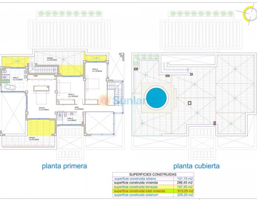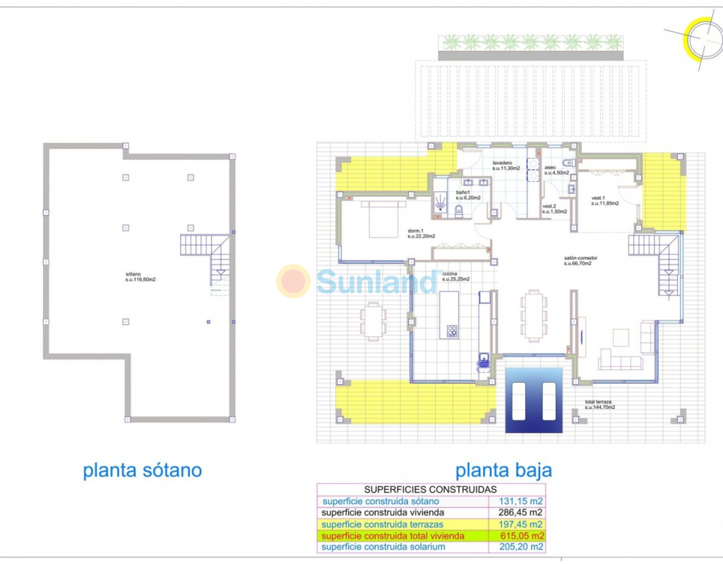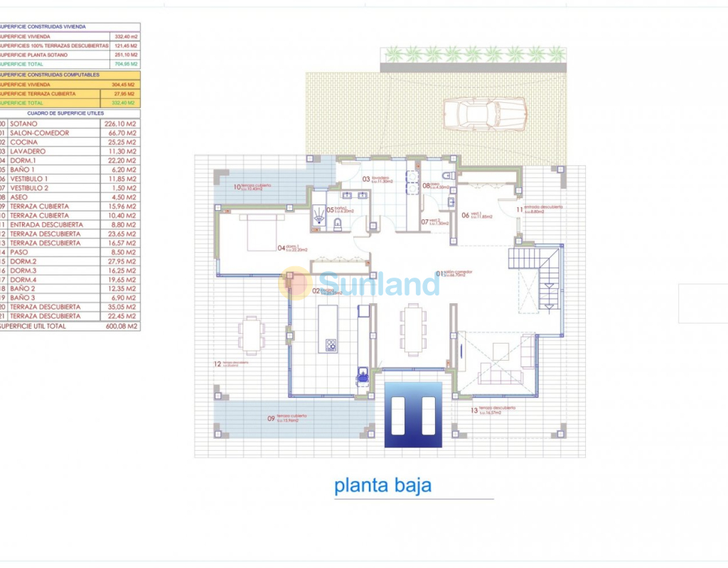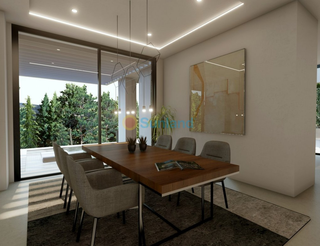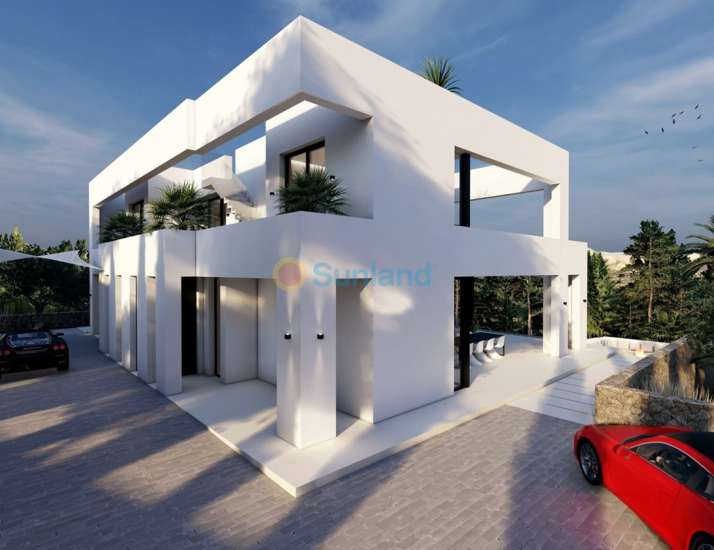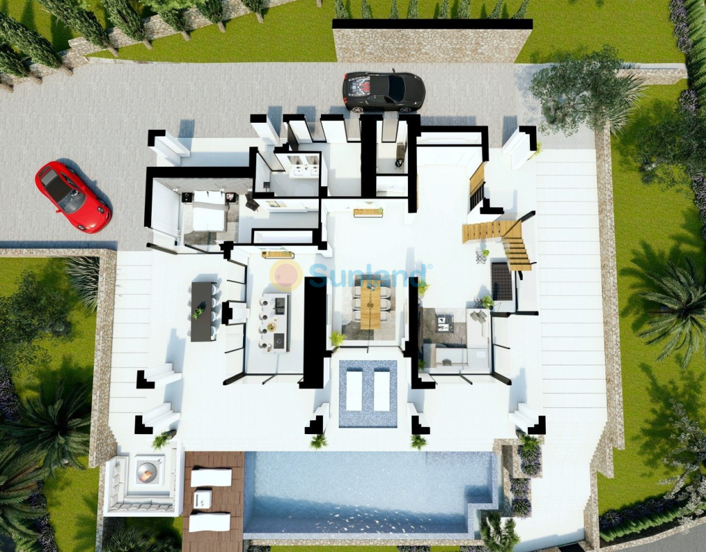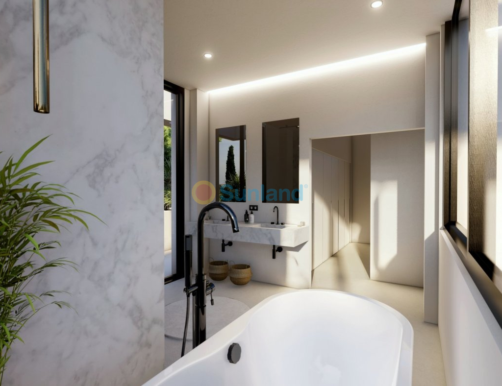 VILLA DE NUEVA CONSTRUCCIÓN EN BENNISA Villa de lujo de nueva construcción en venta en Benissa, Costa Blanca. Villa de lujo en Benissa, arquitectura moderna con piscina infinita 13x4,5m. Esta villa está construida en una gran parcela plana con vistas al mar. Tiene 4 dormitorios y 4 baños, solarium de 197m2, sótano de 205m2. También dispone de parking exterior para 2 vehículos, con pavimento de hormigón impreso, cubierto con un toldo de vela de diseño. Desde el parking se accede a la planta baja a través de una puerta de entrada a la vivienda con cristal lateral fijo de seguridad. De ahí pasamos al gran salón con doble altura en el que se encuentra la escalera de diseño de viga de acero, con peldaños de madera flotantes y barandilla de cristal que da acceso a la primera planta. En la planta baja hay un aseo de invitados, un gran lavadero con acceso a la terraza exterior, un dormitorio con armarios empotrados y baño en suite y una gran cocina cerrada. Toda la planta baja tiene ventanas de suelo a techo que dan mucha luz y acceso a grandes terrazas y a la piscina. En la primera planta hay 3 dormitorios y 2 baños, todos con acceso a terrazas, una de ellas con escalera exterior que lleva al solarium de 197m2. Todos los dormitorios tienen armarios empotrados. Desde todas las habitaciones de la primera planta se accede a una gran terraza y jardín con espectaculares vistas y piscina infinita, así como a una zona chill out con chimenea exterior en el jardín. El sótano tiene una gran zona diáfana donde se puede construir una sala de cine, gimnasio, etc. En el equipamiento de esta villa destacamos las últimas tecnologías instaladas en toda la casa. Como el sistema de domótica controlado por voz y desde la APP del móvil para el sistema de alarma. Instalación completa de conductos de aire acondicionado. Todos los mecanismos necesarios para la instalación de la climatización por zonas, generada por la tecnología del aire, en la planta baja y en la planta piso. Posibilidad de conectar Airzone con el sistema inteligente de la vivienda y con Alexa. Instalación de suelo radiante eléctrico en planta baja y primera. Sistema de ventilación mecánica en baños y cocina, renovación de aire y extracción de humos. Generación de agua caliente sanitaria mediante sistema de Aerotermia, en unidades compactas. Pavimento de gres porcelánico en todo el interior de la vivienda. En las zonas húmedas, como los suelos de las duchas, los mismos serán del tipo antideslizante. Asimismo, se colocarán baldosas antideslizantes en exteriores y solarium. En la cocina, isla y encimera acabadas en Silestone en tono gris, con panel de cristal en la zona frontal de la encimera en tonos a juego. Cocina totalmente equipada de primera marca Küchenhouse, Parcélanos o similar. Baños totalmente equipados con grifería de alta calidad. Video portero. Instalación de iluminación interior con halógenos LED integrados, iluminación indirecta con barras LED empotradas en techos y marcos, en pasillos y otras estancias. Conexiones preparadas para la instalación de lámparas colgantes en salón y cocina. Iluminación exterior perimetral consistente en apliques LED de diseño en fachada exterior y aparcamiento, e iluminación de suelo en zonas de terraza y piscina. Paisajismo compuesto por zonas de césped natural y plantas autóctonas de la zona (olivos, palmeras, naranjos, limoneros...). Vallado de la parcela con muro de bloque revestido de mampostería de piedra seca. La villa se encuentra en una de las zonas residenciales más bonitas de la Costa Blanca. Las localidades de Calpe, Benissa y Moraira ofrecen un litoral extraordinariamente atractivo y de gran interés paisajístico y ecológico, con una costa accidentada con numerosas playas y calas escondidas. Benissa se encuentra entre Valencia y la ciudad de Alicante. El aeropuerto de Manises en Valencia está a una hora y el de L'Altet en Alicante a 50 minutos en coche. Ambos aeropuertos son importantes aeropuertos internacionales a los que llegan un gran número de compañías aéreas de bajo coste.