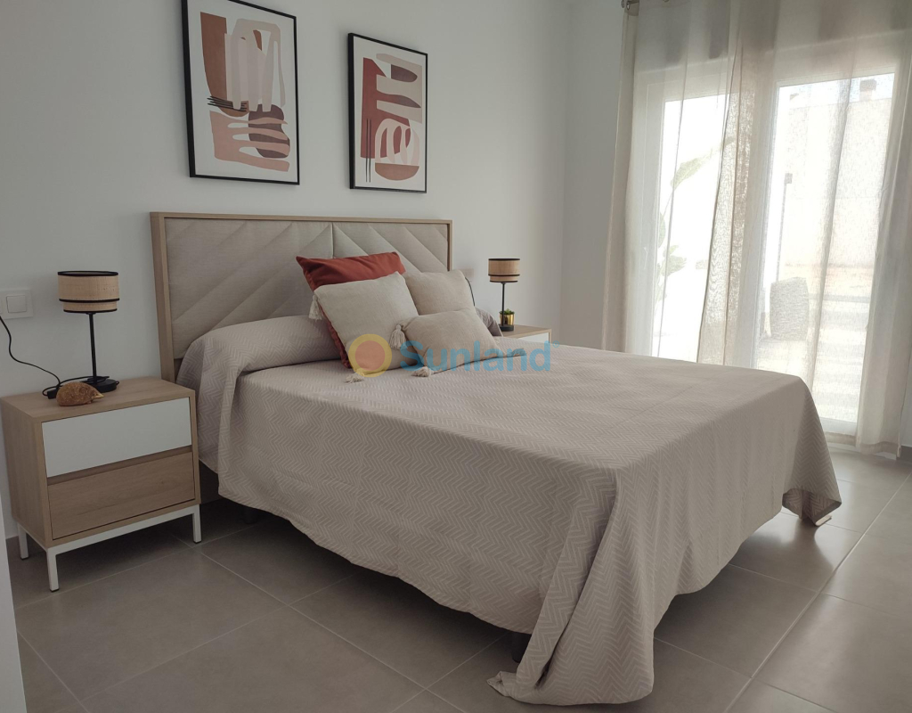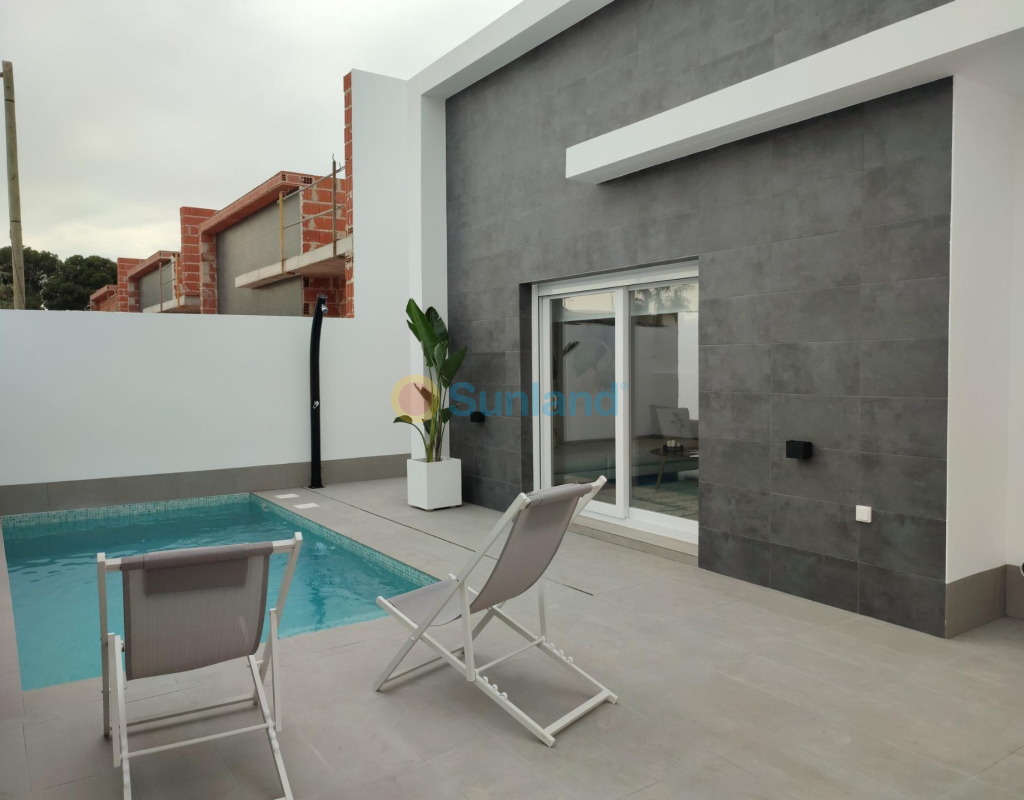 VILLAS DE OBRA NUEVA EN BALSICAS, MURCIA El residencial de nueva construcción dispone de 6 villas unifamiliares de una sola planta, con zona de terrazas, piscina privada, aparcamiento en la parcela y solarium con cocina de verano, para disfrutar de todas las horas de sol todos los días del año. Cada vivienda dispone de 3 dormitorios y 2 baños completos. La propiedad ha sido diseñada con un estilo contemporáneo y un concepto abierto, con una cocina totalmente equipada y un salón-comedor. La propiedad cumplirá con los más altos estándares y estará equipada con: Cocina completamente amueblada y equipada con horno, frigorífico y lavavajillas integrados, placa de cocción y campana extractora. Isla de trabajo en la cocina. Iluminación: en el interior de la vivienda (comedor, cocina, pasillos y baños), así como en las zonas exteriores. Armarios forrados con cajones. Cuartos de baño totalmente equipados con inodoro, mueble de baño, espejo y ducha con mamparas. Preinstalación de aire acondicionado por conductos. Solarium con cocina de verano, con preinstalación de electrodomésticos y puertas correderas. Piscina privada con ducha exterior. Plaza de aparcamiento en la parcela. Balsicas es un lugar perfecto para los amantes del golf y también para todo aquel que disfrute de los espacios verdes como lugares de ocio, belleza y tranquilidad. Su estratégica ubicación hace que la familia que decida vivir en este complejo tenga a su alcance todo lo que cualquier persona puede desear: un clima donde el sol brilla casi todo el año, playas cercanas, el Mar Menor y sus lodos naturales. con poderes curativos demostrados. Complejo situado a 20 minutos del aeropuerto de Murcia - Corvera y a 1 hora del aeropuerto de Alicante.