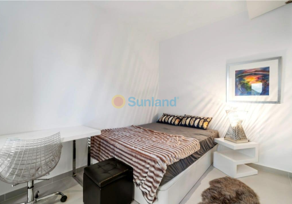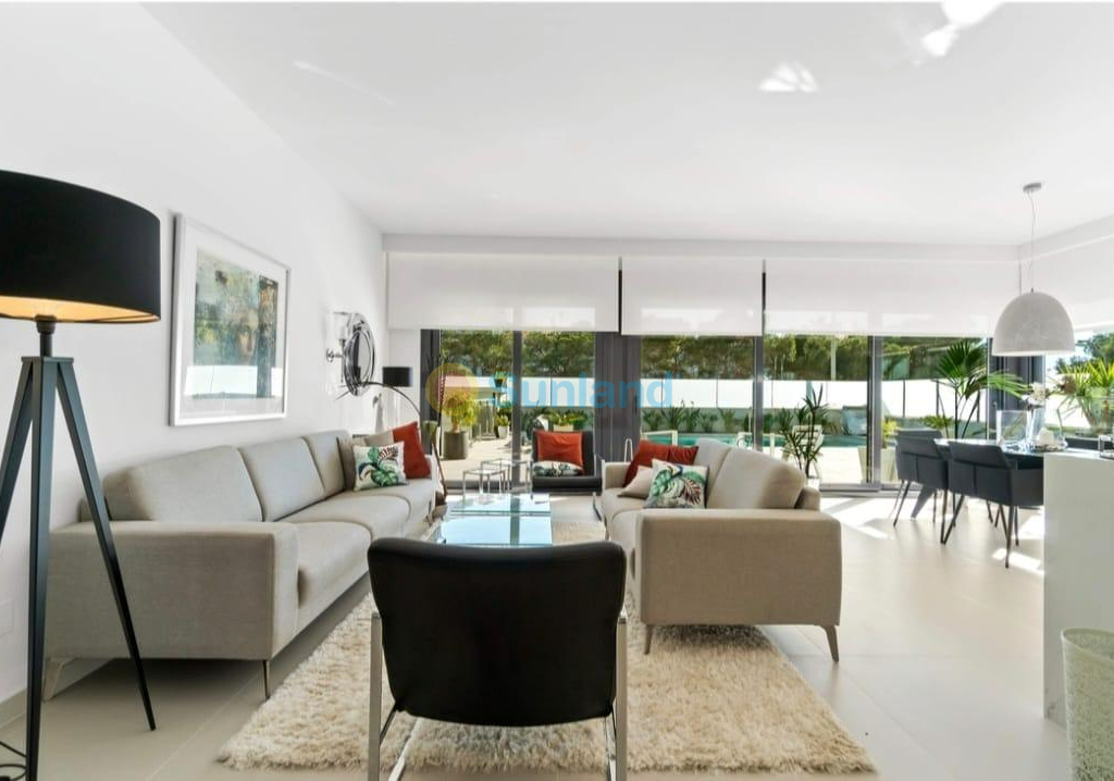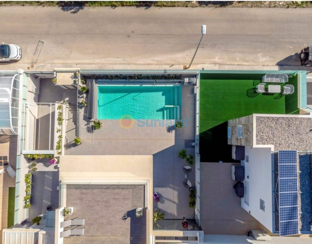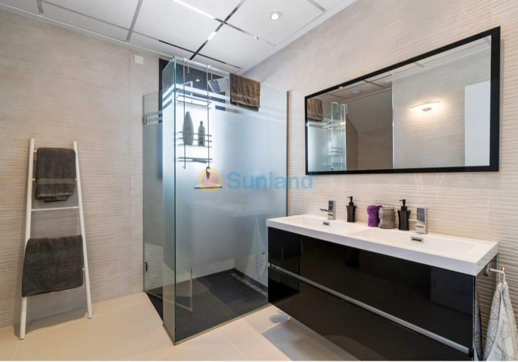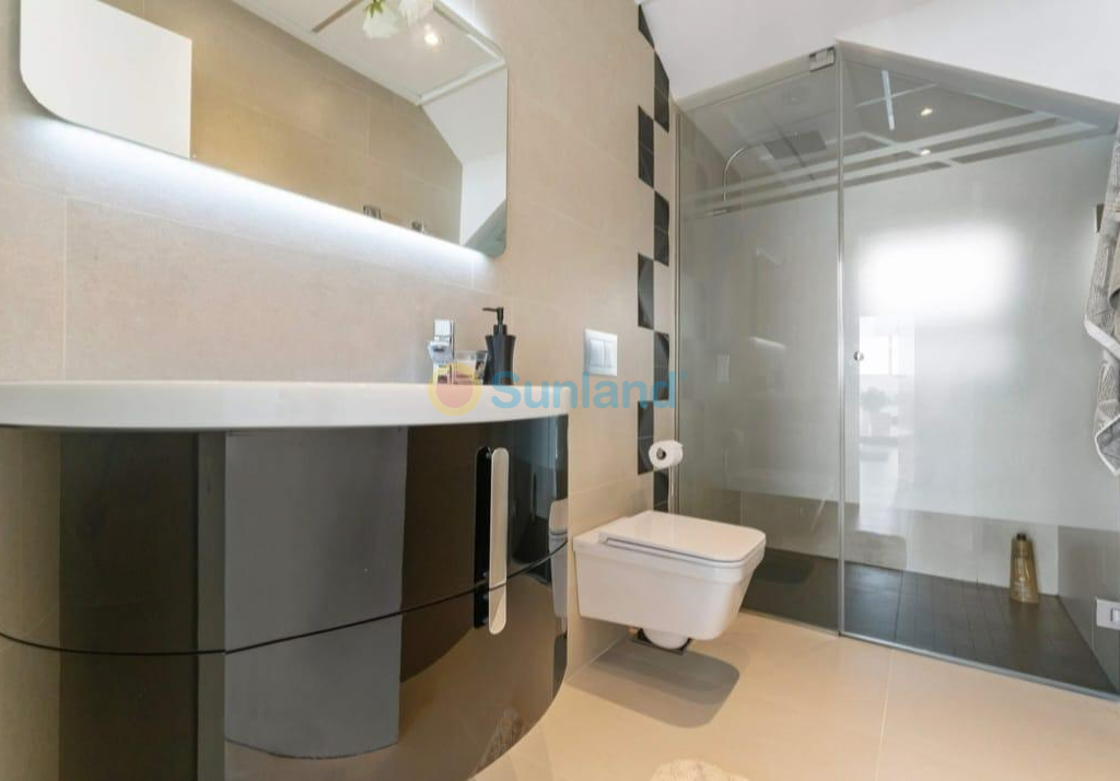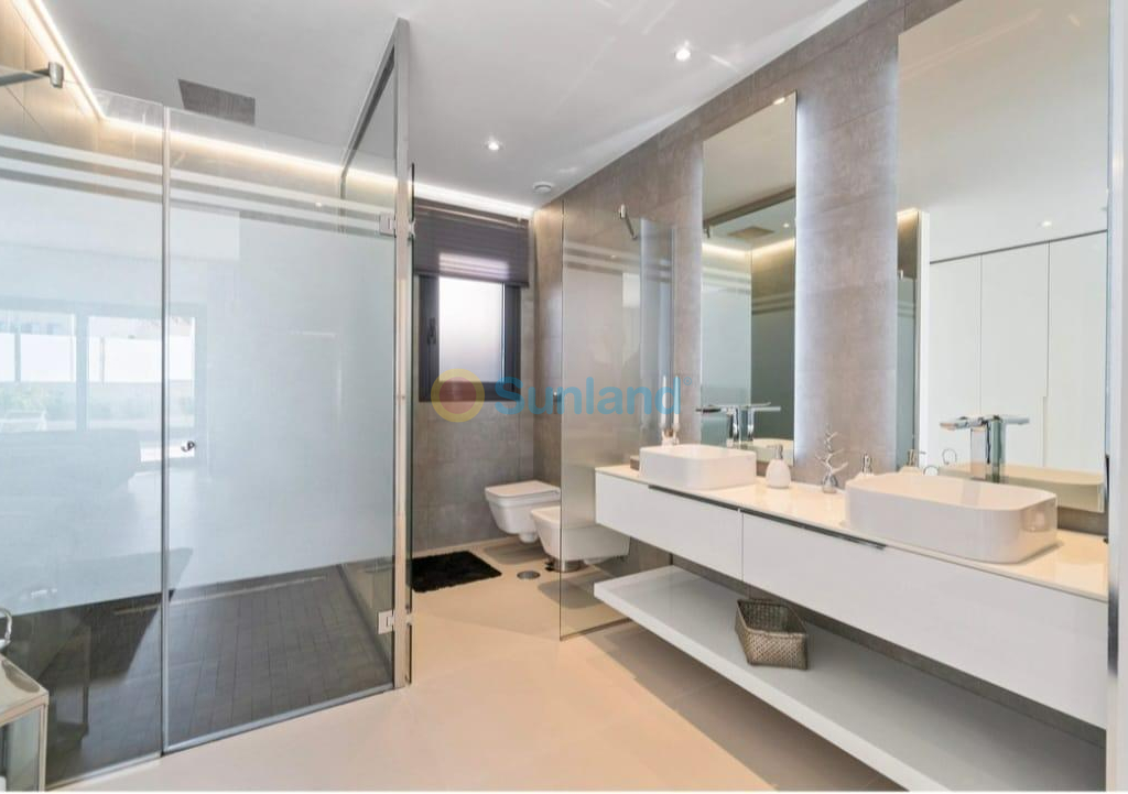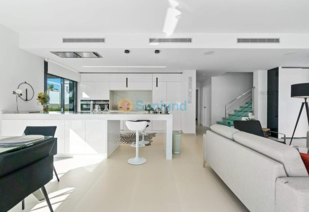 Campoamor, Chalet moderno de lujo con una parcela de 479 m2 y una vivienda de 234 m2 con 3 dormitorios ( 2 de los cuales en la planta baja), 3 baños, amplio salón comedor, cocina con su isla, gran terraza, piscina privada, solarium con zona acristalada y jacuzzi con vistas al mar, zona de barbacoa, se vende amueblada, con plaza de parking en la parcela y esta andando a la playa de aguamarina.. .