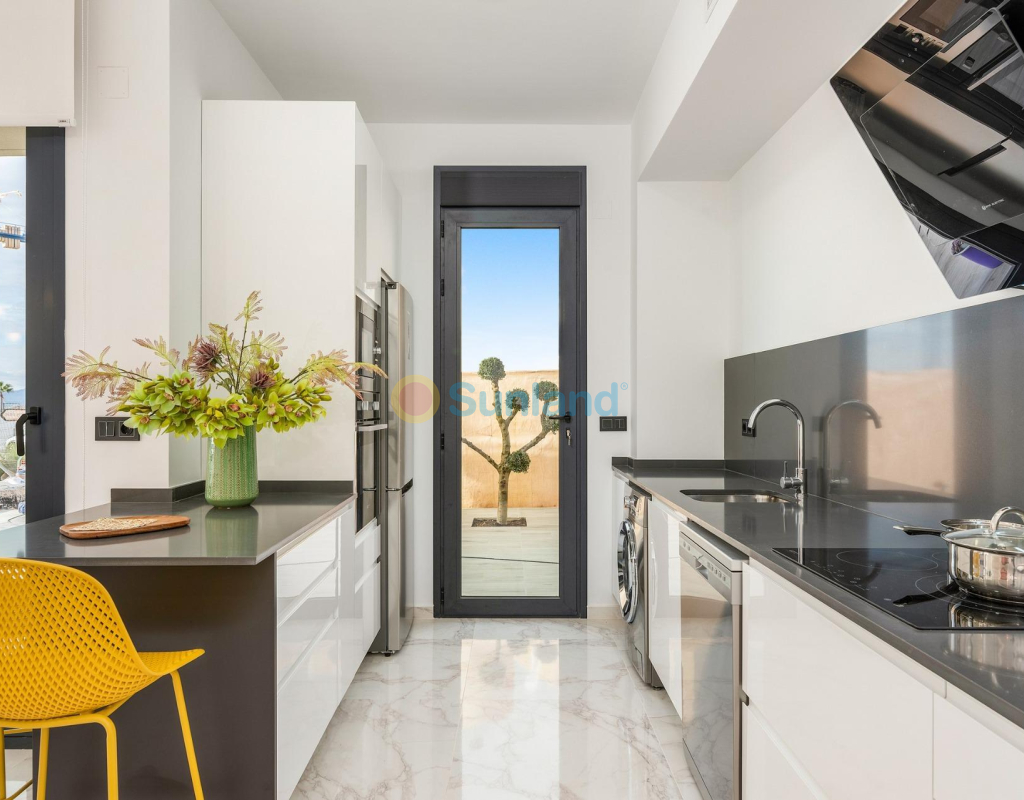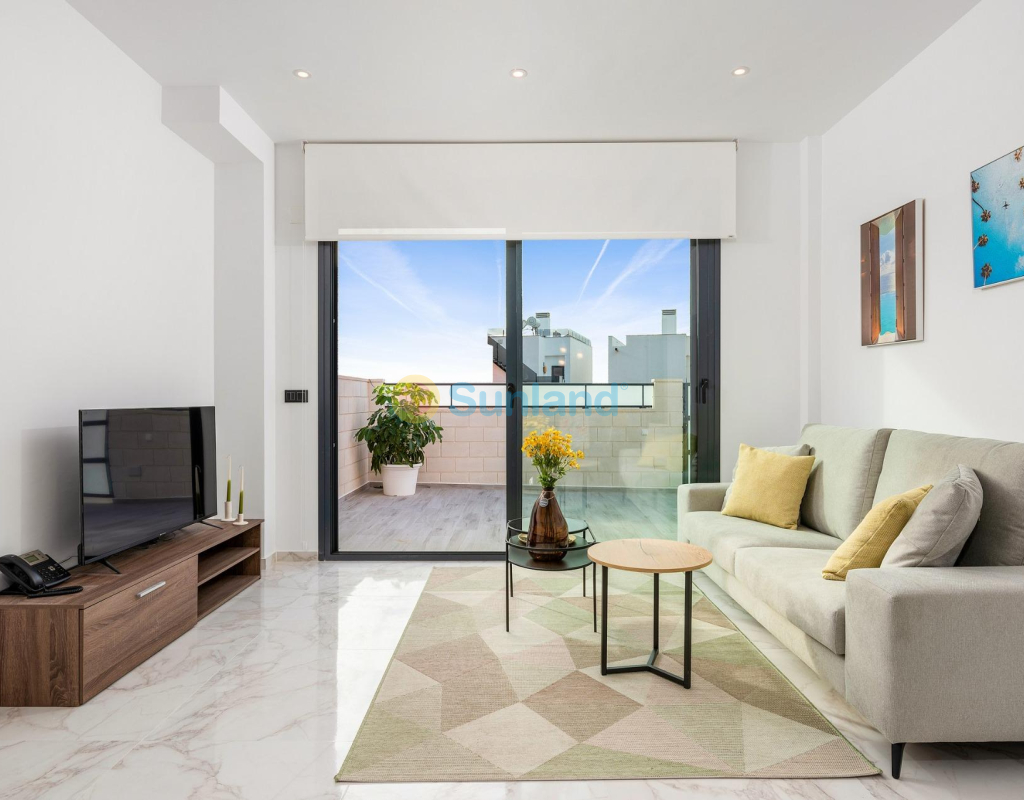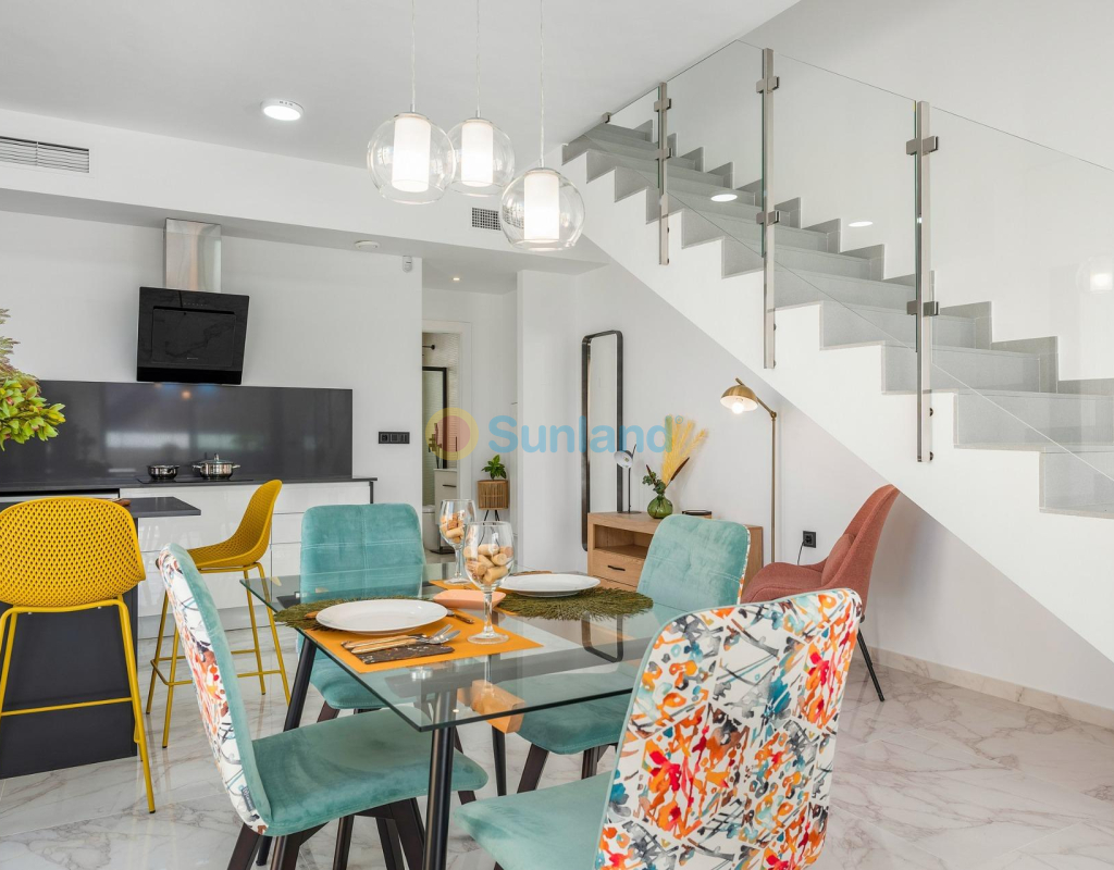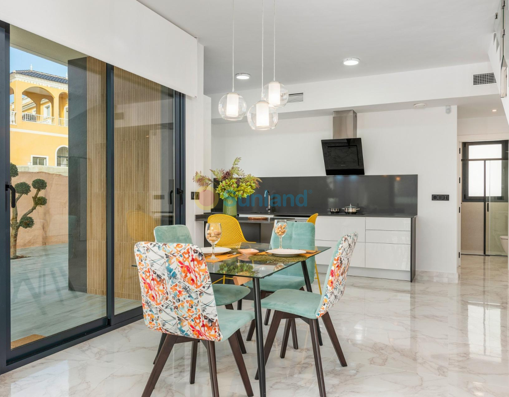 PAREADO DE OBRA NUEVA EN BENIJÓFAR CON PISCINA PRIVADA Pareado con 3 dormitorios, 3 cuartos de baños, cocina abierta al salon-comedor, parcela de 192 m2 con piscina privada y terraza en planta primera de 16 m2 con vistas despejadas. Posibilidad de habilitar un solárium privado de 46 m2 con un coste extra. Benijófar se encuentra en el margen derecho del río Segura, está bien comunicado con Orihuela y Guardamar del Segura por la carretera que te conducirá a sus estupendas playas de arena fina, a menos de 8km de distancia. Hay varios campos de golf en los alrededores (a menos de 4 km). También está comunicado mediante una carretera comarcal con Torrevieja. A 42 km. de Alicante y a 85 km. de Benidorm.