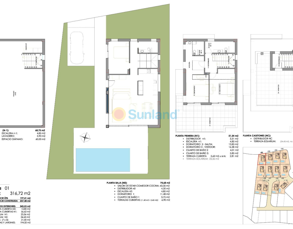 VILLAS NEUVES A SAN MIGUEL DE SALINAS Nouveau complexe résidentiel exclusif offrant des villas de luxe avec des parcelles à partir de 300 m2 et une impressionnante piscine de 8x3,5m. Sous-sol et solarium en option. Ces maisons modernes offrent 3 chambres à coucher, 3 salles de bains, un salon-salle à manger spacieux et une cuisine entièrement équipée, ainsi qu'un jardin, et une piscine. Les villas se distinguent par leurs espaces lumineux et ouverts, qui offrent des vues exceptionnelles et un agencement qui optimise au maximum chaque coin de la maison. Les finitions et les intérieurs de haute qualité se fondent dans un concept de luxe contemporain, alliant l'élégance, le confort et le raffinement souhaités par les acheteurs. La conception et la construction de ce complexe résidentiel ont pris en compte des aspects fondamentaux tels que l'efficacité énergétique et l'utilisation de matériaux de première qualité, garantissant ainsi un mode de vie durable et pérenne. San Miguel de Salinas est une municipalité de la Communauté valencienne, en Espagne. Elle est située au sud de la province d'Alicante, dans la région de Vega Baja del Segura, près de la région de Murcie. San Miguel de Salinas se trouve à proximité des terrains de golf de Las Colinas et de Campoamor et offre une vue exceptionnelle sur les lagunes de Torrevieja et de La Mata. L'aéroport d'Alicante se trouve à 35 minutes de route et l'aéroport de Murcie Corvera à environ 1 heure de route.