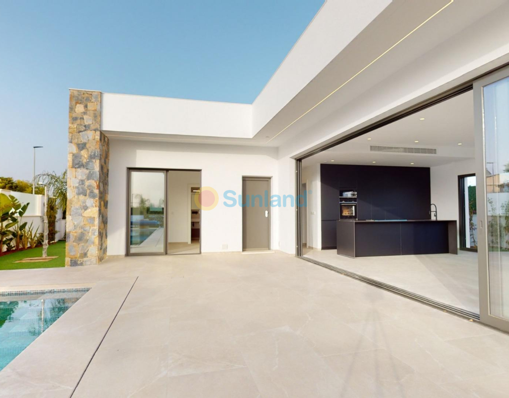VILLAS NEUVES À LOS ALCAZARES Nouvelle construction résidentielle de villas et de maisons de ville à Serena Golf, Los Alcazares. Les villas modernes ont 3 chambres à coucher, 3 salles de bains, cuisine ouverte avec coin salon, terrasse, solarium, jardin privé avec piscine et place de parking. Cuisine entièrement équipée en blanc brillant ou couleur bois. Quartz technologique. Évier en acier inoxydable. Plaque de cuisson à induction avec hotte intégrée, four, micro-ondes, lave-linge, réfrigérateur intégré, lave-vaisselle intégré. Climatisation : Installation complète avec gaines FUJITSU. Piscine : Dimensions en fonction de la propriété, avec marches, carreaux de céramique bleus et éclairage LED blanc. Pré-installation pour pompe à chaleur. La Serena Golf est située dans la municipalité de Los Alcázares, sur une superficie de 60 hectares au bord de la Mar Menor, un environnement naturel parfait pour profiter du meilleur climat d'Europe. Los Alcázares se trouve dans la région de Murcie, à proximité des plages de Mar Menor, où l'on peut pratiquer divers sports nautiques, et est entouré de plusieurs terrains de golf. La ville de Cartagena se trouve à moins de 15 minutes en voiture et à 22 km de l'aéroport de Murcie, ce qui permet d'accéder à une vaste offre culturelle, gastronomique et sportive.