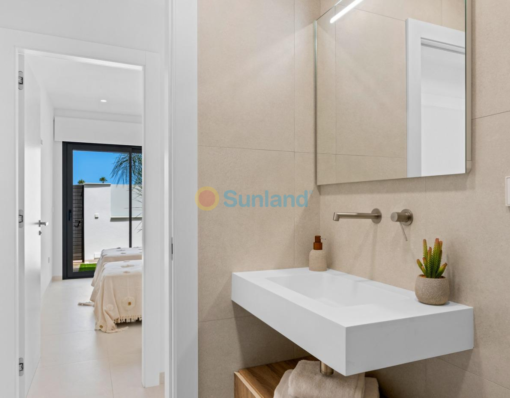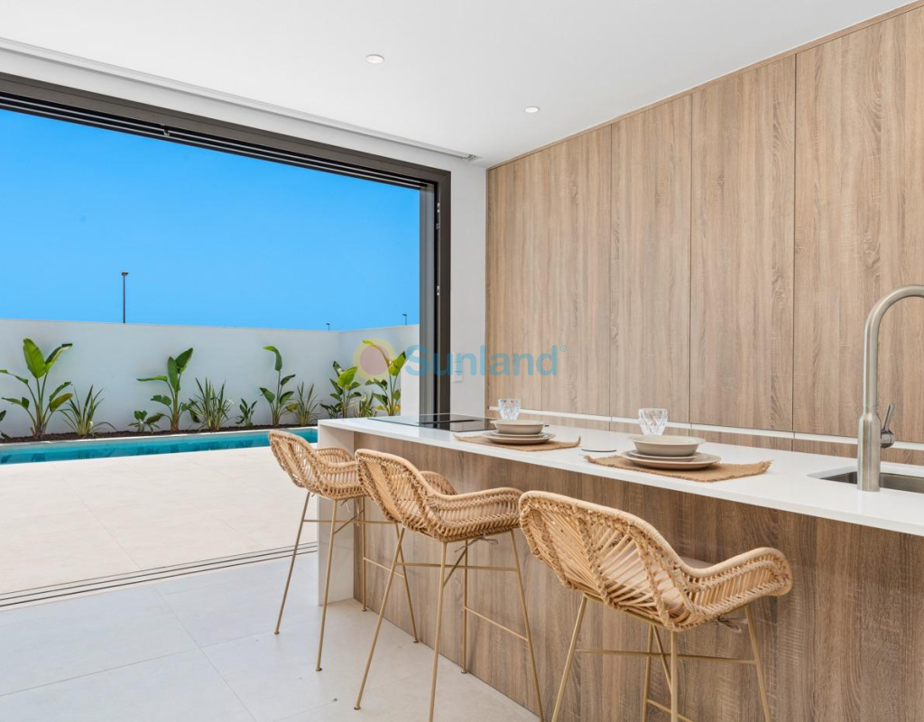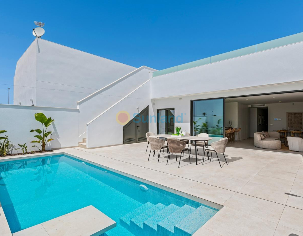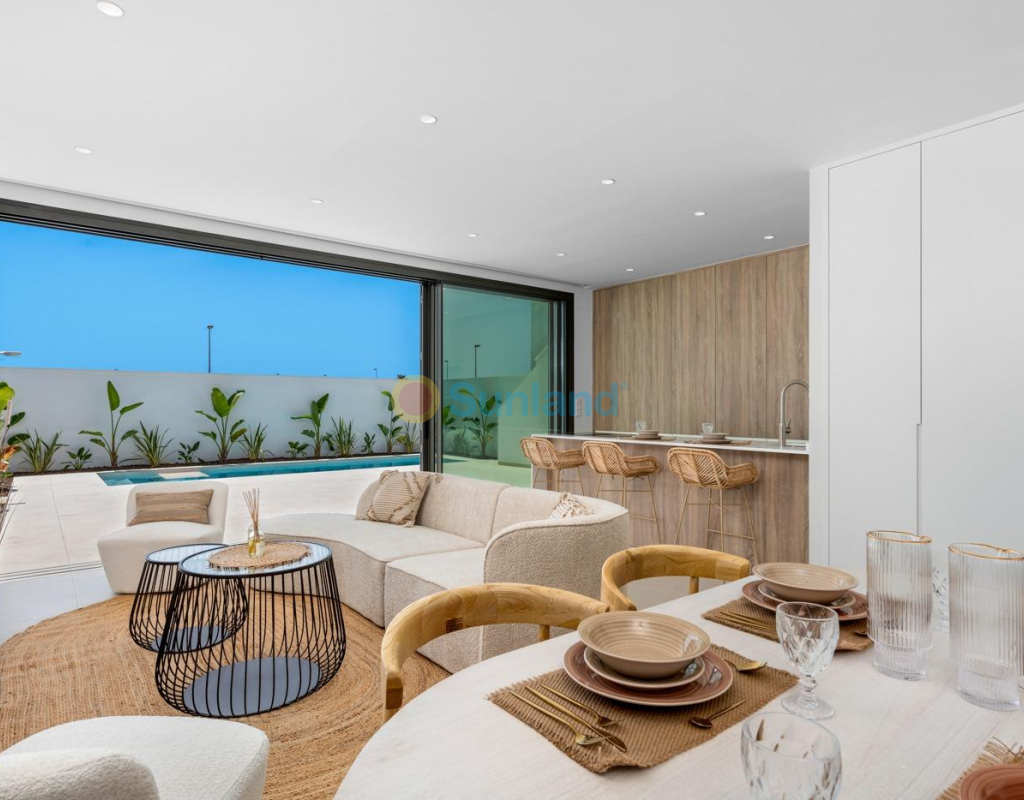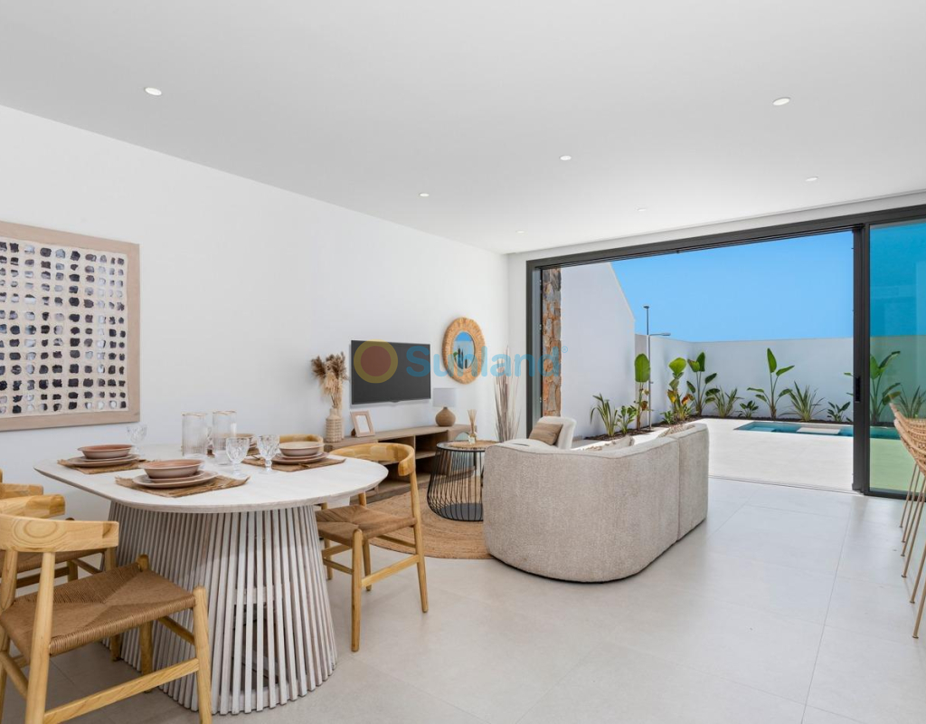 NOUVELLES CONSTRUCTIONS DE MAISONS DE VILLE À LOS ALCAZARES Nouvelle construction résidentielle de villas et de maisons de ville à Serena Golf, Los Alcazares. Maisons de ville modernes avec 3 chambres, 2 salles de bains, cuisine ouverte sur le séjour, terrasse, solarium, jardin privé avec piscine et place de parking. Cuisine entièrement équipée en blanc brillant ou couleur bois. Quartz technologique. Évier en acier inoxydable. Plaque de cuisson à induction avec hotte intégrée, four, micro-ondes, lave-linge, réfrigérateur intégré, lave-vaisselle intégré. Climatisation : Installation complète avec gaines FUJITSU. Piscine : Dimensions en fonction de la propriété, avec marches, carreaux de céramique bleus et éclairage LED blanc. Pré-installation pour pompe à chaleur. La Serena Golf est située dans la municipalité de Los Alcázares, sur une superficie de 60 hectares au bord de la Mar Menor, un environnement naturel parfait pour profiter du meilleur climat d'Europe. Los Alcázares se trouve dans la région de Murcie, à proximité des plages de Mar Menor, où l'on peut pratiquer divers sports nautiques, et est entouré de plusieurs terrains de golf. La ville de Cartagena se trouve à moins de 15 minutes en voiture et à 22 km de l'aéroport de Murcie, ce qui permet d'accéder à une vaste offre culturelle, gastronomique et sportive.