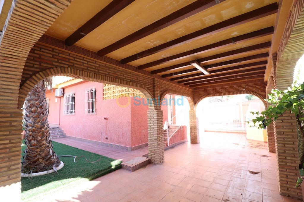 Cabo Roig, Villa individuelle sur terrain de 522 m2 et une orienté sud-est, à seulement 500 mètres de la plage de Cala Capitan, sur deux étages de 276 m2, la maison dispose de 5 chambres, 2 salles de bains complètes, Séjour de 60m2 avec cheminée, grande cuisine indépendante, piscine 8x3 avec coin barbecue, ample terrasse devant la maison, vendu meublée et avec climatisation et chauffage central. 2 places de parking avec pergola.