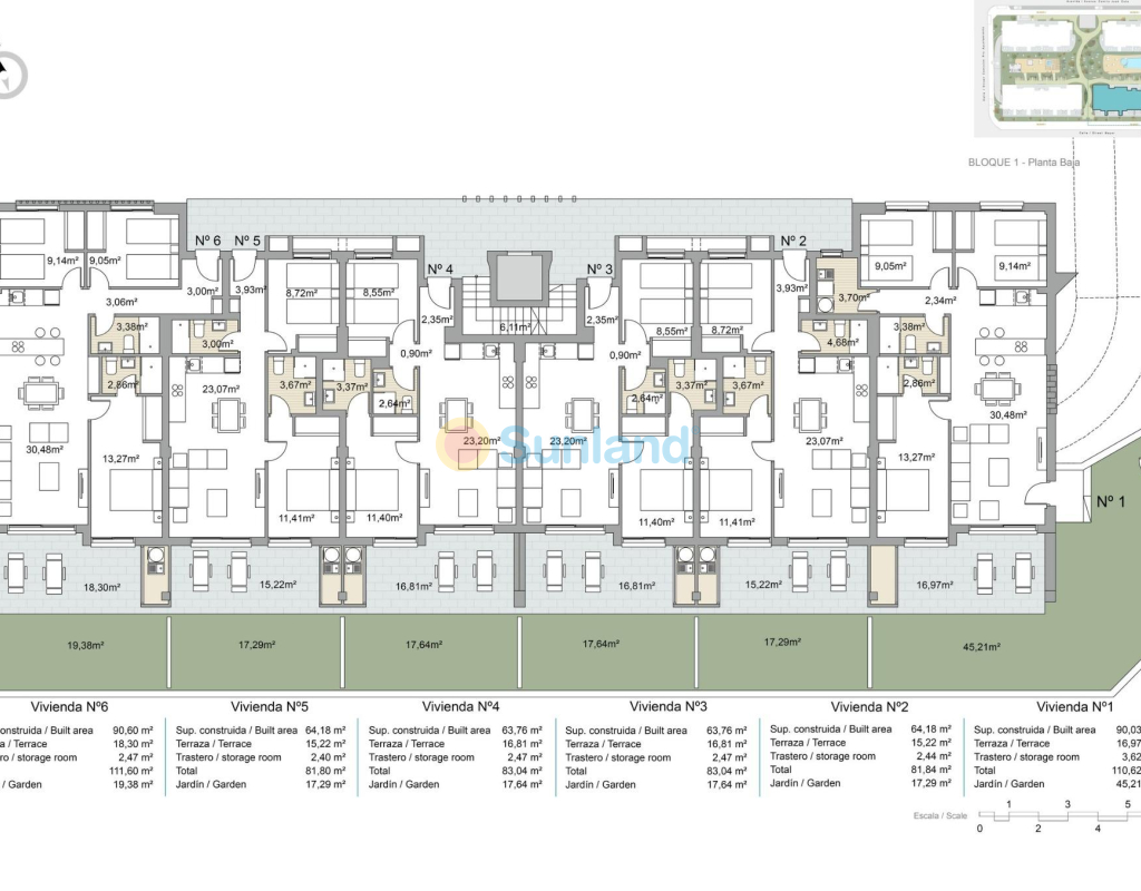 NOUVEAU COMPLEXE RÉSIDENTIEL À PILAR DE LA HORADADA Nouvelle construction résidentielle d'appartements et de penthouses avec des finitions exceptionnelles à Pilar de la Horadada. Les appartements du rez-de-chaussée sont dotés de jardins privés, ceux de l'étage intermédiaire de grandes terrasses et les penthouses du dernier étage de solariums privés. La cuisine est livrée entièrement meublée, laissant suffisamment d'espace pour que vous puissiez choisir les appareils électroménagers selon vos préférences. Seuls des matériaux nobles ont été utilisés, comme les menuiseries intérieures entièrement en bois et les fenêtres extérieures en Climalit/aluminium, idéales tant pour leur design que pour le haut niveau thermo-acoustique qu'elles présentent. Toutes les terrasses sont orientées vers le sud. Portails automatiques dans la résidence, tant pour l'accès des piétons que pour celui des véhicules. L'immeuble est entouré de jardins, il disposera également d'une piscine commune, d'un parking à l'intérieur du complexe et chaque propriété dispose de son propre local de stockage privé. Dans les environs de ce complexe résidentiel, vous trouverez toutes les facilités des transports publics, des écoles, des supermarchés, des centres commerciaux, des terrains de golf et de fantastiques parcs municipaux avec leurs aires de jeux pour enfants. Tout est à portée de main pour que vous puissiez profiter d'un excellent emplacement. Pilar de la Horadada est un village espagnol typique situé dans la partie la plus méridionale de la Costa Blanca. La grande rue principale abrite des supermarchés, de nombreux magasins, des restaurants et des bars, ainsi que de jolies places. Les belles plages de Torre de la Horadada et de Mil Palmeras, avec leur promenade de sable fin, ne sont qu'à 5 minutes. Les aéroports de Corvera (Murcia) et d'Alicante sont respectivement à 40 et 55 minutes.