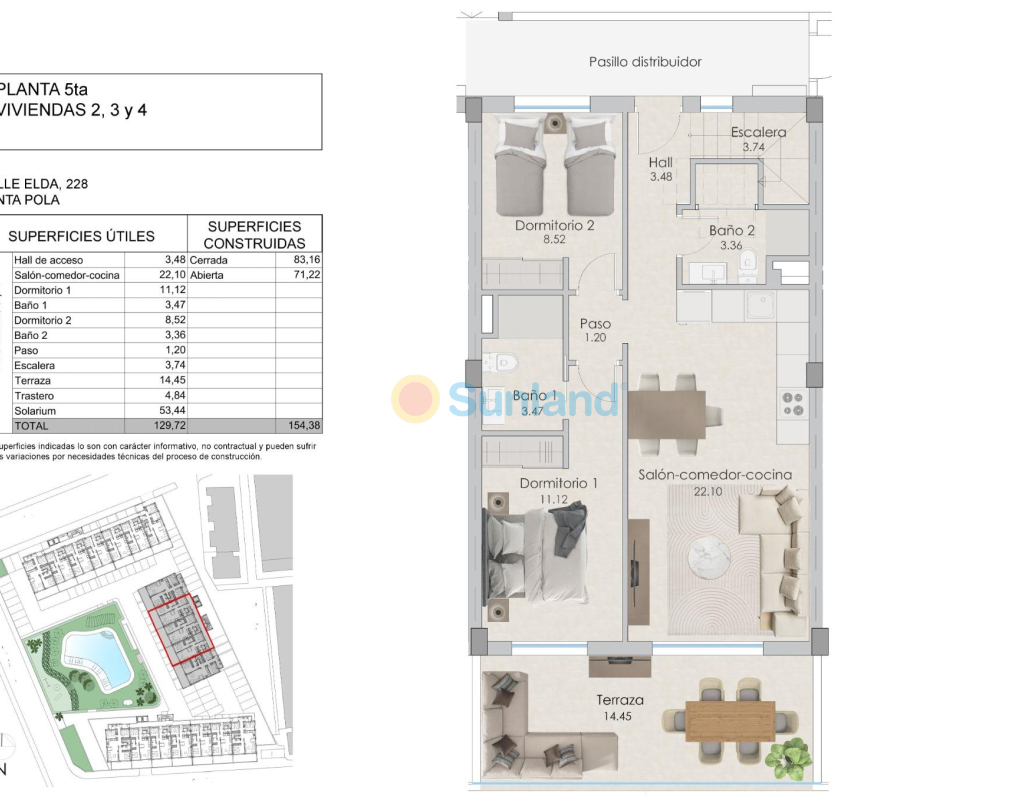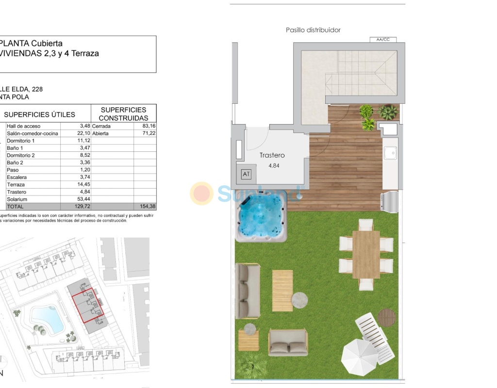 NOUVEAU COMPLEXE RÉSIDENTIEL A SANTA POLA Complexe résidentiel moderne fermé comprenant 3 blocs d'appartements avec de grands espaces communs paysagers comprenant une piscine avec des lits d'eau, une aire de jeux pour les enfants, une pergola et un parking pour les vélos. La résidence dispose d'appartements de 3 et 2 chambres, les deux types comprennent 2 salles de bains complètes, une cuisine ouverte sur le salon, des armoires encastrées, une terrasse et une place de parking. Ils disposent d'un jardin commun, d'une piscine avec entrée de type plage, équipée de douches et d'une grande pergola en bois. Le jardin est aménagé avec des palmiers et de la végétation, le tout éclairé. Dans la partie centrale de la piscine, il y a une zone moins profonde où se trouvent les lits d'eau. La municipalité de Santa Pola est située sur la célèbre Costa Blanca, au sud d'Alicante et dans la région du Bajo Vinalopó. La ville jouit d'une situation géographique enviable, entourée de paysages naturels et d'un microclimat particulier, qui offre un climat doux tout au long de l'année. Son centre urbain est délimité par la forteresse du château et le port à l'est et à l'ouest, et est bordé par le parc naturel de Santa Pola Salinas et la Sierra et le Cabo de Santa Pola, un ancien récif aujourd'hui caractérisé par ses récifs de pins feuillus. Santa Pola se trouve à 21 km d'Alicante, la capitale provinciale dotée d'excellentes infrastructures, et à 15 km de l'aéroport international "Elche-Alicante".