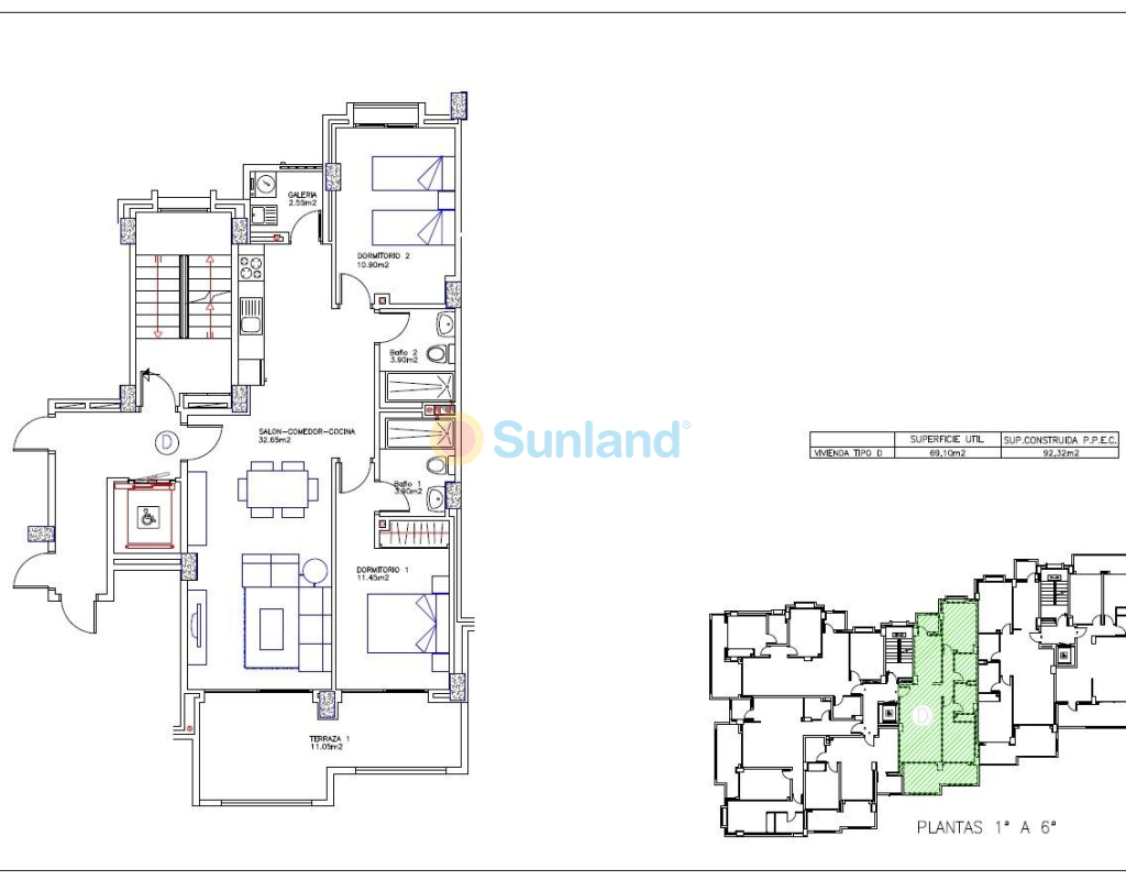 BEL APPARTEMENTS VUE MER A LA MANGA Cette urbanisation est située dans la plus grande zone d'expansion de La Manga. Dans cette nouvelle urbanisation, les maisons ont été conçues pour profiter de chaque coin de la maison, ainsi que du soin apporté au choix des matériaux et de leur conception. Appartements avec porte d'entrée blindée et portes laquées en blanc avec ferrures en acier inoxydable. Stores blancs monoblocs et double vitrage avec chambre à air. Dans la chambre parentale un placard encastré à portes coulissantes, avec une étagère séparatrice en mezzanine, un bar et une commode à trois tiroirs. Cuisine avec meubles hauts et bas, en blanc, poignée de type gola, évier simple avec égouttoir, plaque vitrocéramique, four électrique et hotte aspirante. Pré-installation de la climatisation (froid et chaud) par conduits avec disposition de zonage des pièces. La Manga del Mar Menor est une bande de terre naturelle entourée de deux mers, la Mar Menor et la mer Méditerranée. A cette rareté s'ajoutent les multiples possibilités de loisirs et temps libres, restaurants, supermarchés, centres médicaux, pharmacies, centres de sports nautiques, terrains de golf. La Manga est située sur la côte nord de la Costa Calida et est une destination de vacances populaire pour les touristes. L'étroite bande de terre séparant le lagon chaud et la mer plus froide a un microclimat unique. C'est l'une des régions les plus exotiques d'Espagne. L'aéroport de Corvera est à environ 1 heure de route et l'aéroport d'Alicante à environ 2 heures.