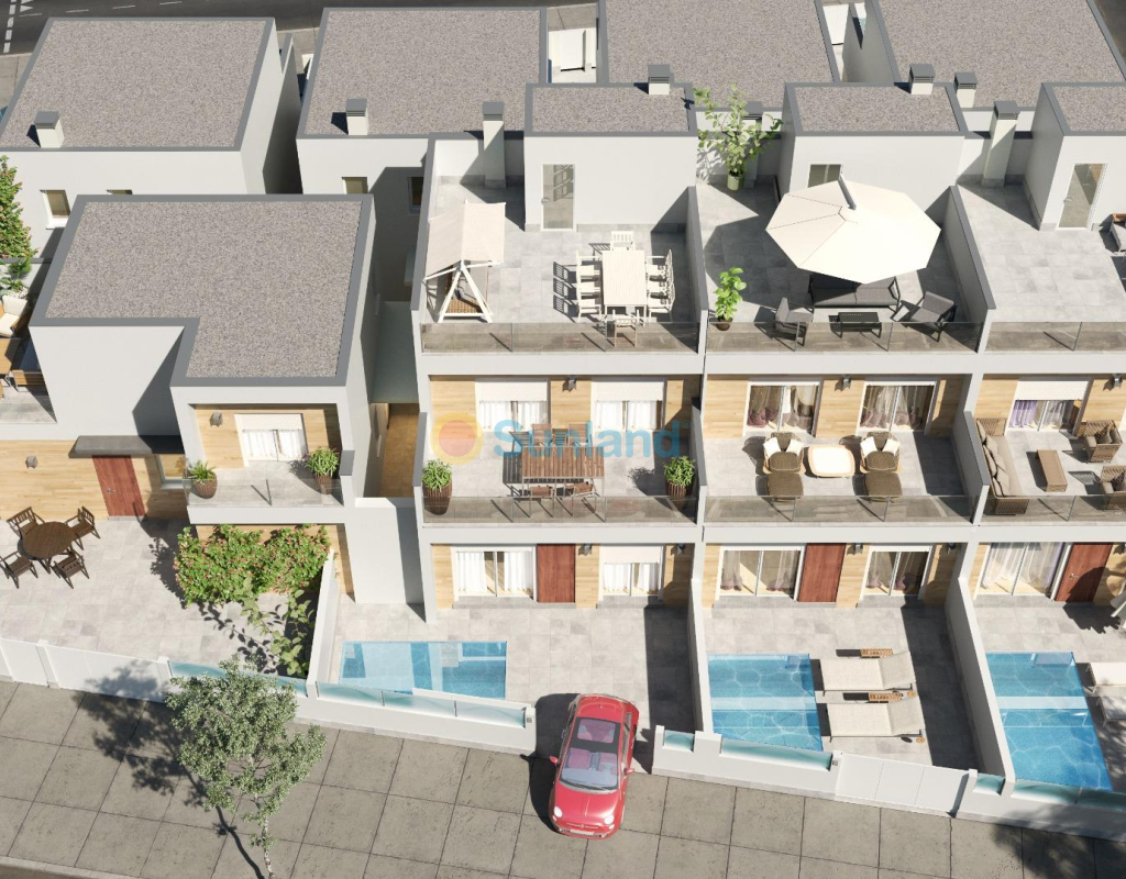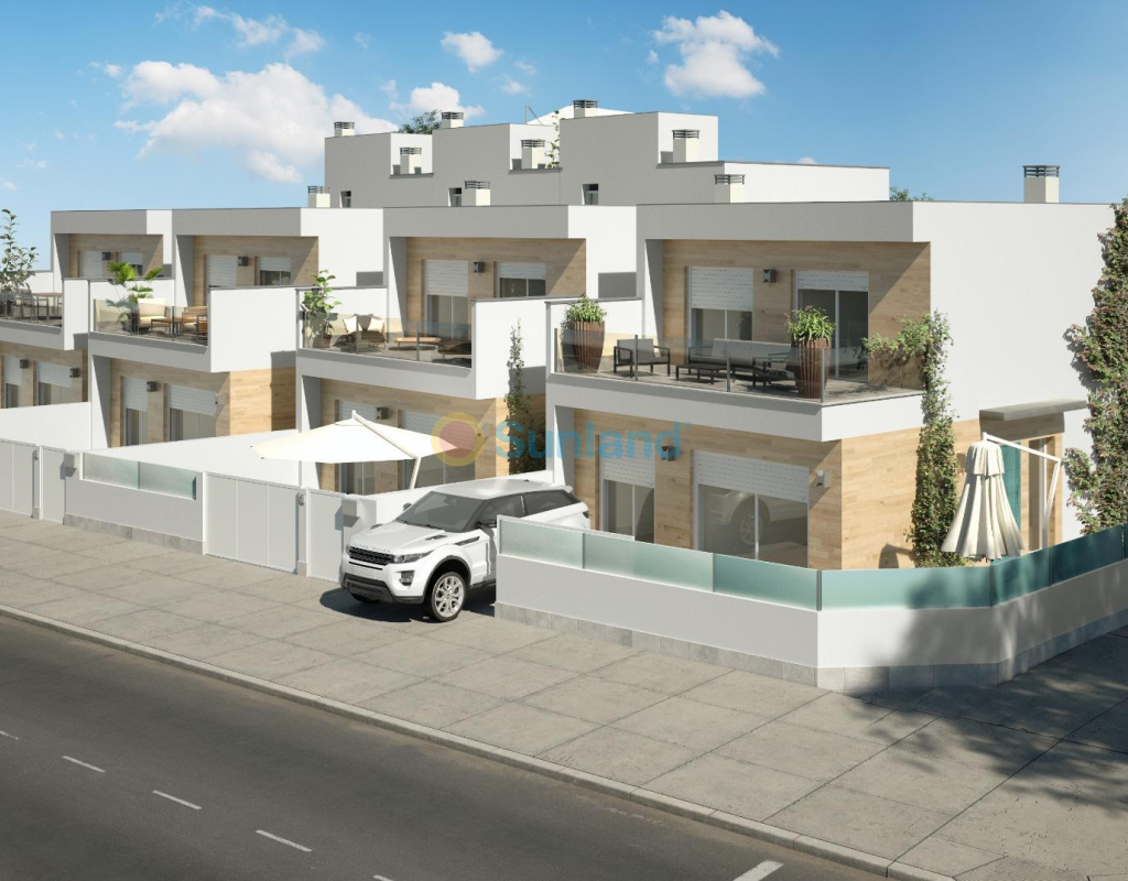 NOUVELLES VILLAS JUMELÉES À SAN PEDRO DEL PINATAR Nouvelle construction de 8 villas indépendantes et semi-détachées à San Pedro Pinatar, toutes avec piscine privée, terrasse, solarium et parking à l'intérieur de la parcelle. Chaque propriété dispose de 3 chambres à coucher et de 2 salles de bains complètes, d'une cuisine ouverte sur un salon spacieux et d'armoires encastrées. La situation privilégiée de San Pedro del Pinatar sur la Mar Menor et le littoral méditerranéen attire les amateurs de voile et de sports nautiques, avec un port de plaisance et des clubs de voile, tandis que les plages et les bains de boue naturels attirent ceux qui recherchent le soleil, la mer et le sable en toute sécurité. San Pedro del Pinatar dispose d'une communauté bien établie et offre une excellente gamme d'activités, notamment une piscine couverte et des installations sportives, ainsi qu'un programme d'activités sociales tout au long de l'année sur l'agréable plage. Les bienfaits des bains de boue, qui sont une source d'inspiration pour les touristes, sont très appréciés. Les bienfaits des bains de boue, typiques de la région, ou les eaux calmes de la Mar Menor, ont favorisé la croissance de Lo Pagán, qui dispose actuellement de toutes sortes de commodités. De plus, il bénéficie d'un excellent emplacement, à seulement 5 minutes du Comercial Center Dos Mares.