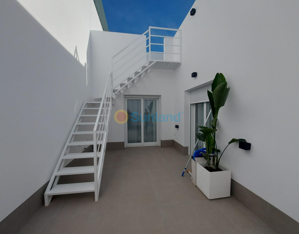 VILLAS JUMELÉES NEUVES À ROLDAN Villas jumelées neuves à Roldan, Torre Pacheco. Villas modernes construites sur un étage, avec 2 ou 3 chambres, 2 salles de bains, cuisine ouverte sur le salon, armoires encastrées, solarium privé. Toutes les villas disposent d'un jardin privé avec piscine et parking. Roldan est une ville traditionnelle avec toutes les commodités locales dont vous aurez besoin : supermarchés, restaurants, bars, clinique, pharmacie, poste de police, station-service, mécaniciens, dentistes, médecins et bien plus encore. Les stations de golf de La Torre et Terrazas sont facilement accessibles, l'aéroport de Corvera est à 15 minutes et les plages de Mar Menor à 20 minutes en voiture.