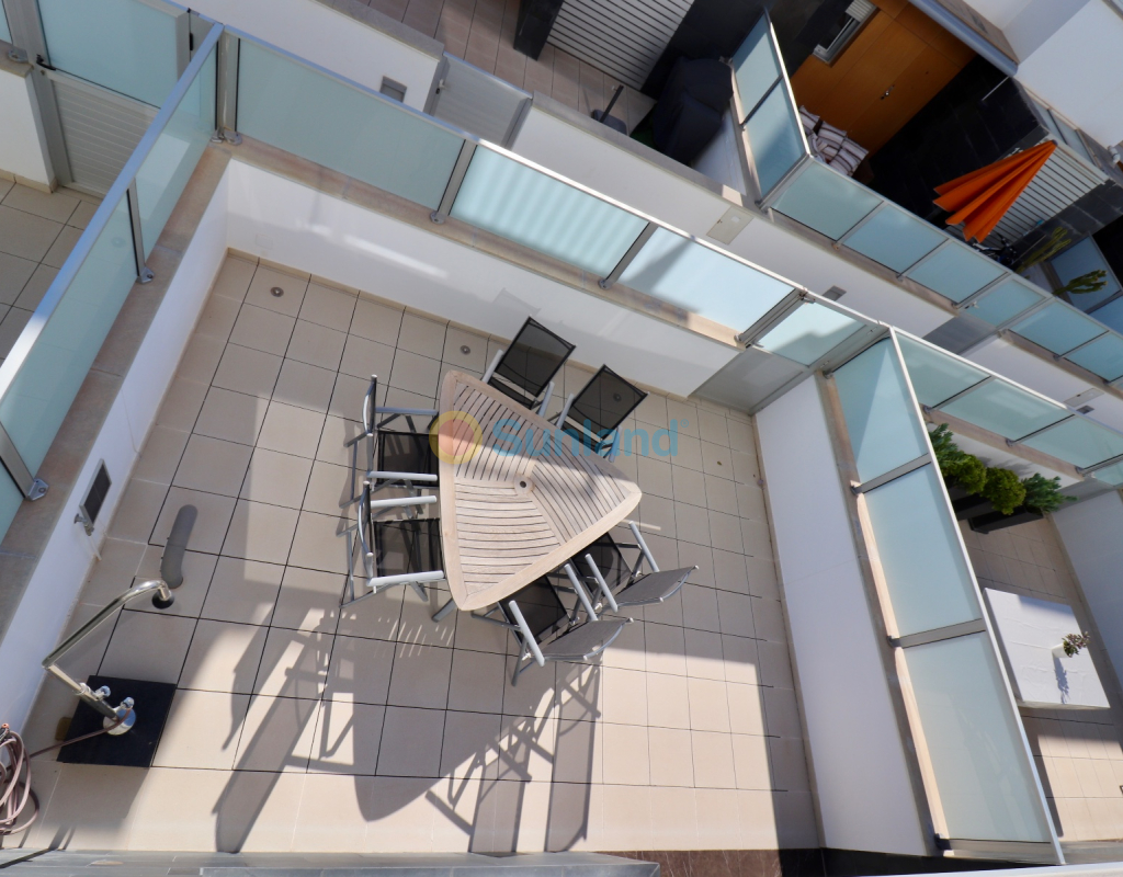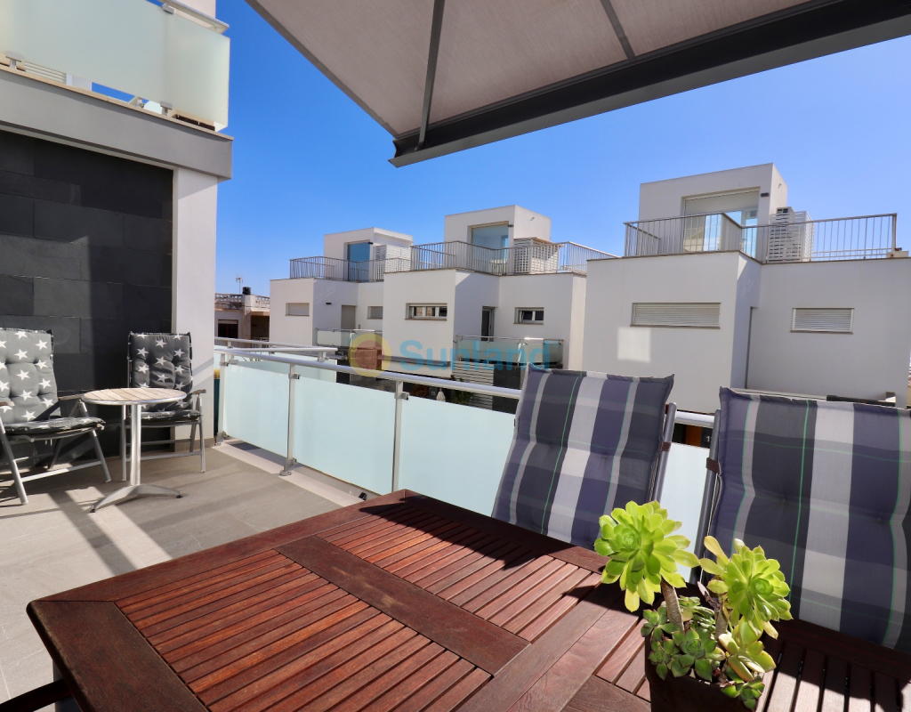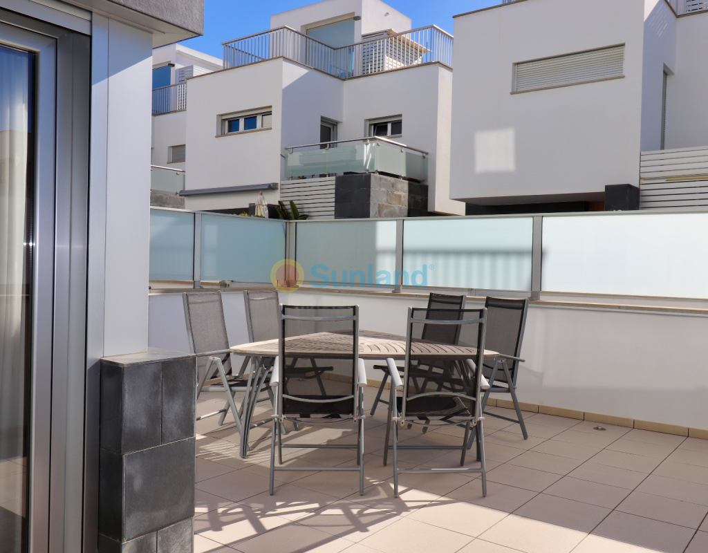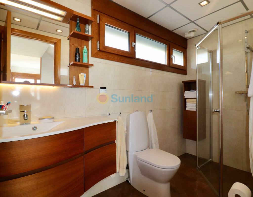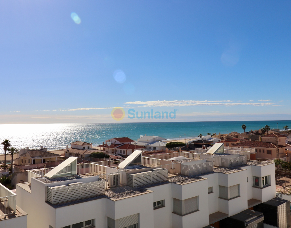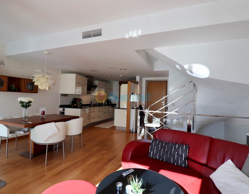 Découvrez cette maison de ville exclusive et unique sur deux niveaux, parfaitement positionnée à proximité des belles plages de Guardamar del Segura. Érigée par un constructeur renommé à la réputation de qualité irréprochable, cette luxueuse villa s'étend sur trois niveaux et offre une gamme de prestations haut de gamme. Entrez dans la propriété et soyez accueilli par un salon spacieux et une cuisine avec un plan d'étage ouvert et contemporain. La cuisine, équipée d'appareils Miele & Liebherr de première classe, allie élégance et fonctionnalité pour une expérience culinaire inégalée. Au premier étage, il y a une chambre aux dimensions généreuses, dotée d'une salle de bain privée et d'un dressing, ainsi qu'un balcon confortable avec une vue pittoresque. Un escalier moderne mène au toit-terrasse luxuriant, où vous pourrez profiter d'une vue imprenable sur la mer, idéale pour bronzer, barbecues et moments de détente. Descendez au niveau intermédiaire et découvrez deux autres chambres et une salle de bain, avec accès direct au jardin. Le sous-sol abrite un garage spacieux et un débarras pour un stockage supplémentaire. La maison est équipée d'une large gamme d'équipements, dont une buanderie séparée avec lave-linge/sèche-linge, des volets électriques, un système d'alarme avancé et un chauffage au sol à eau dans toute la maison. Profitez également du confort des parquets en chêne, des fenêtres économes en énergie, des stores électriques et des doubles filtres de purification d'eau. De plus, la piscine commune à côté de la maison vous invite à vous détendre et à passer du temps libre. Essentiellement, cette maison de ville ultramoderne avec une touche de sophistication offre la combinaison parfaite de style, de confort et de fonctionnalité. Entièrement meublée, cette maison attend un nouveau propriétaire qui souhaite faire passer son style de vie au niveau supérieur. Bienvenue à la maison.