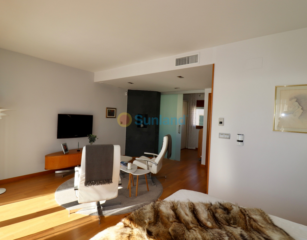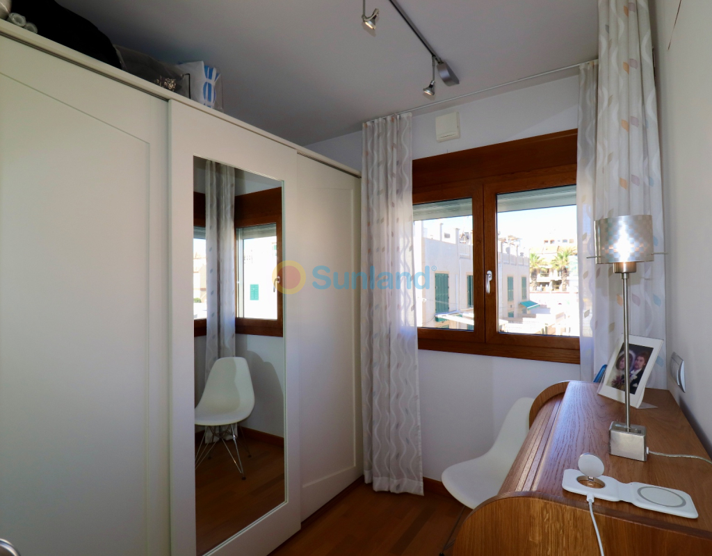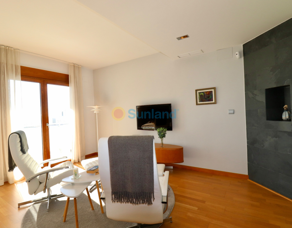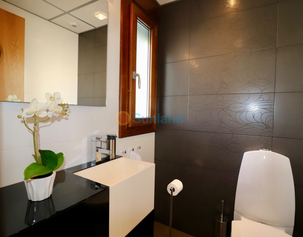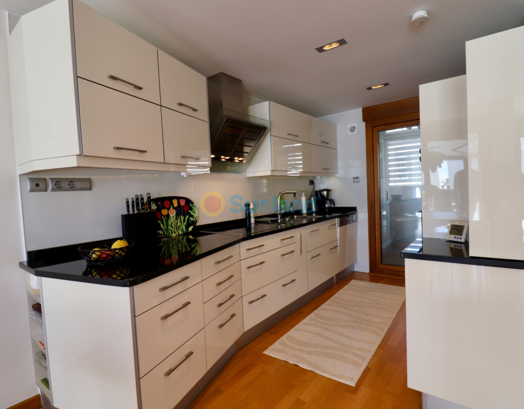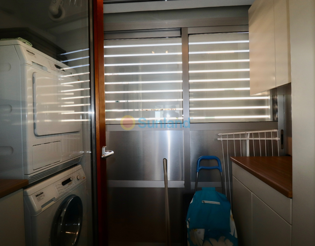 Découvrez cette maison de ville exclusive et unique sur deux niveaux, parfaitement positionnée à proximité des belles plages de Guardamar del Segura. Érigée par un constructeur renommé à la réputation de qualité irréprochable, cette luxueuse villa s'étend sur trois niveaux et offre une gamme de prestations haut de gamme. Entrez dans la propriété et soyez accueilli par un salon spacieux et une cuisine avec un plan d'étage ouvert et contemporain. La cuisine, équipée d'appareils Miele & Liebherr de première classe, allie élégance et fonctionnalité pour une expérience culinaire inégalée. Au premier étage, il y a une chambre aux dimensions généreuses, dotée d'une salle de bain privée et d'un dressing, ainsi qu'un balcon confortable avec une vue pittoresque. Un escalier moderne mène au toit-terrasse luxuriant, où vous pourrez profiter d'une vue imprenable sur la mer, idéale pour bronzer, barbecues et moments de détente. Descendez au niveau intermédiaire et découvrez deux autres chambres et une salle de bain, avec accès direct au jardin. Le sous-sol abrite un garage spacieux et un débarras pour un stockage supplémentaire. La maison est équipée d'une large gamme d'équipements, dont une buanderie séparée avec lave-linge/sèche-linge, des volets électriques, un système d'alarme avancé et un chauffage au sol à eau dans toute la maison. Profitez également du confort des parquets en chêne, des fenêtres économes en énergie, des stores électriques et des doubles filtres de purification d'eau. De plus, la piscine commune à côté de la maison vous invite à vous détendre et à passer du temps libre. Essentiellement, cette maison de ville ultramoderne avec une touche de sophistication offre la combinaison parfaite de style, de confort et de fonctionnalité. Entièrement meublée, cette maison attend un nouveau propriétaire qui souhaite faire passer son style de vie au niveau supérieur. Bienvenue à la maison.