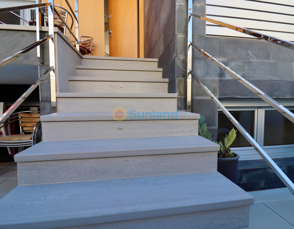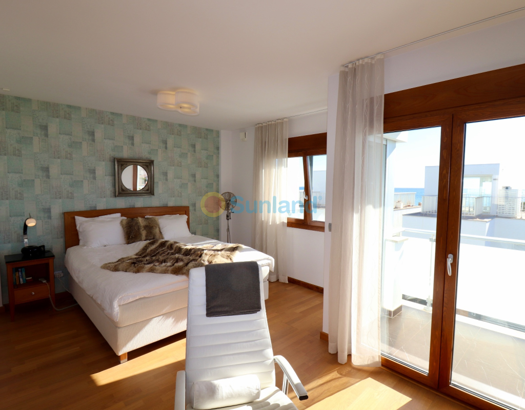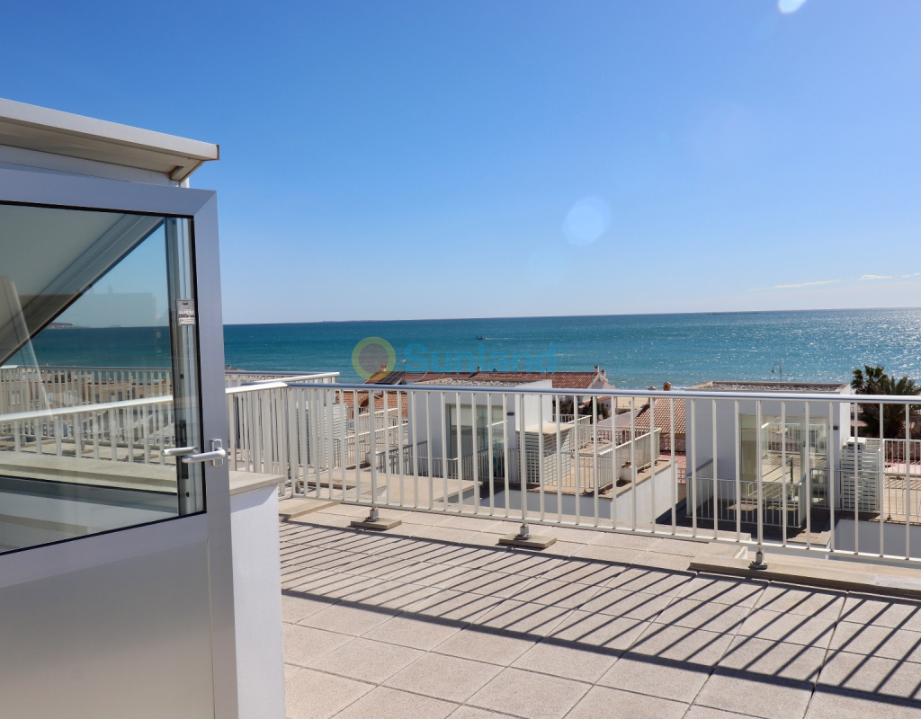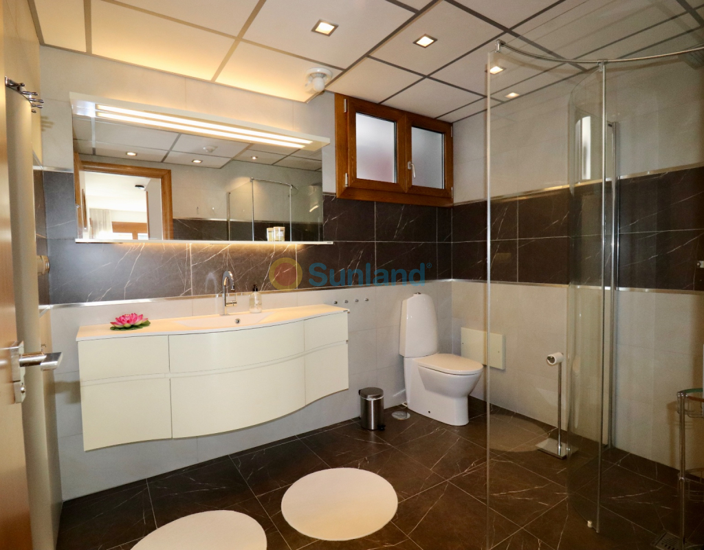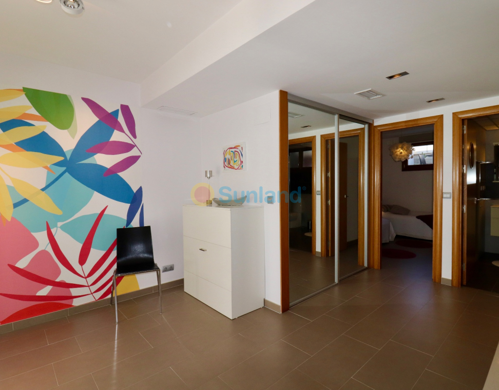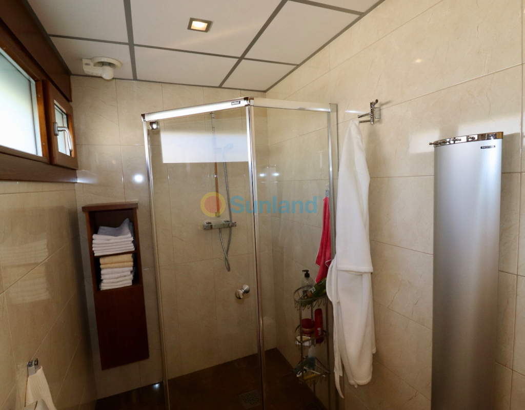 Découvrez cette maison de ville exclusive et unique sur deux niveaux, parfaitement positionnée à proximité des belles plages de Guardamar del Segura. Érigée par un constructeur renommé à la réputation de qualité irréprochable, cette luxueuse villa s'étend sur trois niveaux et offre une gamme de prestations haut de gamme. Entrez dans la propriété et soyez accueilli par un salon spacieux et une cuisine avec un plan d'étage ouvert et contemporain. La cuisine, équipée d'appareils Miele & Liebherr de première classe, allie élégance et fonctionnalité pour une expérience culinaire inégalée. Au premier étage, il y a une chambre aux dimensions généreuses, dotée d'une salle de bain privée et d'un dressing, ainsi qu'un balcon confortable avec une vue pittoresque. Un escalier moderne mène au toit-terrasse luxuriant, où vous pourrez profiter d'une vue imprenable sur la mer, idéale pour bronzer, barbecues et moments de détente. Descendez au niveau intermédiaire et découvrez deux autres chambres et une salle de bain, avec accès direct au jardin. Le sous-sol abrite un garage spacieux et un débarras pour un stockage supplémentaire. La maison est équipée d'une large gamme d'équipements, dont une buanderie séparée avec lave-linge/sèche-linge, des volets électriques, un système d'alarme avancé et un chauffage au sol à eau dans toute la maison. Profitez également du confort des parquets en chêne, des fenêtres économes en énergie, des stores électriques et des doubles filtres de purification d'eau. De plus, la piscine commune à côté de la maison vous invite à vous détendre et à passer du temps libre. Essentiellement, cette maison de ville ultramoderne avec une touche de sophistication offre la combinaison parfaite de style, de confort et de fonctionnalité. Entièrement meublée, cette maison attend un nouveau propriétaire qui souhaite faire passer son style de vie au niveau supérieur. Bienvenue à la maison.
