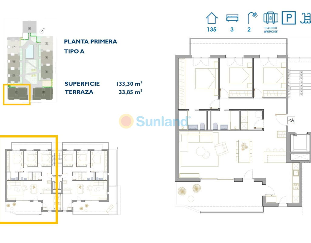 NOUVELLE CONSTRUCTION RÉSIDENTIELLE À SAN PEDRO DEL PINATAR Nouveau complexe résidentiel d'appartements et de penthouses modernes à San Pedro Del Pinatar. Appartements et penthouses avec 2 et 3 chambres à coucher, 2 salles de bains, avec cuisine ouverte avec coin salon, grandes terrasses, armoires encastrées, salles de bains entièrement équipées, terrasses. Les appartements du rez-de-chaussée ont un jardin privé et les penthouses du dernier étage ont un solarium privé. Chaque propriété dispose d'un parking souterrain avec des salles de stockage. Aménagement paysager et jardinage dans les parties communes avec une sélection minutieuse des espèces appropriées à la région. Installation complète de la piscine avec finition en gresite, avec éclairage intégré, système d'épuration et équipement dans une cabine encastrée dans le sol. La situation privilégiée de San Pedro del Pinatar sur la Mar Menor et le littoral méditerranéen attire les amateurs de voile et de sports nautiques, avec des ports de plaisance et des clubs de voile, tandis que les plages et les bains de boue naturels attirent ceux qui recherchent le soleil, la mer et le sable en toute sécurité. San Pedro del Pinatar dispose d'une communauté bien établie et offre une excellente gamme d'activités, notamment une piscine couverte et des installations sportives, ainsi qu'un programme d'activités sociales tout au long de l'année grâce à un climat hivernal agréable. Les bienfaits des bains de boue, typiques de la région, ou les eaux calmes de la Mar Menor, ont favorisé la croissance de Lo Pagán, qui dispose actuellement de toutes sortes de commodités. De plus, il bénéficie d'un excellent emplacement, à seulement 5 minutes du centre commercial Dos Mares. L'aéroport de Murcia/Corvera se trouve à 30 minutes et celui d'Alicante à une heure de route.