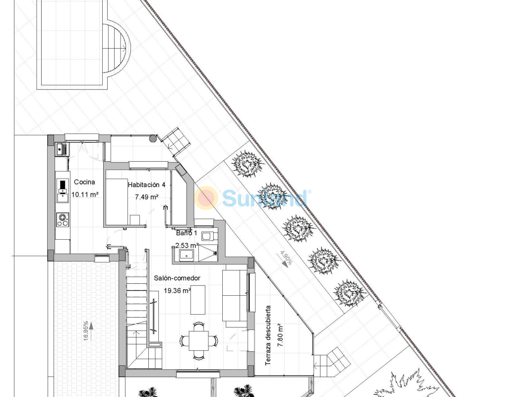 VILLA NEUVE À LOS ALCAZARES Villa neuve à Los Alcazares. Belle villa avec 4 chambres et 3 salles de bains, cuisine ouverte sur le salon, armoires encastrées, jardin privé avec piscine, sous-sol avec garage. Cuisine équipée avec évier en acier inoxydable, réfrigérateur, lave-vaisselle, plaque de cuisson, four et hotte. Résidence de villas située à 1,5 km de la plage et de la ville de Los Alcázares, où l'on peut pratiquer divers sports nautiques, entourée de plusieurs terrains de golf. La zone est reliée par l'autoroute aux villes de Cartagena, Murcia et Alicante et au reste des plages de la Costa Cálida et de la Costa Blanca. L'aéroport de Murcia Corvera se trouve à 20 minutes en voiture.