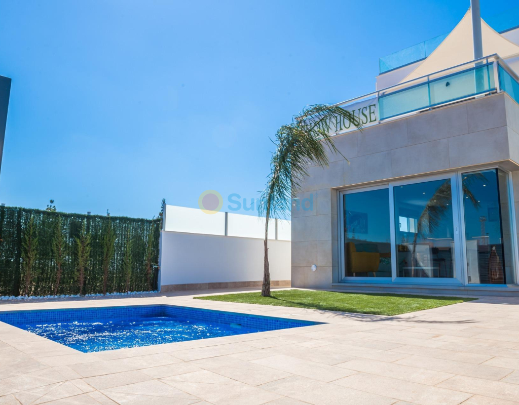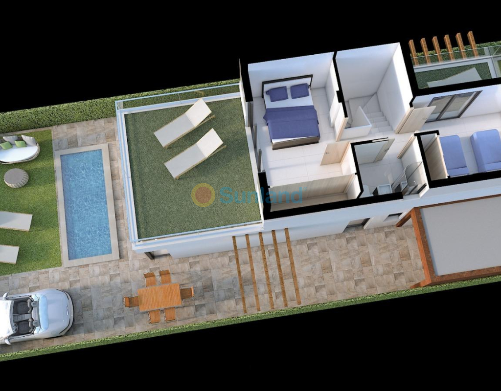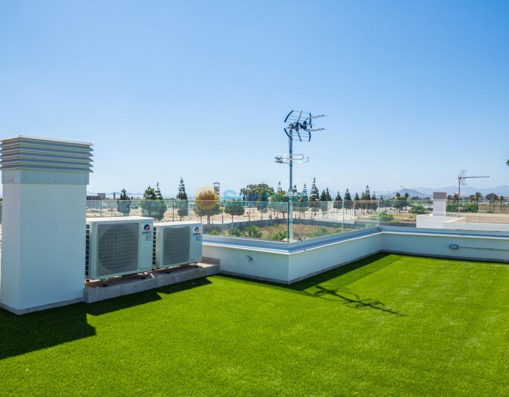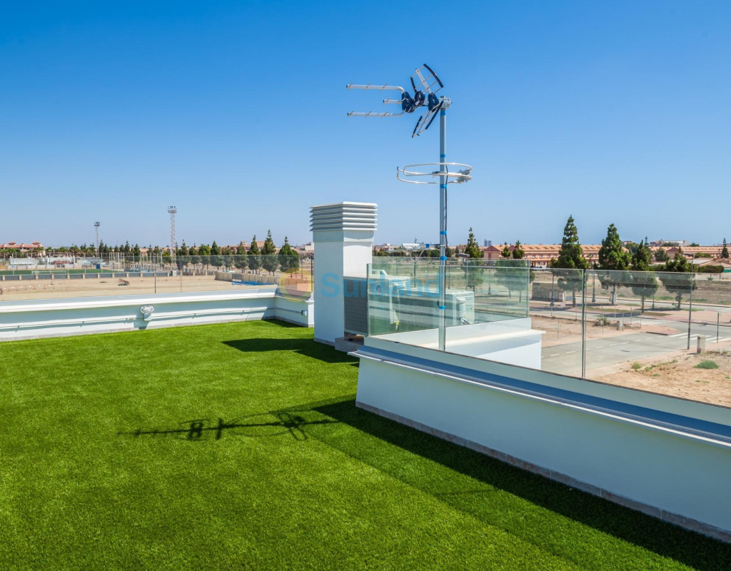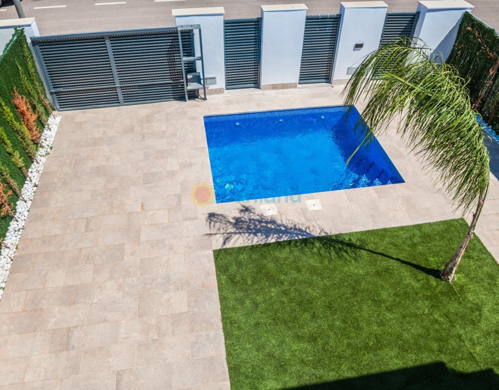 VILLAS NEUVES À LOS ALCAZARES Villas neuves à Los Alcazares. Magnifiques villas avec 3 chambres et 2 salles de bains, cuisine ouverte sur le salon, armoires encastrées, jardin privé avec piscine, garage. Cuisine équipée d'un évier en acier inoxydable, d'un réfrigérateur, d'un lave-vaisselle, d'une plaque vitrocéramique (3 zones de cuisson), d'un four et d'une hotte aspirante. Appareils de cuisine Siemens. Installation complète de l'air conditionné dans toutes les pièces. Possibilité d'un solarium sur le toit moyennant un supplément. Résidence de villas située à 1 km de la plage et de la ville de Los Alcázares, où l'on peut pratiquer divers sports nautiques, entourée de plusieurs terrains de golf. La zone est reliée par l'autoroute aux villes de Cartagena, Murcia et Alicante et au reste des plages de la Costa Cálida et de la Costa Blanca. L'aéroport de Murcia Corvera se trouve à 20 minutes en voiture.