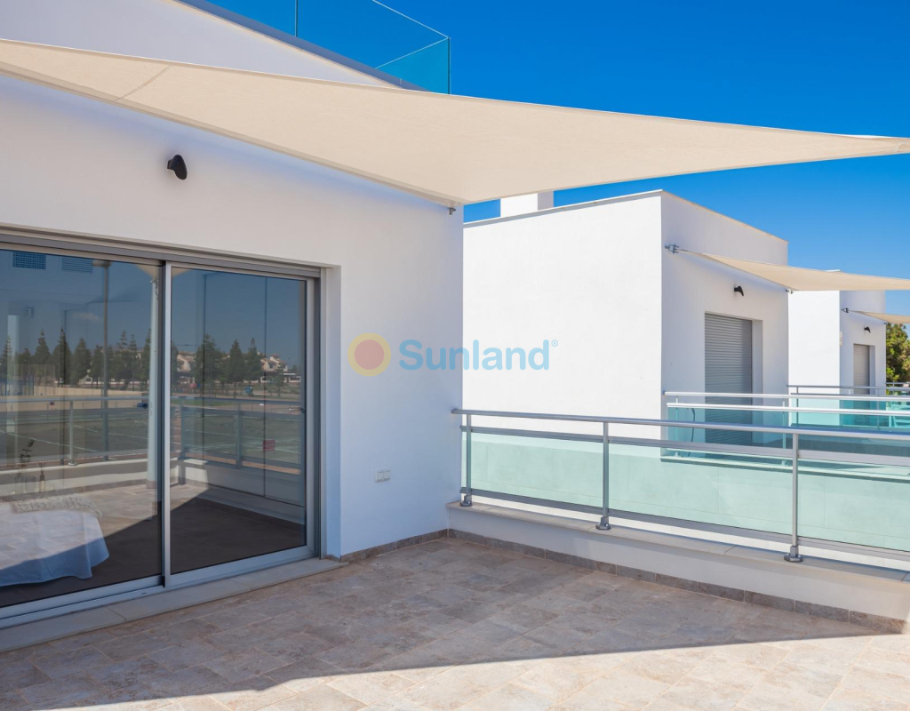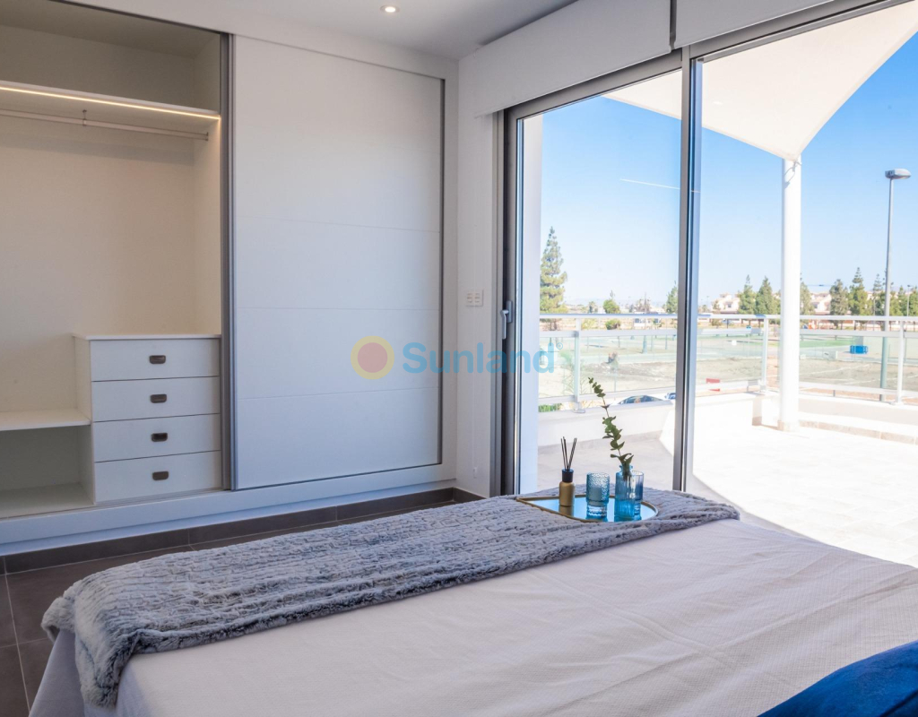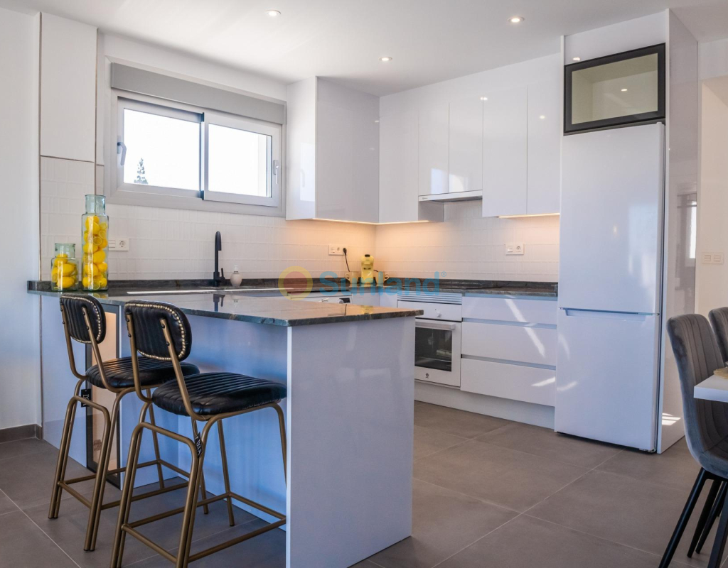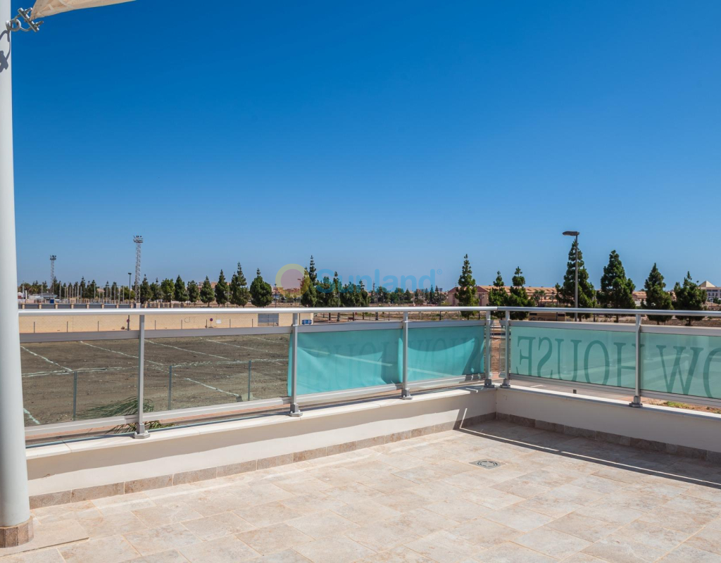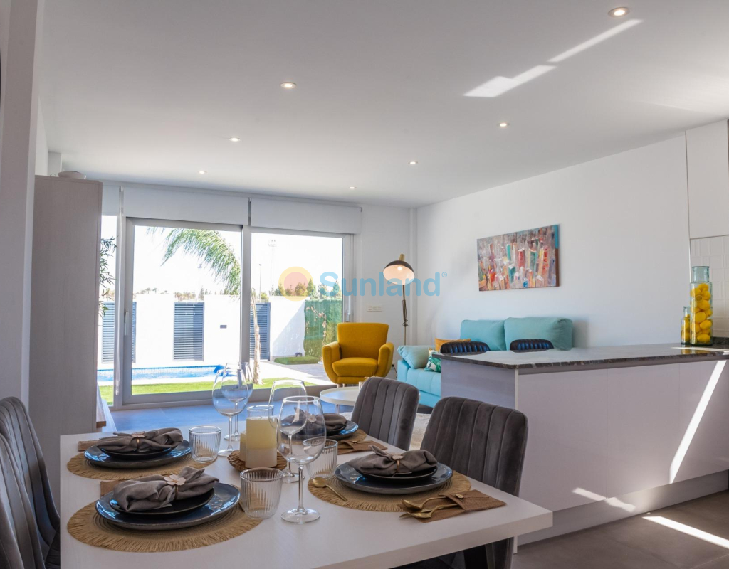 VILLAS NEUVES À LOS ALCAZARES Villas neuves à Los Alcazares. Magnifiques villas avec 3 chambres et 2 salles de bains, cuisine ouverte sur le salon, armoires encastrées, jardin privé avec piscine, garage. Cuisine équipée d'un évier en acier inoxydable, d'un réfrigérateur, d'un lave-vaisselle, d'une plaque vitrocéramique (3 zones de cuisson), d'un four et d'une hotte aspirante. Appareils de cuisine Siemens. Installation complète de l'air conditionné dans toutes les pièces. Possibilité d'un solarium sur le toit moyennant un supplément. Résidence de villas située à 1 km de la plage et de la ville de Los Alcázares, où l'on peut pratiquer divers sports nautiques, entourée de plusieurs terrains de golf. La zone est reliée par l'autoroute aux villes de Cartagena, Murcia et Alicante et au reste des plages de la Costa Cálida et de la Costa Blanca. L'aéroport de Murcia Corvera se trouve à 20 minutes en voiture.