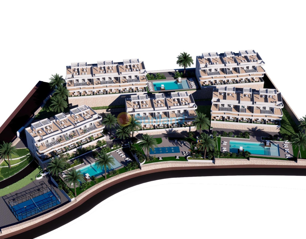 COMPLEXE RÉSIDENTIEL DE NOUVELLE CONSTRUCTION À FINESTRAT Nouveau complexe résidentiel à Balcon de Finestrat. Ce complexe d'appartements modernes avec 2 chambres, 2 salles de bains, cuisine ouverte sur le salon. Certains appartements auront une vue sur la mer. Les appartements du rez-de-chaussée disposent d'un jardin privé, ceux de l'étage intermédiaire d'une terrasse et ceux du dernier étage d'une terrasse et d'un solarium privé. Chaque propriété dispose d'un parking souterrain privé. Les propriétés ont accès à la zone commune avec 3 piscines, parking, paddle, aire de jeux, gymnastique suédoise. C'est une grande opportunité et un privilège de pouvoir vivre dans cet environnement de golf et de plage, proche de toutes les commodités de tous les services considérés comme l'un des meilleurs endroits pour investir. Finestrat est situé dans la région Marina Baixa de la Costa Blanca. Benidorm est à seulement cinq minutes en voiture des propriétés et offre tous les services dont vous avez besoin, y compris des magasins, des bars, des restaurants, des supermarchés, des banques, des pharmacies et plusieurs écoles privées internationales. Les plages de Levante, Poniente et Cala de Finestrat, qui s'étendent sur plus de 6 km, sont parmi les meilleures d'Europe et ont été récompensées par le drapeau bleu de l'Union européenne. Tous les services de loisirs tels que les parcs à thème Aqua Natura, Terra Mítica, Terra Natura, Aqualandia et Mundomar, les terrains de golf Sierra Cortina et Villaitana, la randonnée et l'escalade à Puig Campana, un cadre naturel incomparable, ou encore les sports nautiques. Distance de la mer 4 km, de l'aéroport 26 km et du golf 1km.
