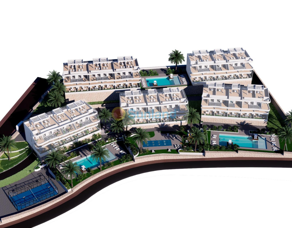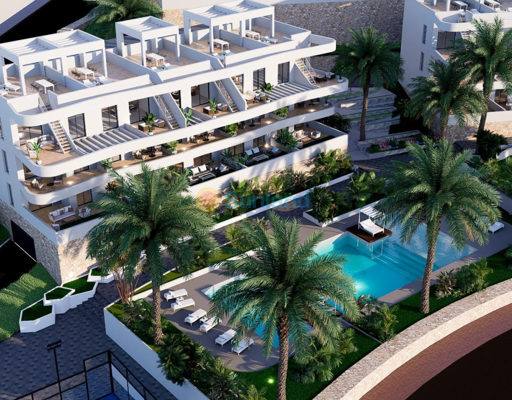 COMPLEXE RÉSIDENTIEL DE NOUVELLE CONSTRUCTION À FINESTRAT Nouveau complexe résidentiel à Balcon de Finestrat. Ce complexe d'appartements modernes avec 2 chambres, 2 salles de bains, cuisine ouverte sur le salon. Certains appartements auront une vue sur la mer. Les appartements du rez-de-chaussée disposent d'un jardin privé, ceux de l'étage intermédiaire d'une terrasse et ceux du dernier étage d'une terrasse et d'un solarium privé. Chaque propriété dispose d'un parking souterrain privé. Les propriétés ont accès à la zone commune avec 3 piscines, parking, paddle, aire de jeux, gymnastique suédoise. C'est une grande opportunité et un privilège de pouvoir vivre dans cet environnement de golf et de plage, proche de toutes les commodités de tous les services considérés comme l'un des meilleurs endroits pour investir. Finestrat est situé dans la région Marina Baixa de la Costa Blanca. Benidorm est à seulement cinq minutes en voiture des propriétés et offre tous les services dont vous avez besoin, y compris des magasins, des bars, des restaurants, des supermarchés, des banques, des pharmacies et plusieurs écoles privées internationales. Les plages de Levante, Poniente et Cala de Finestrat, qui s'étendent sur plus de 6 km, sont parmi les meilleures d'Europe et ont été récompensées par le drapeau bleu de l'Union européenne. Tous les services de loisirs tels que les parcs à thème Aqua Natura, Terra Mítica, Terra Natura, Aqualandia et Mundomar, les terrains de golf Sierra Cortina et Villaitana, la randonnée et l'escalade à Puig Campana, un cadre naturel incomparable, ou encore les sports nautiques. Distance de la mer 4 km, de l'aéroport 26 km et du golf 1km.