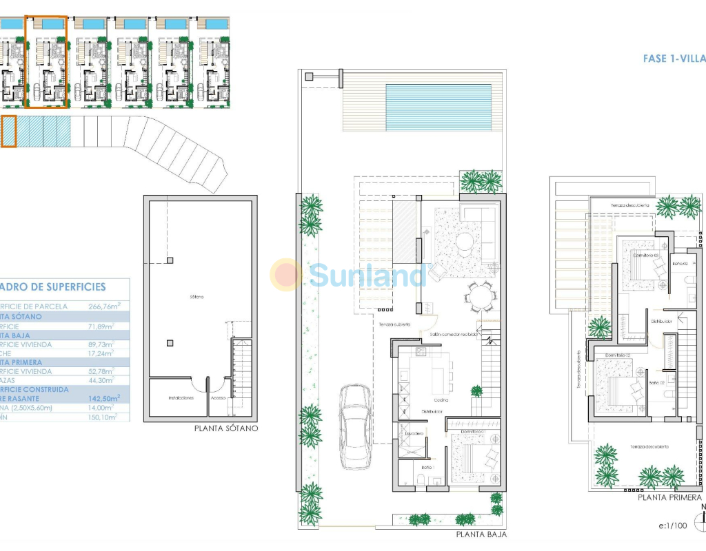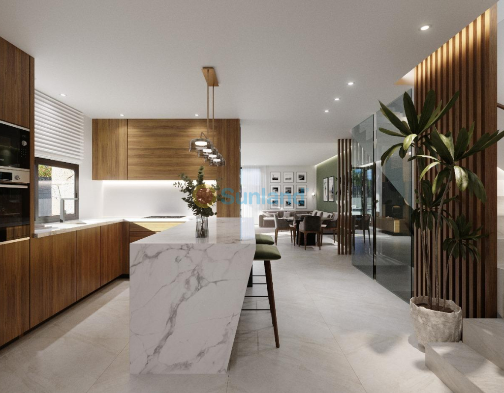 VILLAS NEUVES DANS UN COMPLEXE PRIVÉ DANS LA PROVINCE DE MURCIE Villas neuves dans un complexe privé dans la région de Murcie, entourées d'excellents terrains de golf et à seulement 10 minutes des plages de sable de la mer de Mar Menor. Les villas sont construites sur 3 étages et disposent de 3 chambres à coucher, 3 salles de bains, cuisine ouverte et salon-salle à manger, placards équipés, sous-sol, jardin privé avec la piscine et place de parking. Elles sont situées dans un complexe privé, avec une entrée principale et une sécurité 24h/24h. Le complexe est conçu autour d'un impressionnant espace vert de 126 000 m2. Il comprend des sentiers de promenade et des pistes cyclables, des installations sportives, des courts de paddle et de tennis, un parcours de mini-golf, des jardins, des parcs pour chiens, des aires de loisirs, un clubhouse.... C'est également dans cette zone centrale que se trouve le joyau de la station, un lac artificiel cristallin de près de 17 000 m2 de surface d'eau, entouré de plages de sable blanc et de palmiers, apportant un morceau des Caraïbes à la région de Murcie. Il y a deux îles sur le lac, dont l'une possède son propre bar, ainsi que des "chiringuitos de plage" répartis autour du lac. Le complexe est stratégiquement situé à moins de 4 km de la plage et de la ville de Los Alcázares, où l'on peut pratiquer divers sports nautiques, entouré de plusieurs terrains de golf et de la ville de Cartagena, à moins de 15 minutes en voiture et à 22 km de l'aéroport de Murcie, ce qui permet de disposer d'une vaste offre culturelle, gastronomique et sportive à portée de main.