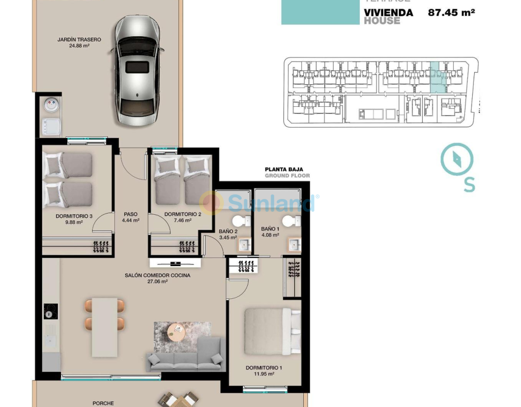NOUVEAU COMPLEXE RÉSIDENTIEL A TORRE DE LA HORADADA Nouveau complexe résidentiel d'appartements de plain-pied avec piscine commune à Torre de la Horadada situé à 800m de la plage. Toutes les propriétés ont 3 chambres à coucher, 2 salles de bains, une cuisine ouverte sur le salon, des placards et une terrasse. Toutes les propriétés disposent d'un jardin privé et d'une place de parking. Les bungalows situés au dernier étage disposent d'un solarium privé. Torre de la Horadada est situé au sud d'Alicante, dans un endroit magnifique sur la côte. Les belles plages de Torre de la Horadada et Mil Palmeras ont du sable fin et une belle promenade. On y trouve de nombreux restaurants, bars et boutiques, ainsi que des sports nautiques, de la plongée et du snorkeling. La ville est bien desservie, à seulement 40 minutes des aéroports d'Alicante et de Murcias Corvera, avec de grands centres commerciaux et de nombreux terrains de golf, tous faciles d'accès.