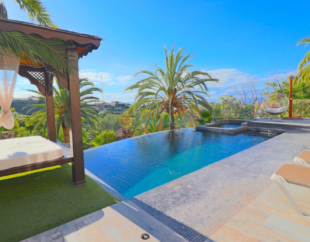 La propriété a plus de 350 m² de superficie construite et 1400 m² de terrain clôturé. La maison est de style moderne et a été entièrement rénovée récemment. Il est vendu avec tous les meubles de haute qualité incorporés.~~Il a 2 étages et est distribué comme suit :~ - Au rez-de-chaussée se trouve le salon, la salle à manger, la cuisine à aire ouverte avec îlot, équipée d'électroménagers. Une chambre double avec placards intégrés et deux salles de bain complètes. Elle dispose également de 2 appartements indépendants du reste de la propriété.~ -A l'étage supérieur se trouvent deux grandes chambres avec salles de bains en suite, un dressing-penderie pouvant être transformé en une troisième chambre et une grande terrasse. Le tout avec vue sur la mer.~ Il dispose également de 2 appartements indépendants, de style moderne, pouvant accueillir chacun 4 personnes.~~~ Elle dispose d'un jardin privé sur différents niveaux, d'une salle à manger extérieure, de terrasses et d'une piscine privée à débordement. Ce chalet, situé sur une route facilement accessible, dispose de quatre places de stationnement afin que vous puissiez vous garer plus confortablement. De plus, grâce à son orientation sud-est, c'est une maison très ensoleillée à toute heure de la journée.~~ La villa dispose de panneaux solaires et est équipée de la climatisation centrale chaud/froid, d'unités divisées dans plusieurs chambres, de ventilateurs de plafond, d'un système d'eau chaude centralisé, de panneaux solaires pour la production d'eau chaude et d'électricité, d'un système d'alarme et de cheminées. Il offre également un parking pour 4 voitures.~~ La propriété dispose d'un numéro de licence touristique VT-470507-A, de catégorie supérieure, avec de nombreuses possibilités commerciales et de grandes performances économiques. Chaque appartement est loué 200 €/jour pendant les mois d'été.~~ Une belle opportunité commerciale.~~Contactez Hector pour plus d'informations......679 527 572~