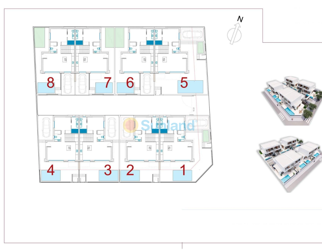 Villas jumelées nouvellement construites à Dolores Ce développement résidentiel moderne à Dolores propose des villas jumelées nouvellement construites. Conçues dans un esprit de style contemporain et de confort, les maisons sont réparties sur deux étages et offrent 3 chambres et 3 salles de bains. La cuisine ouverte est parfaitement reliée au salon, qui donne directement sur une terrasse et un jardin privés. Chaque maison dispose également d'une piscine privée et d'une place de parking. Finitions de haute qualité et équipements modernes Ces maisons sont construites avec des matériaux et des finitions de haute qualité. Les menuiseries extérieures sont en aluminium à rupture de pont thermique et les salles de bains sont équipées de cabines de douche en verre. L'éclairage LED est installé dans toute la propriété, ce qui garantit l'efficacité énergétique et une ambiance moderne. Ces caractéristiques se combinent pour créer un environnement de vie confortable et élégant pour vous et votre famille. Un emplacement de choix à proximité des services quotidiens Situées à la périphérie de la charmante ville de Dolores, ces maisons ne sont qu'à quelques pas des services quotidiens essentiels, notamment des magasins, des restaurants et des commodités locales. Dolores fait partie de la région de Vega Baja del Segura, dans le sud de la province d'Alicante, connue pour ses paysages agricoles et son rythme de vie détendu. A proximité des principaux points d'intérêt Plage de La Marina : 10 km Plage de Guardamar : 10 km Aéroport d'Alicante : 30 km Aéroport de Murcia-Corvera : 60 km Terrains de golf : 15 km Centres commerciaux : 12 km Parfait pour profiter du style de vie de la Costa Blanca Avec un climat méditerranéen, de belles plages à quelques minutes en voiture et plusieurs terrains de golf à proximité, ce lotissement offre l'équilibre idéal entre détente et loisirs. Que vous recherchiez une maison de vacances ou une résidence permanente, ces nouvelles constructions à Dolores offrent un cadre de vie moderne dans un endroit serein et bien desservi.