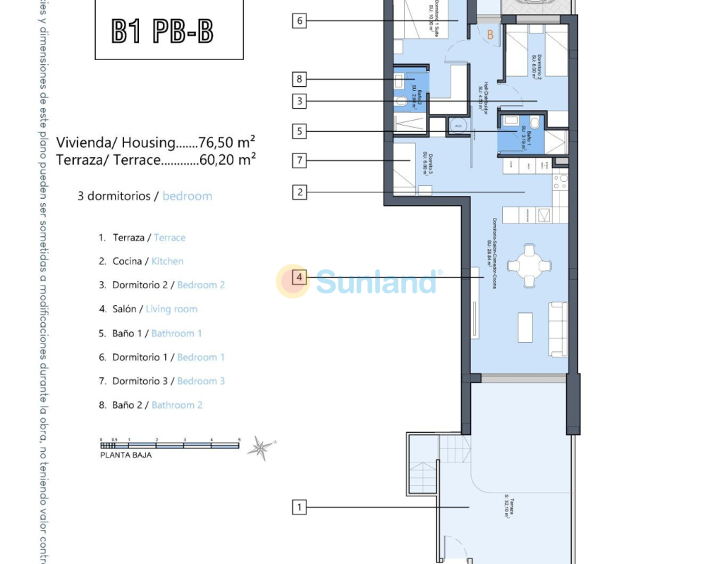 Nouvelle construction de bungalows à Dolores Résidentiel avec des propriétés au rez-de-chaussée avec jardin ou au dernier étage avec solarium privé, avec 3 chambres et 2 salles de bains, sont situés à Dolores (Alicante), une zone privilégiée de la Costa Blanca, situé à côté du parc naturel El Hondo, entouré par la nature et équipé de tous les services. Elle se trouve à 25 minutes de l'aéroport d'Alicante, à proximité des belles plages de Guardamar del Segura et à quelques minutes des principaux terrains de golf de la région. Son excellent emplacement fait de ce projet une option parfaite pour ceux qui recherchent la paix et la tranquillité. Chaque propriété dispose de sa propre place de parking et d'une salle de stockage dans la plupart des unités. Une belle piscine commune avec toilettes permet de se détendre après une journée de travail ou de visites. Finitions de haute qualité et équipements modernes Ces logements sont construits avec des matériaux et des finitions de haute qualité. Les menuiseries extérieures sont en aluminium avec rupture de pont thermique, les salles de bains sont équipées de meubles de salle de bains avec miroir. L'éclairage installé dans l'ensemble de la propriété garantit l'efficacité énergétique et une atmosphère moderne. Les armoires encastrées sont doublées à l'intérieur. Ces caractéristiques se combinent pour créer un environnement de vie confortable et élégant pour vous et votre famille. Un emplacement de choix à proximité des commodités quotidiennes Situées à la périphérie de la charmante ville de Dolores, ces maisons ne sont qu'à une courte distance de marche des commodités quotidiennes essentielles, notamment des magasins, des restaurants et des services locaux. Dolores fait partie de la région de Vega Baja del Segura, au sud de la province d'Alicante, connue pour ses paysages agricoles et son rythme de vie détendu. Points d'intérêt à proximité Plage de La Marina : 10 km Plage de Guardamar : 10 km Aéroport d'Alicante : 30 km Aéroport de Murcia-Corvera : 60 km Terrains de golf : 10 km Centres commerciaux : 12 km Parfait pour profiter du style de vie de la Costa Blanca Avec un climat méditerranéen, de belles plages à une courte distance en voiture et plusieurs terrains de golf à proximité, cette urbanisation offre l'équilibre idéal entre détente et loisirs. Que vous recherchiez une maison de vacances ou une résidence permanente, ces maisons récemment construites à Dolores offrent une vie moderne dans un endroit serein et bien desservi.