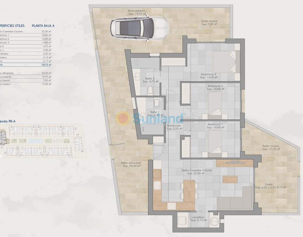 Maisons neuves à Torre-Pacheco, Costa Cálida Bungalows modernes aux caractéristiques exceptionnelles Découvrez un nouveau complexe résidentiel à Torre-Pacheco, proposant 24 bungalows élégants avec 2 ou 3 chambres. Vous avez le choix entre des maisons au rez-de-chaussée avec des terrasses spacieuses ou des unités au premier étage dotées de terrasses et de solariums privés. Chaque solarium comprend une pergola, un espace barbecue et une toiture renforcée, idéale pour installer un jacuzzi. Tous les logements sont dotés d'une place de parking et d'un système de climatisation complet, garantissant un confort tout au long de l'année. Situation privilégiée à Torre-Pacheco Niché au cœur de Torre-Pacheco, ce lotissement se trouve à proximité des commodités essentielles, notamment des supermarchés, des boutiques, des bars et des restaurants. Le centre-ville animé, avec sa charmante ambiance espagnole, est accessible à pied. Pour les amateurs de plage, la superbe Mar Menor se trouve à 10 minutes en voiture, offrant des sables dorés et des eaux cristallines. Des équipements communautaires exceptionnels Le complexe comprend une zone communautaire magnifiquement aménagée avec des jardins luxuriants et une piscine étincelante, offrant une retraite sereine pour se détendre et se relaxer. Le climat ensoleillé de la région, avec une moyenne de 320 jours de soleil par an, complète parfaitement ces espaces extérieurs. Entouré de terrains de golf primés Torre-Pacheco est un paradis pour les golfeurs, entouré de quelques-uns des terrains de golf les plus réputés d'Espagne. Ces terrains ne sont qu'à une courte distance en voiture, ce qui en fait un lieu idéal pour les amateurs de golf. Connexions stratégiques avec les principales destinations Aéroport international de Murcie : 20 km (environ 20 minutes en voiture). Gare ferroviaire : À seulement 700 mètres, elle offre des options de voyage pratiques. Centres commerciaux : Plusieurs grands complexes commerciaux dans un rayon de 15 km. Plages : Les belles plages de la Costa Cálida sont à seulement 10 km. Ports et marinas : Le port de plaisance le plus proche se trouve à environ 12 km, idéal pour la navigation de plaisance et les sports nautiques. Un mode de vie plus sain vous attend La région de la Costa Cálida est réputée pour sa qualité de vie exceptionnelle. Avec un faible taux d'humidité, un air pur et un climat subtropical, cette région est l'une des plus saines d'Espagne. La combinaison parfaite de la beauté naturelle, des brises marines et de l'ensoleillement abondant fait de Torre-Pacheco une destination très recherchée. Agissez maintenant pour obtenir la maison de vos rêves Ne manquez pas cette opportunité de posséder une maison moderne dans un emplacement de choix. Contactez-nous dès aujourd'hui pour en savoir plus sur ce développement incroyable ou pour planifier une visite !