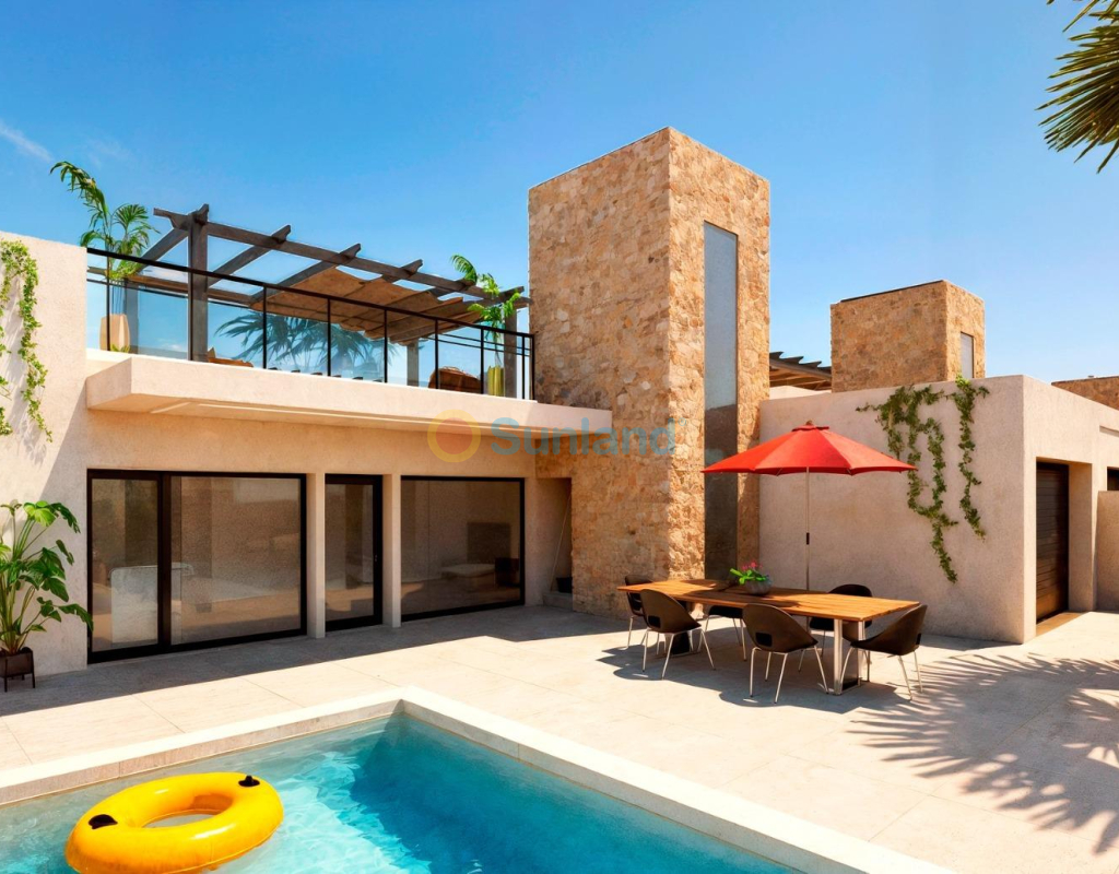 Résidence neuve composée de villas et de maisons mitoyennes à Fuente Álamo, Murcie. Cet emplacement offre un cadre naturel exceptionnel, loin de l'agitation des grandes villes et de la pression touristique de la côte. De plus, nous nous engageons à travailler dans une perspective de développement durable, en minimisant notre impact environnemental et en maximisant l'intégration avec la communauté locale. Ici, vos rêves d'un mode de vie paisible et durable deviennent réalité. Imaginez-vous vous réveiller chaque matin dans un cadre naturel impressionnant, entouré de paysages sereins et de la beauté unique de la campagne murcienne. Cette promotion privilégie l'efficacité énergétique, l'utilisation de matériaux respectueux de l'environnement et l'intégration harmonieuse dans le milieu rural. De la conception de la propriété à la planification du développement, nous réduisons notre empreinte carbone et encourageons des pratiques responsables dans toutes nos opérations. Installation complète de climatisation par conduits, froid/chaud. Système de vidéophone. Porte d'accès sécurisée laquée, avec serrure et ferrures anti-vandalisme. Armoires avec coffre, doublées à l'intérieur, laquées en blanc. Meubles de cuisine avec appareils électroménagers inclus. Eau chaude par aérothermie. Volets électriques. Pergolas dans les solariums. Piscine privée de 2,5 x 4,5 m avec éclairage nocturne immergé et purification par système de chloration saline. Pré-installation pour cuisine extérieure/jacuzzi dans le solarium. Fuente Álamo de Murcia est une localité et une commune de la région de Murcie, dans le sud de l'Espagne. Elle est située à 22 km au nord-ouest de Carthagène et à 35 km au sud-ouest de Murcie. La ville se trouve dans le bassin de la Mar Menor, entourée par les sierras d'Algarrobo, Los Gómez, Los Victorias et Carrascoy. L'eau de ces montagnes s'écoule vers la Rambla de Fuente Álamo, puis vers la Mar Menor. Fuente Álamo se trouve à 30 minutes de l'aéroport de Murcie - Corvera. Commerces les plus proches à 6 km.