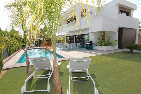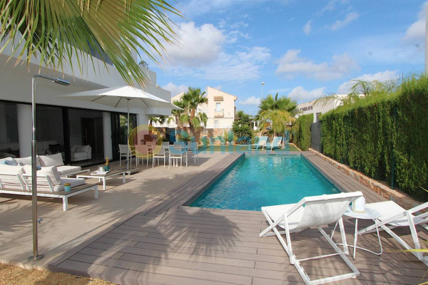 La vie de luxe sur la Costa Blanca : villa moderne avec 3 chambres à coucher, grande piscine et jardin tropical à vendre.